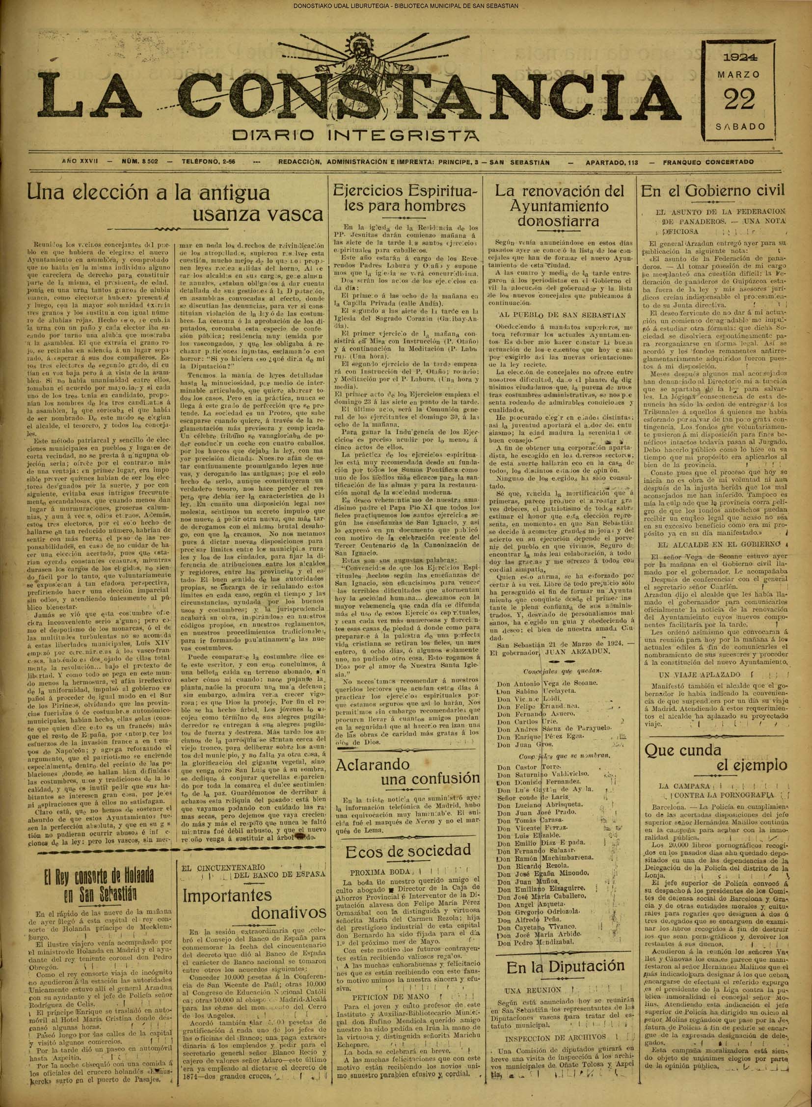 (La Voz de Guipúzcoa)(El Pueblo Vasco)(El Pais Vasco)(La Constancia)