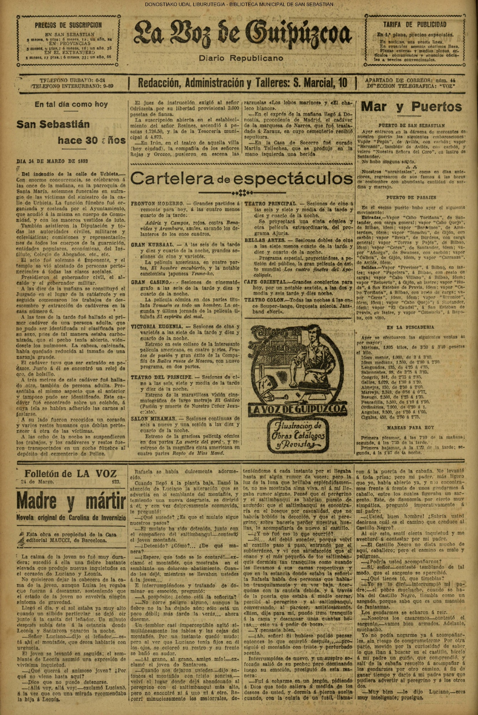 1893![]() #El Fuerista: periódico católico. Dios, Patria, Rey. # La Unión Vascongada. # La Voz de Guipúzcoa: diario republicano |