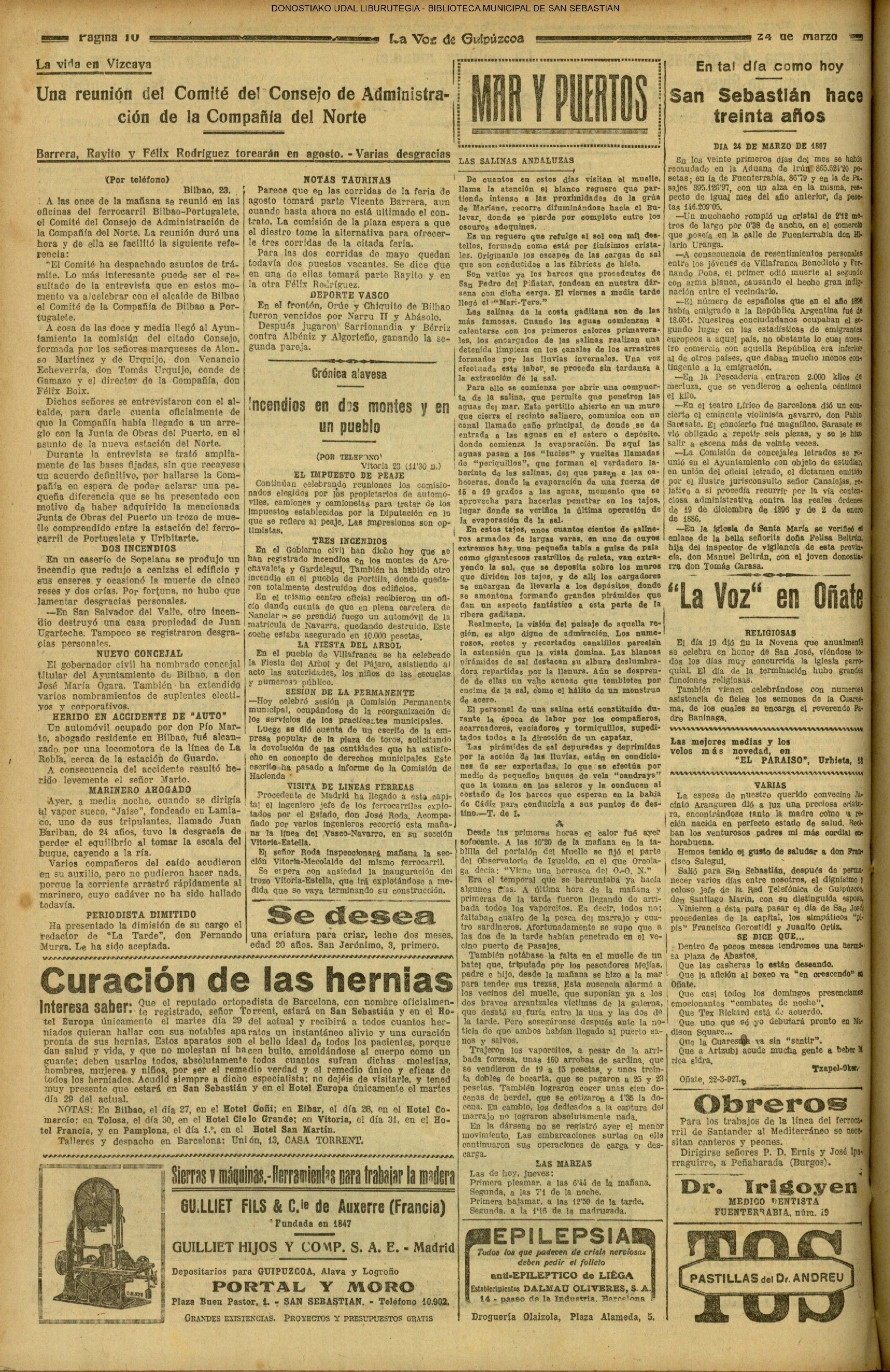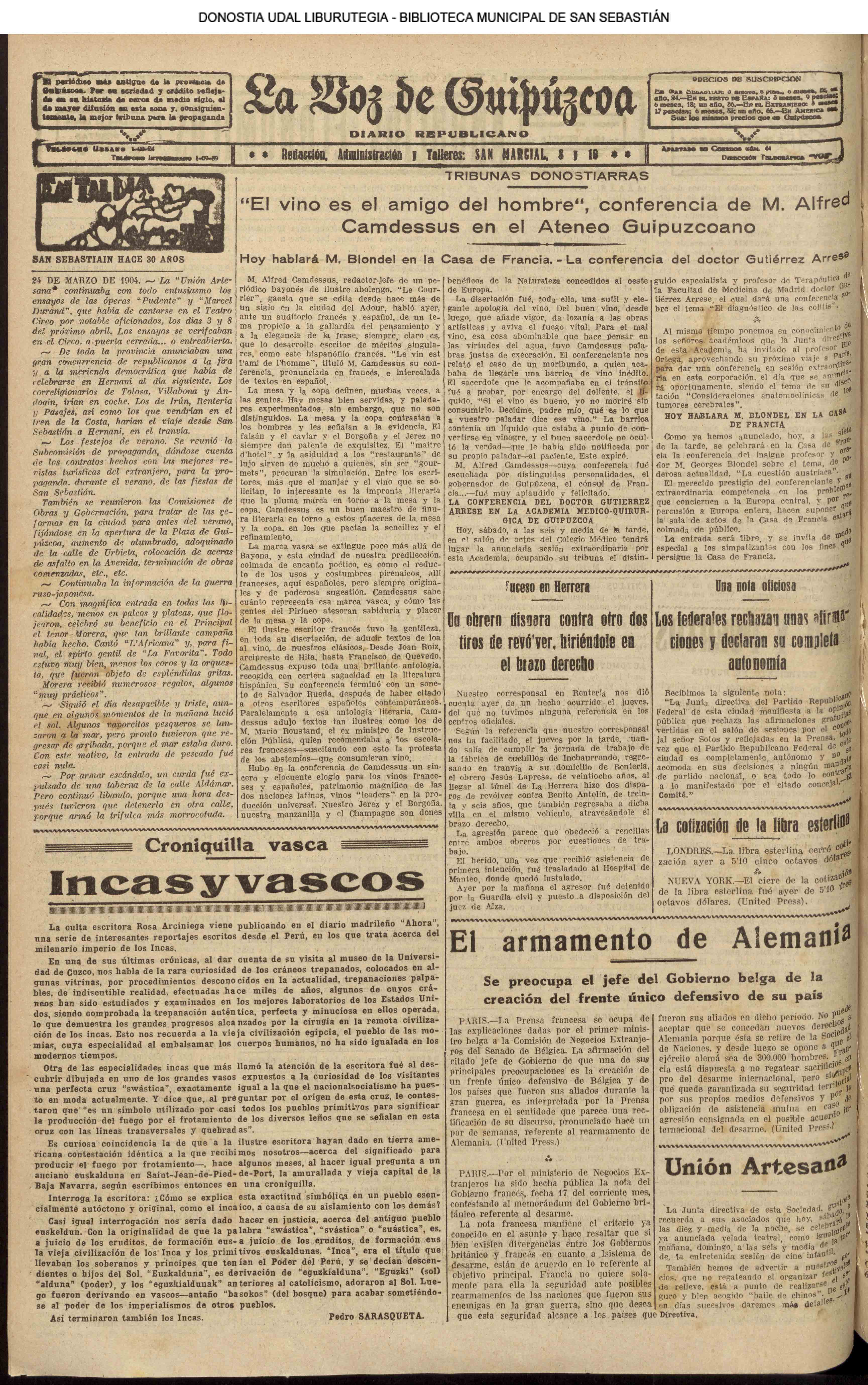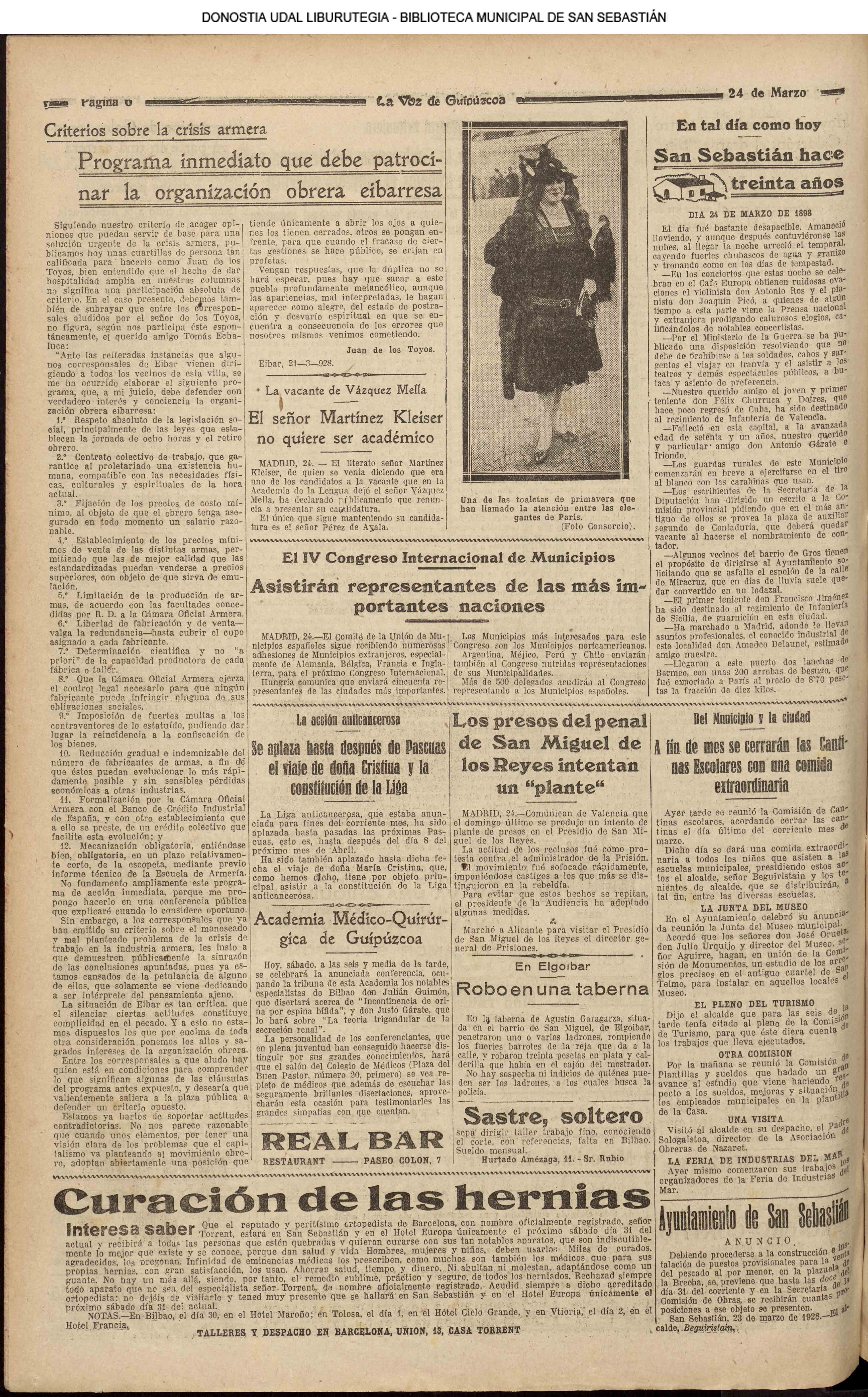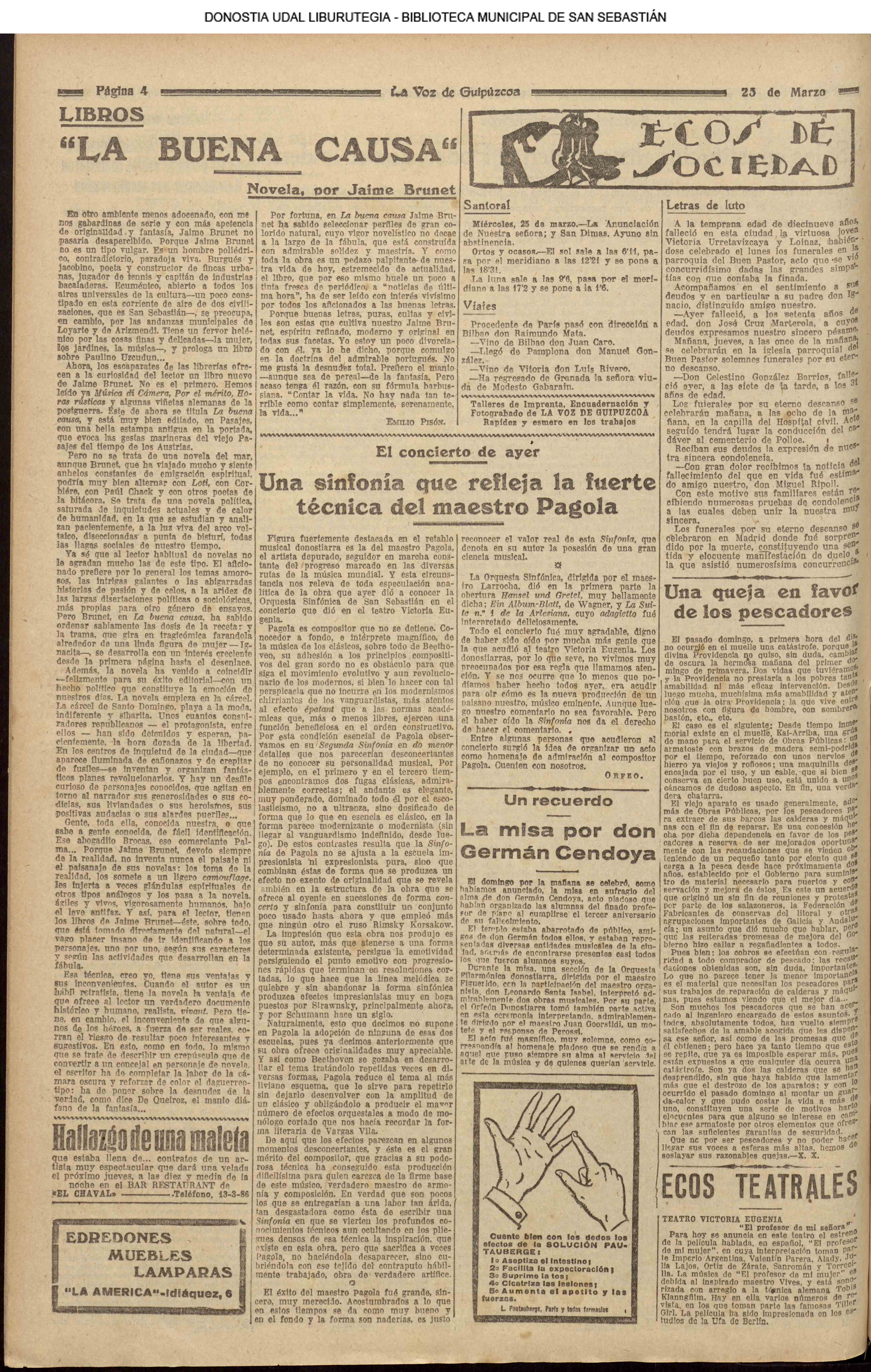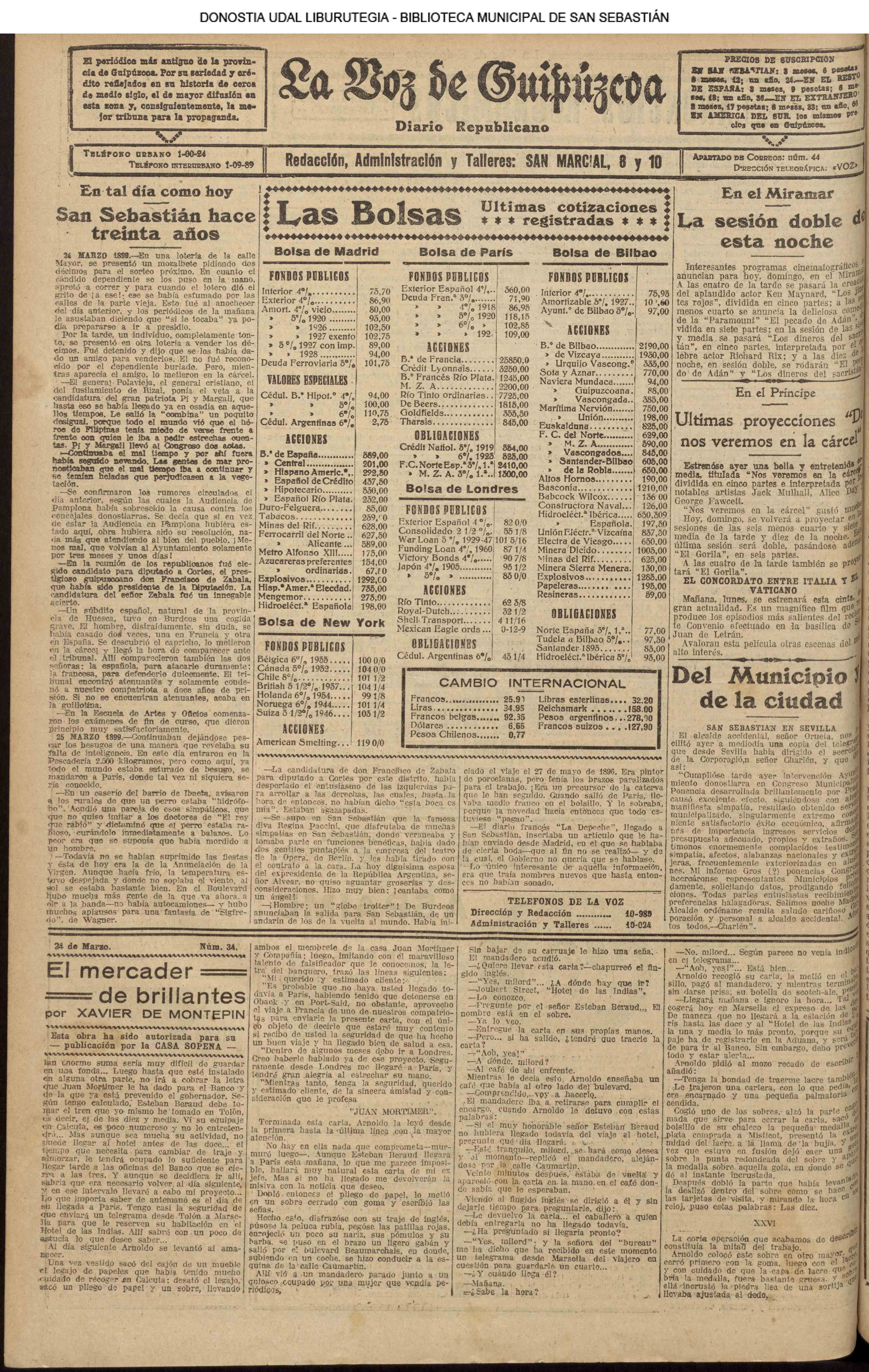 1920![]() Pedro Zaragueta, 1920-1922 #La Constancia: diario íntegro fuerista. #La Información: diario independiente. #El Pueblo Vasco. # La Voz de Guipúzcoa: diario republicano » Miércoles 24 de Marzo de 1920 |