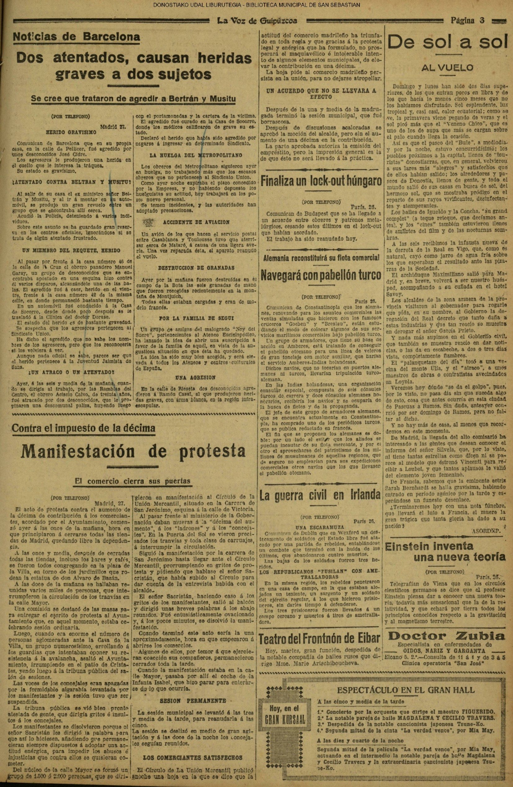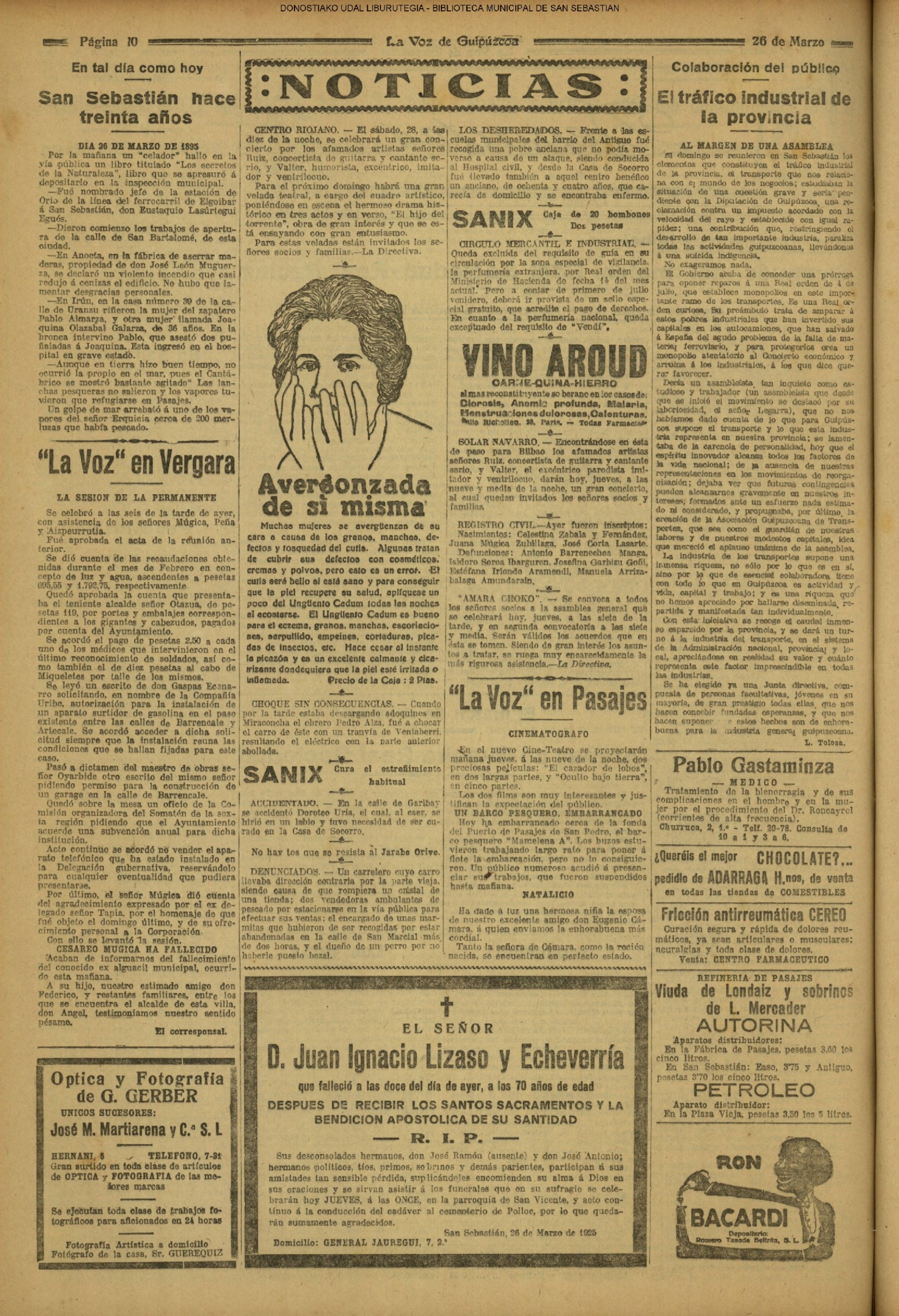 1920![]() Pedro Zaragueta, 1920-1922 PRENSA #La Constancia: diario íntegro fuerista. #La Información: diario independiente. #El Pueblo Vasco. #La Voz de Guipúzcoa: diario republicano # |