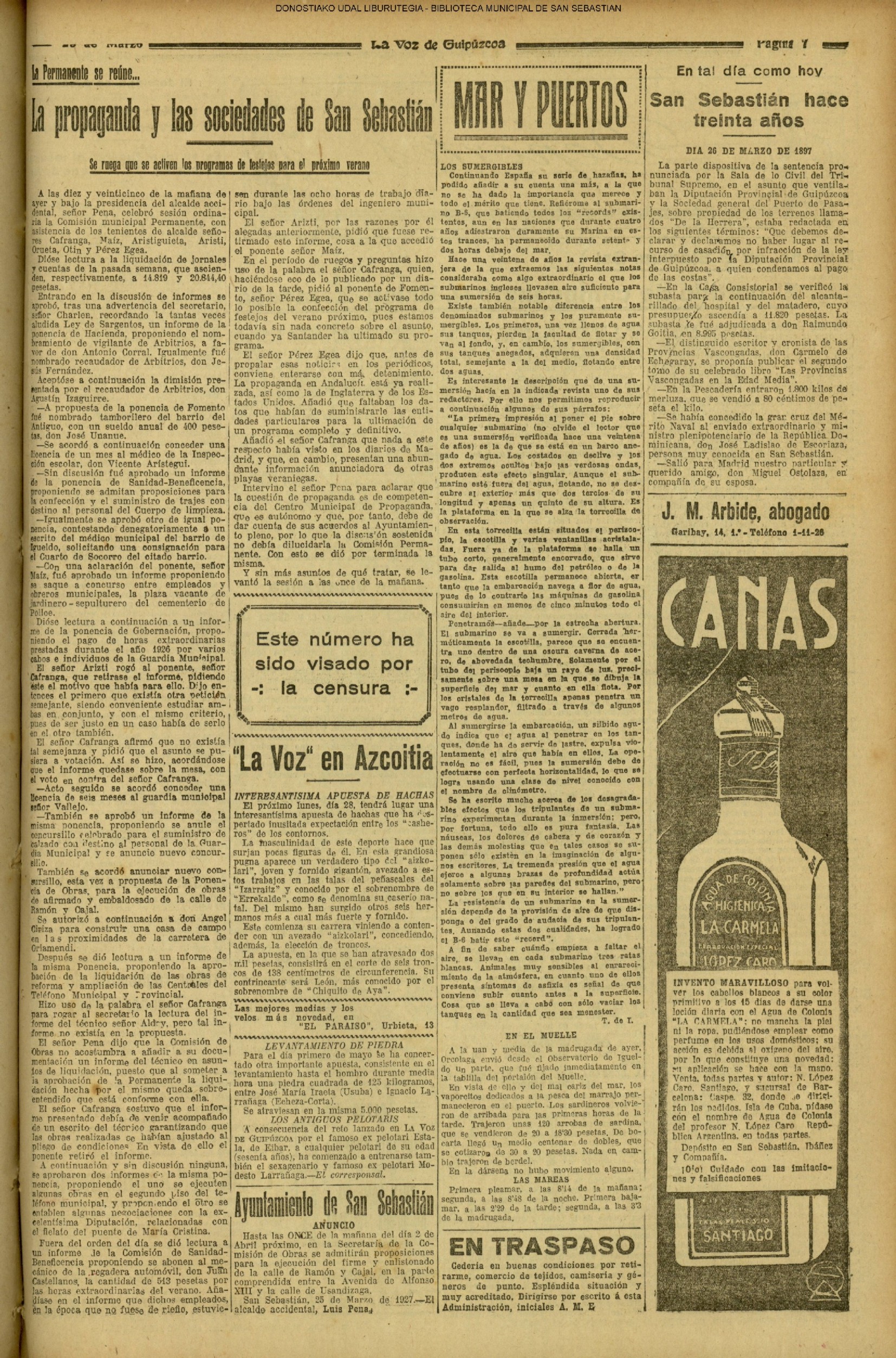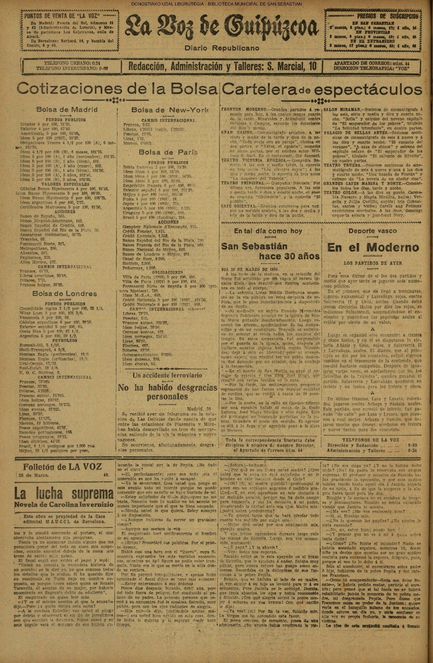 | 1936 jueves ![]() Guerra Civil # #La Voz de Guipúzcoa: diario republicano II » Jueves 26 de Marzo de 1936.Descargar |