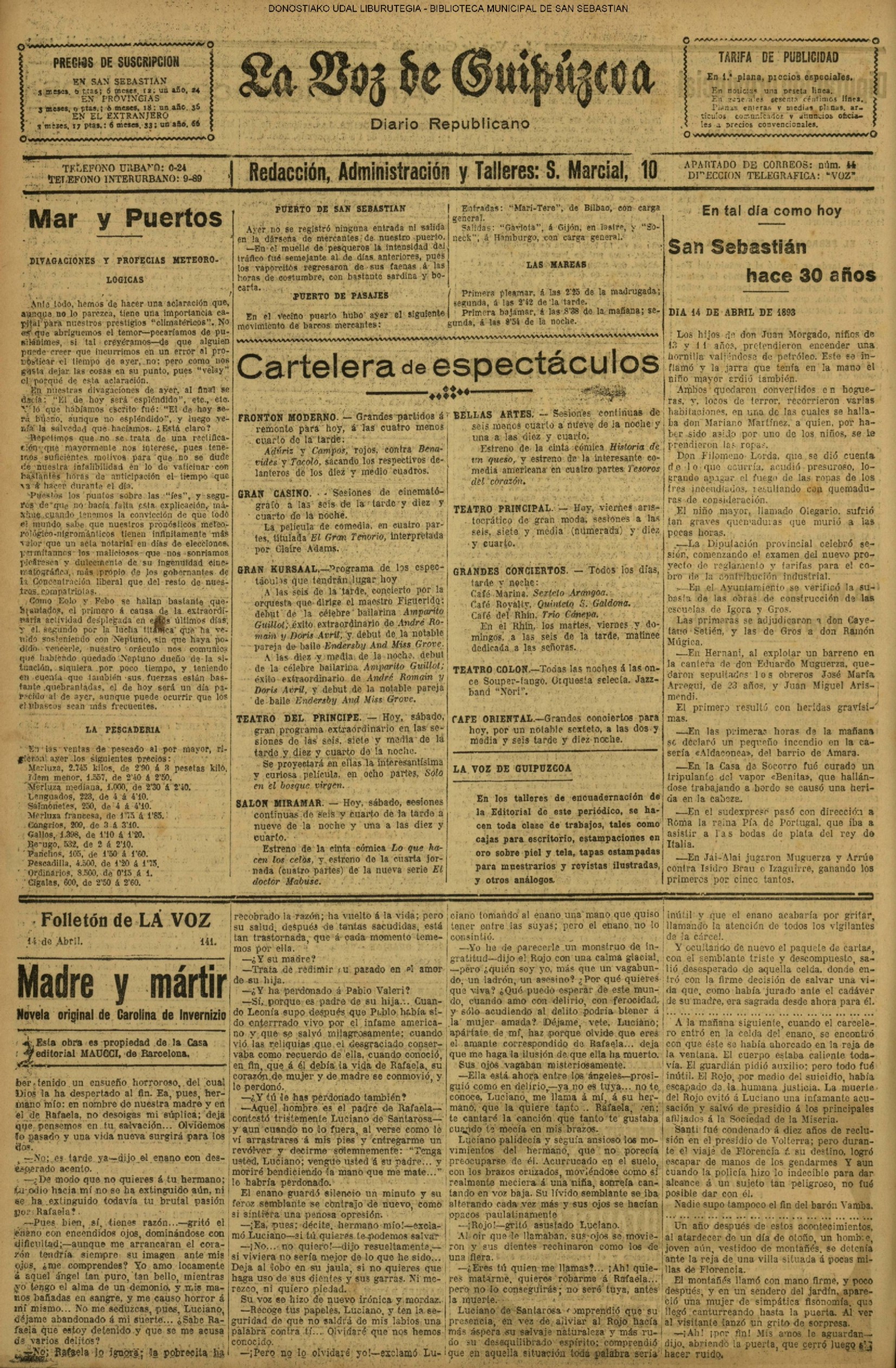 ![]() # El Dia » Martes 14 de Abril de 1931 # # La Voz de Guipúzcoa: diario republicano II » Martes 14 de Abril de 1931 Descargar |