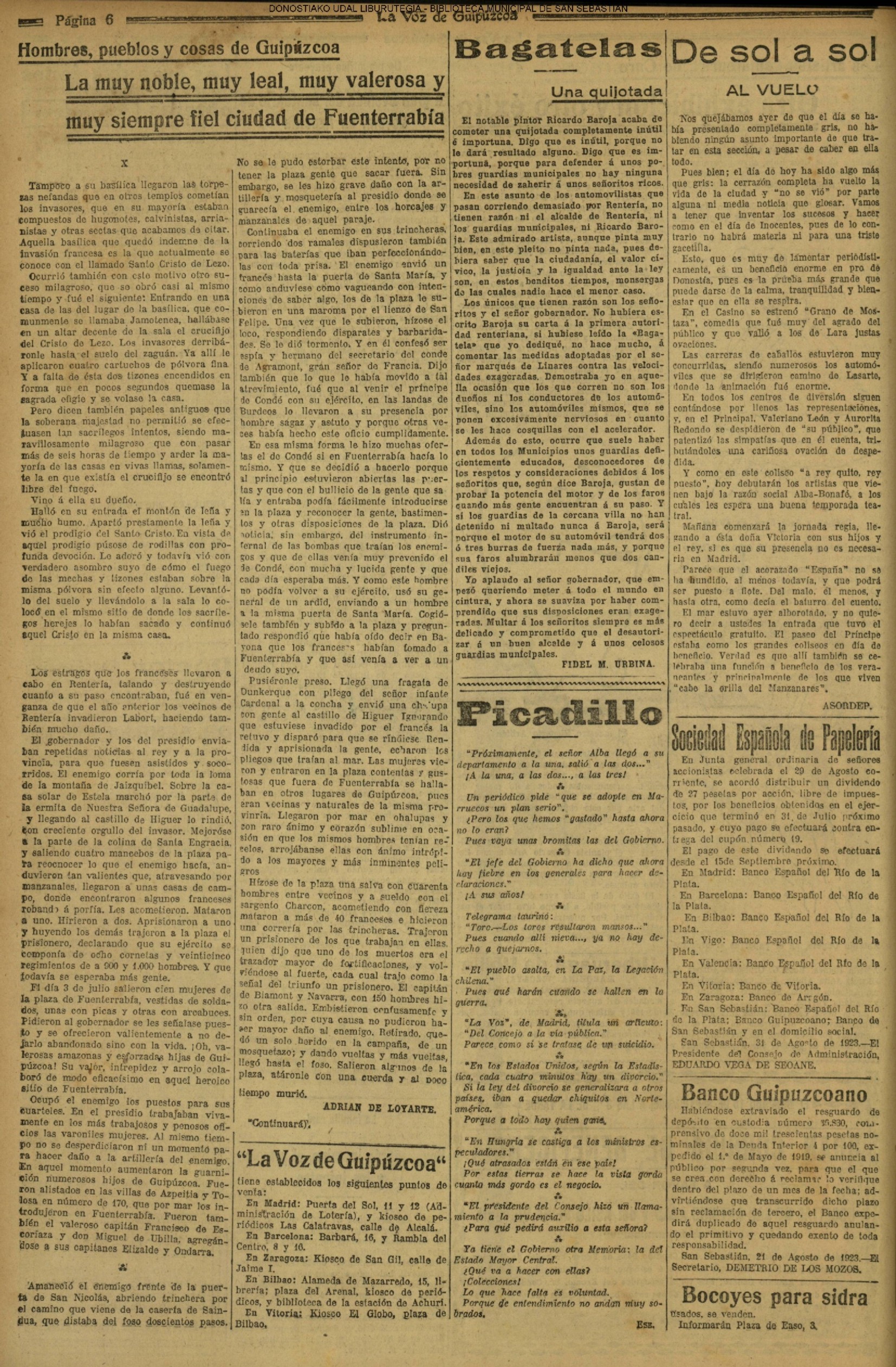 A consecuencia de los disparos de artillería, a las nueve y media de la mañana aparece un pequeño incendio entre los escombros de las casas destruidas, tras la brecha principal. Es un hecho inquietante que trae malos recuerdos a los soldados. Se acuerdan de como se retrasó el primer ataque por culpa de un hecho similar. Afortunadamente es rápidamente controlado. Un hecho curioso era como se comunicaban las baterías de un lado y otro del rio. No existe puente alguno que una las dos riveras. Los correos tenían que cruzar el rio a nado, con los mensajes en la boca. El Teniente Coronel Fraser nos dice que él tenía la costumbre de recompensarles con 10 dólares. Este gesto ocasionó que nunca le faltasen voluntarios para realizar esa fatigosa y arriesgada misión. A primera hora de la mañana el Coronel de Lancey se encuentra en Oyarzun a la cabeza de los voluntarios reclutados entre las otras divisiones por orden del Duque de Wellington. A raíz del fracasado ataque del 25 de Julio, perdió la confianza en la valentía de los hombres de la 5ª división. Por este motivo ordeno la formación de un grupo de voluntarios entre las otras unidades para "enseñarles" como se ataca una brecha. Esta acción creó un gran malestar entre los hombres, que eran injustamente acusados de cobardía. Desde las primeras noches del día se trabaja frenéticamente en la excavación de tres nuevas minas, que parten desde las trincheras más adelantadas, por delante de la batería nº 7. Estas se extendían de manera perpendicular a la línea de la pared del muro de mar, que existía frente al hornabeque de San Carlos. La primera llegó hasta esa pared, la segunda a 25 pies de esta y la tercera a 40 pies. Las tres estaban a unos 8 pies de profundidad y fueron cargadas con 540 libras de pólvora cada una. Nuevamente es visto Wellington a las tres del medio día inspeccionando las brechas. Está en la batería de cañones más cercana al puente quemado, a la derecha del Urumea, desde la que puede ver personalmente todo el camino que tienen que atravesar las tropas atacantes. Finalmente es decidida la hora del ataque definitivo para las once de la mañana del día siguiente. Entre los mandos se extiende la noticia de que el Mariscal Soult va a atacar desde sus posiciones en Francia para liberar de sus asedios las dos plazas que permanecen en sus manos, San Sebastián y Pamplona. Esta información causa una cierta inquietud entre los oficiales. Todo el frente se va a ver inmerso en un combate generalizado. Wellington abandona el asedio para ocuparse personalmente de la defensa de toda la zona fronteriza. El Teniente Coronel Fraser desde su posición en las baterías del Chofre escudriña con sus prismáticos el castillo y las baterías del monte Urgull. Ve que la batería del Mirador sufre un incendio. También se fija en otros restos, antes desafiantes, que ahora no son más que un montón de ruinas. Son las letras del mensaje que realizó el Teniente de Ingenieros francés, Albert Goblet, el día del cumpleaños del Emperador. Ahora no son más que unos espectrales restos. A las cuatro y cuarenta y cinco minutos se escuchan cinco fuertes explosiones dentro de la ciudad. Una de ellas cerca de la iglesia de San Vicente, habilitada como hospital. La noche entre el 30 y el 31 se realiza una nueva gesta, esta vez a cargo del Comandante Snodgrass. Este oficial, al mando de una columna de tropas portuguesas, era consciente de la importancia que tenía encontrar un nuevo vado por el que podría abrir un nuevo camino de ataque con sus tropas, desde el otro lado del rio. El hecho de que solamente se contara con una vía de ataque era muy peligroso tácticamente. Se sabía que existía esa posibilidad desde que lo cruzara el Capitán de artillería MacDonald, pero por donde este valiente vadeó anteriormente el rio no servía. Tenía la convicción de que existía un paso más cercano que le facilitara el acceso a la brecha más cercana al baluartillo de San Telmo. Se pasó toda la noche metido en el agua hasta la cintura aprovechando la marea baja, hasta comprobar que era vadeable justo enfrente de la brecha menor. Cruzó completamente y no contento con eso, trepó a lo alto de la brecha y estuvo observando el interior de la ciudad desde lo alto de la brecha, amparado por la oscuridad de la noche. |