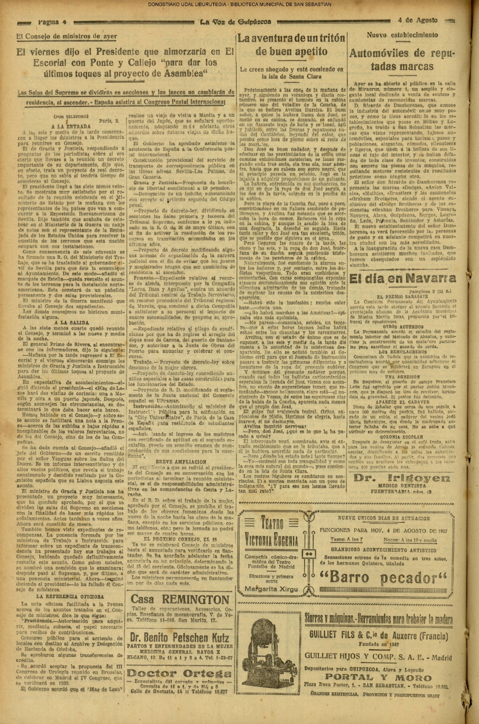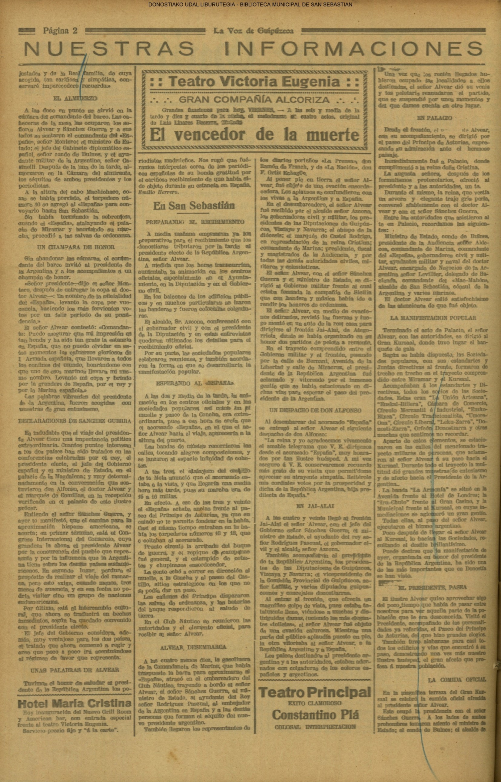 (La Voz de Guipúzcoa/cont)(El Pueblo Vasco)(El Pais Vasco)(La Constancia) |