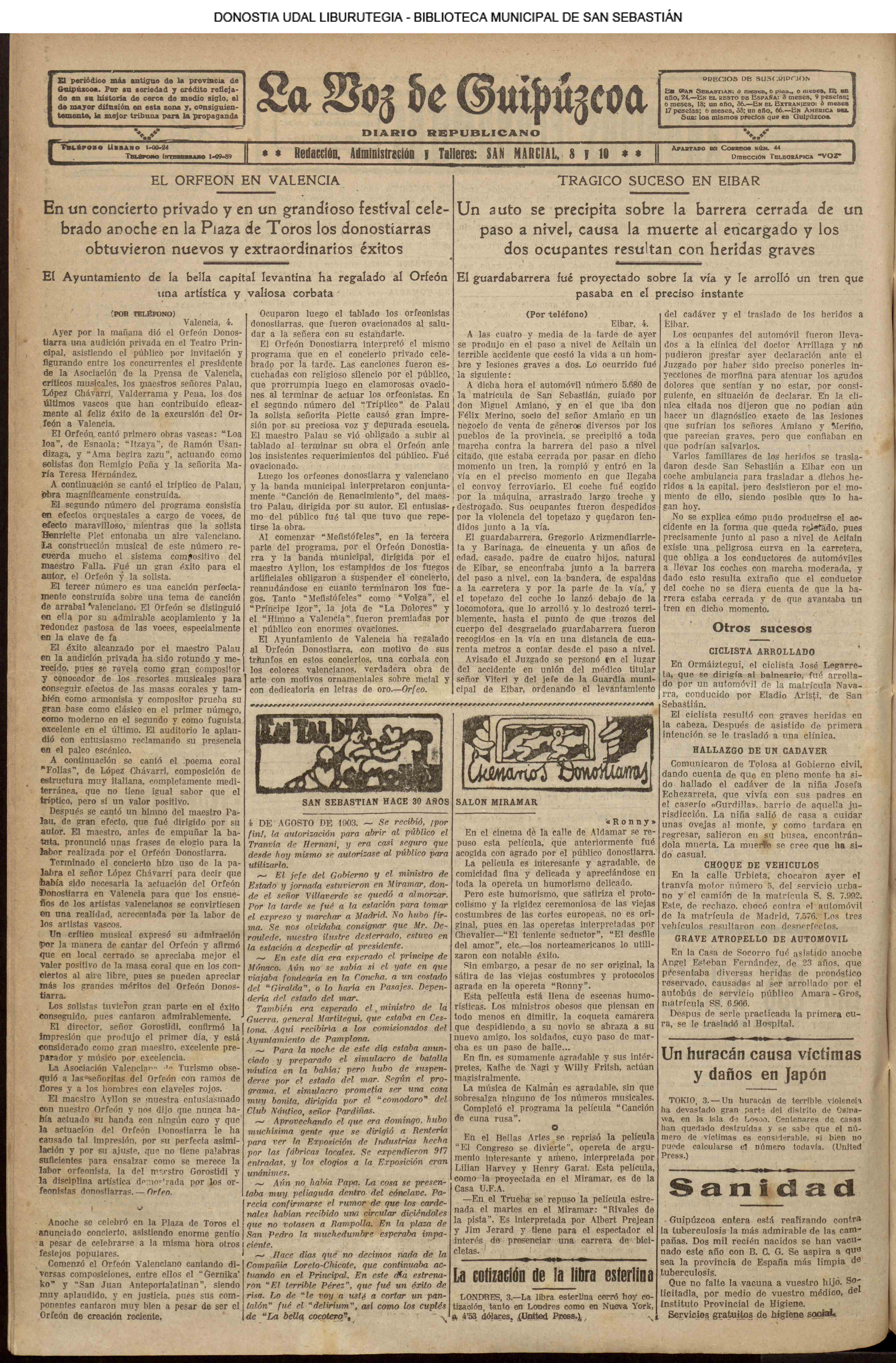 (La Voz de Guipúzcoa)(El Pueblo Vasco)(El Día/foto)(La Constancia)