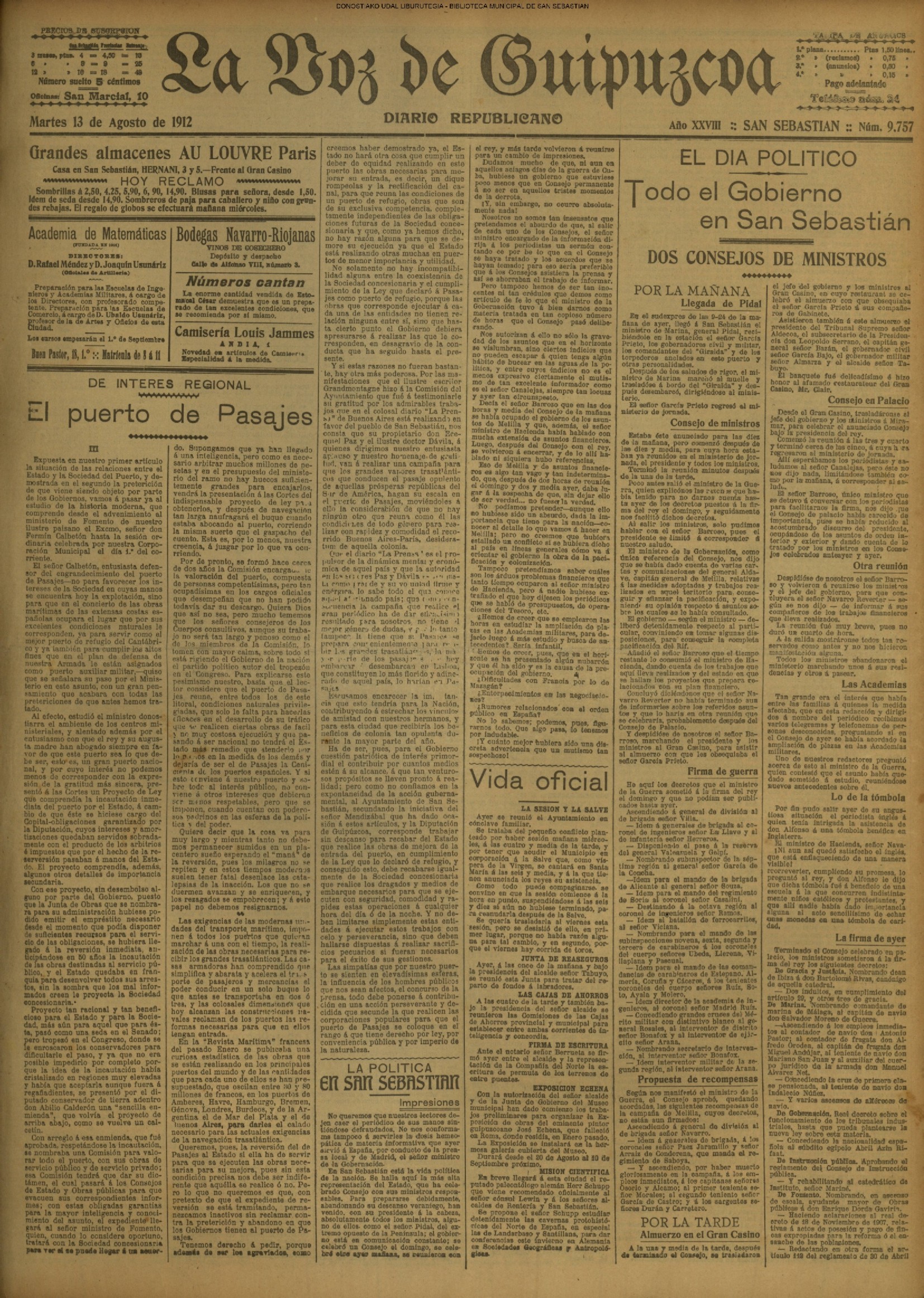 (1912) TODO EL GOBIERNO EN SAN SEBASTIÁN