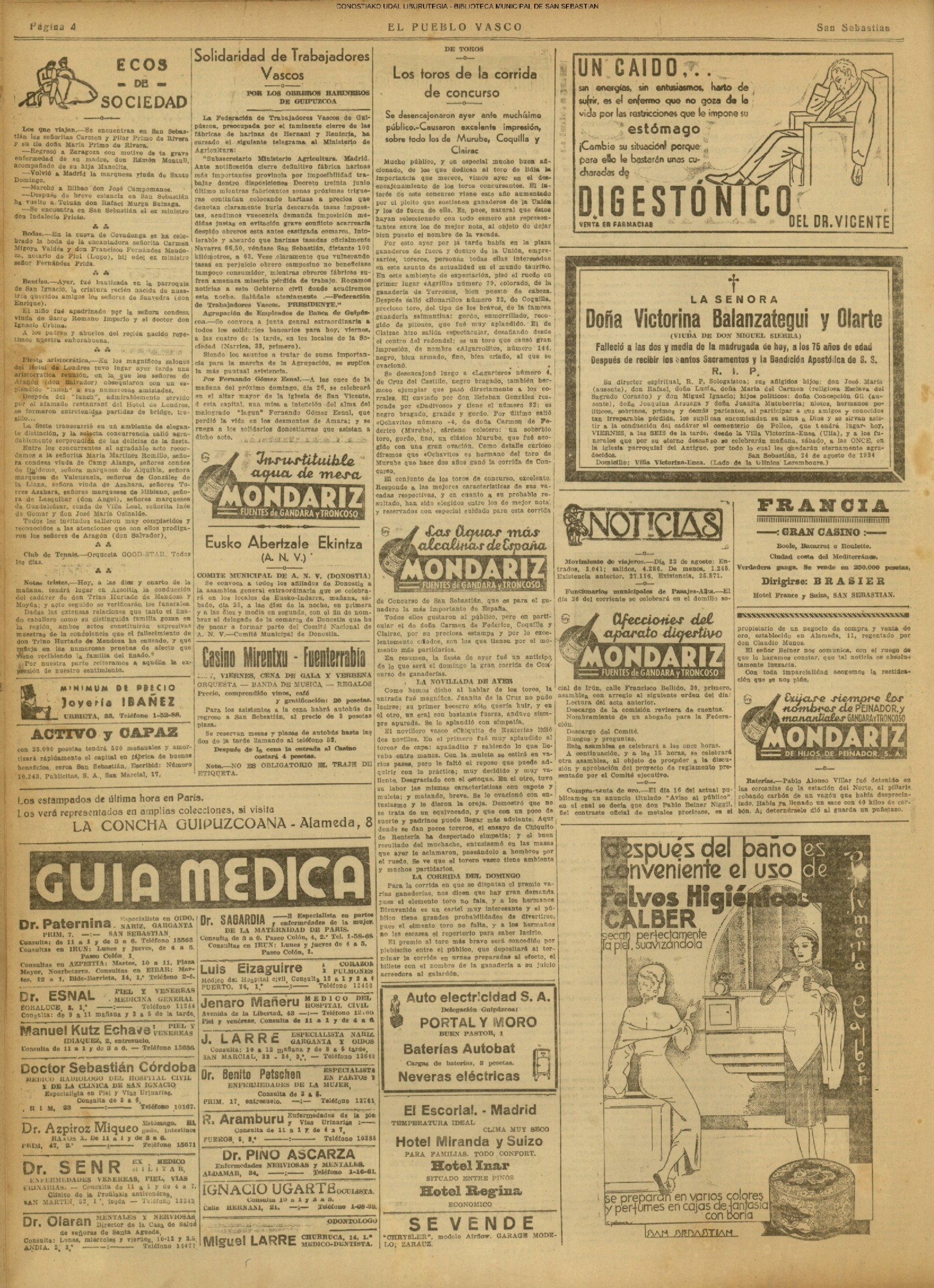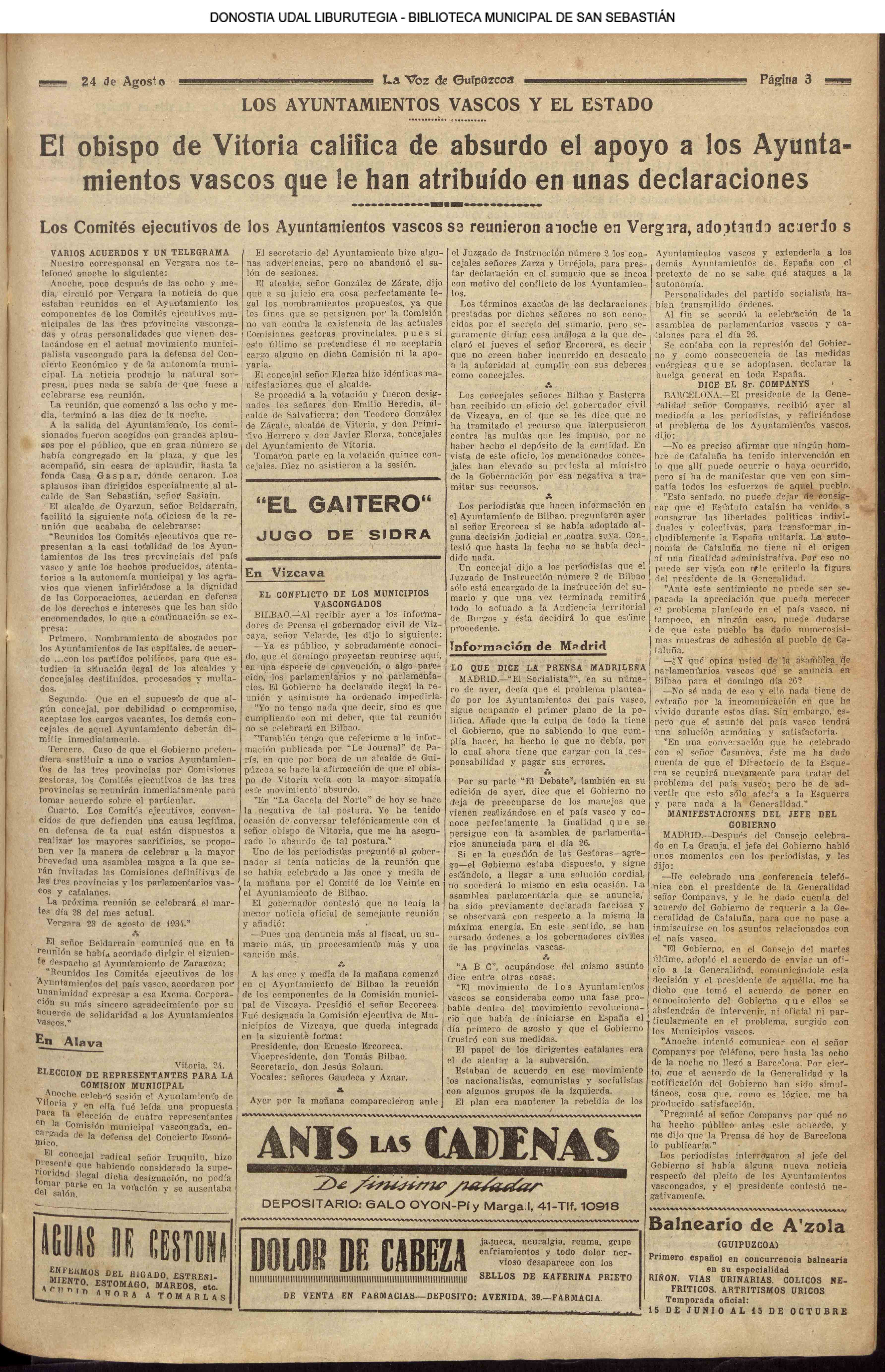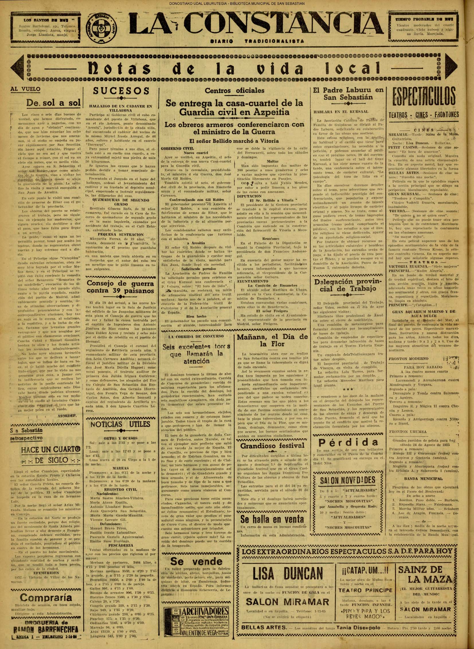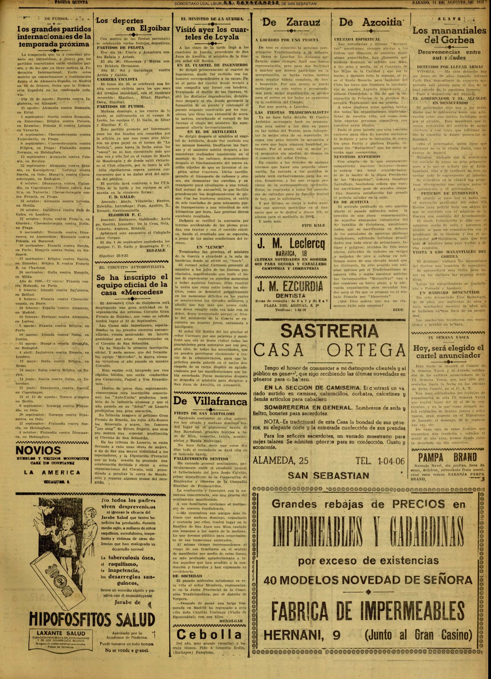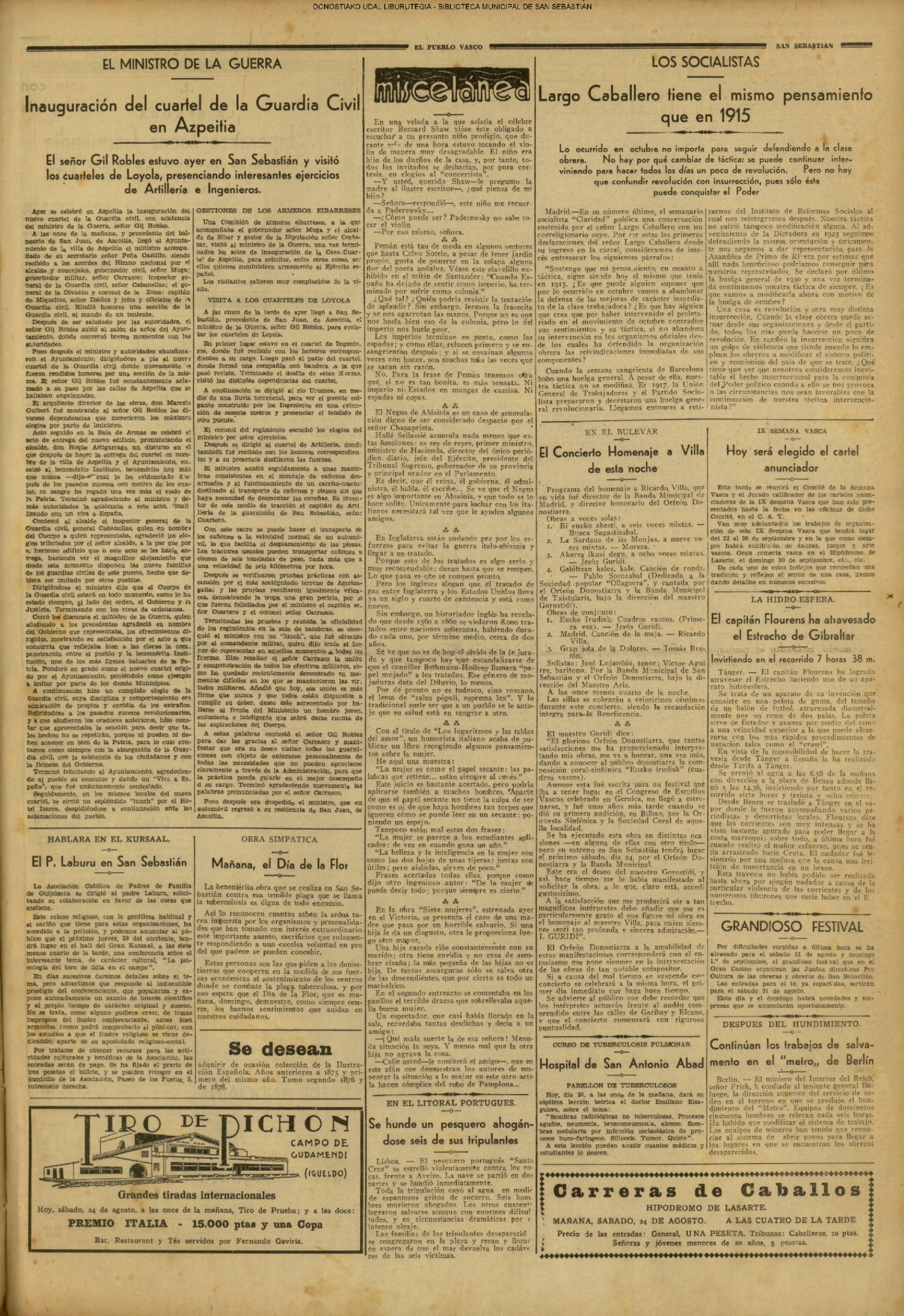 # Lleva esta fecha el Decreto disponiendo que San Sebastián fuera la futura y definitiva capital de Guipúzcoa. Desde el 19 de Enero de diez años antes lo era Tolosa. (GACETA DE MADRID - 24.08.1854)(nº.600)