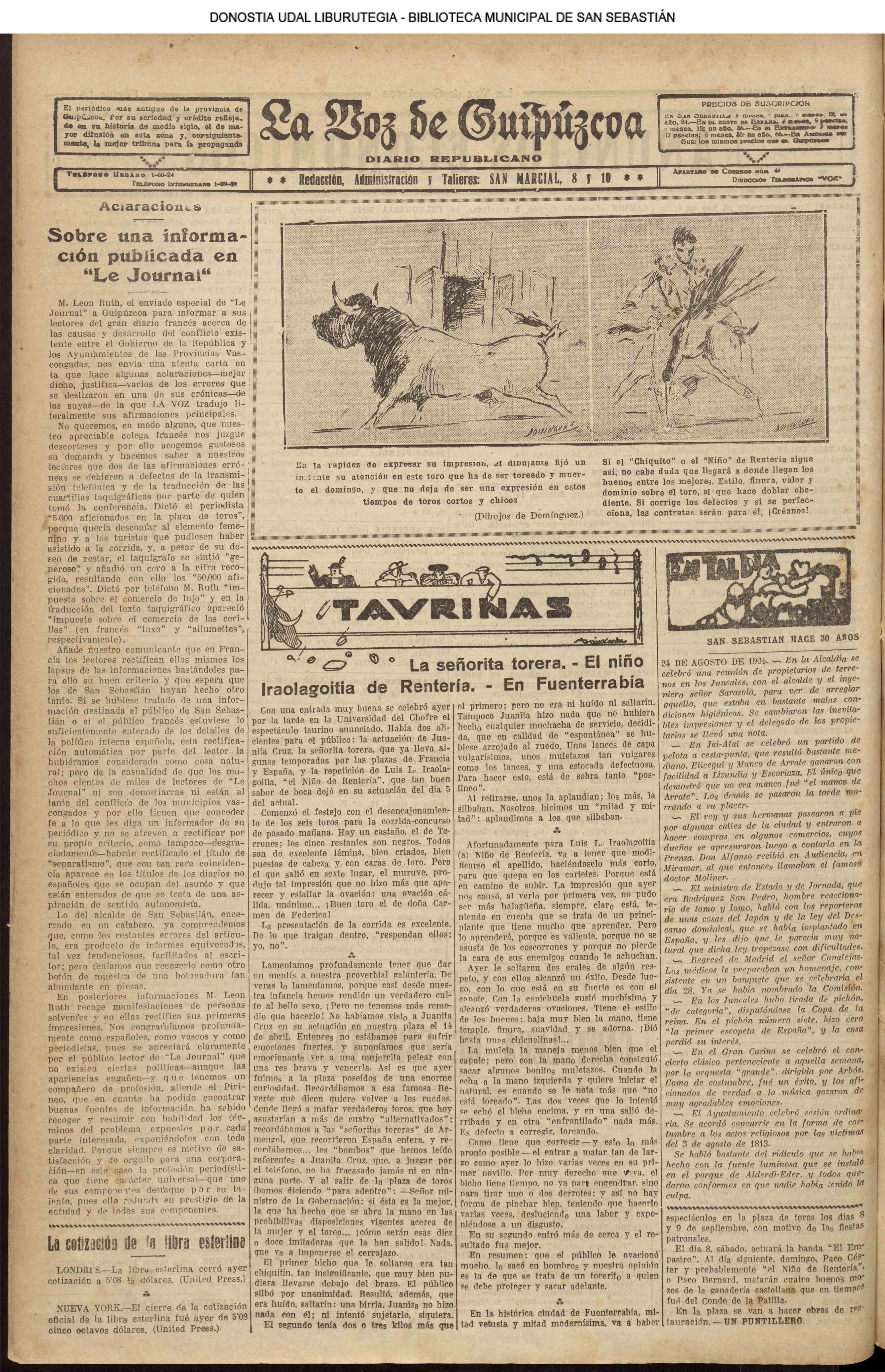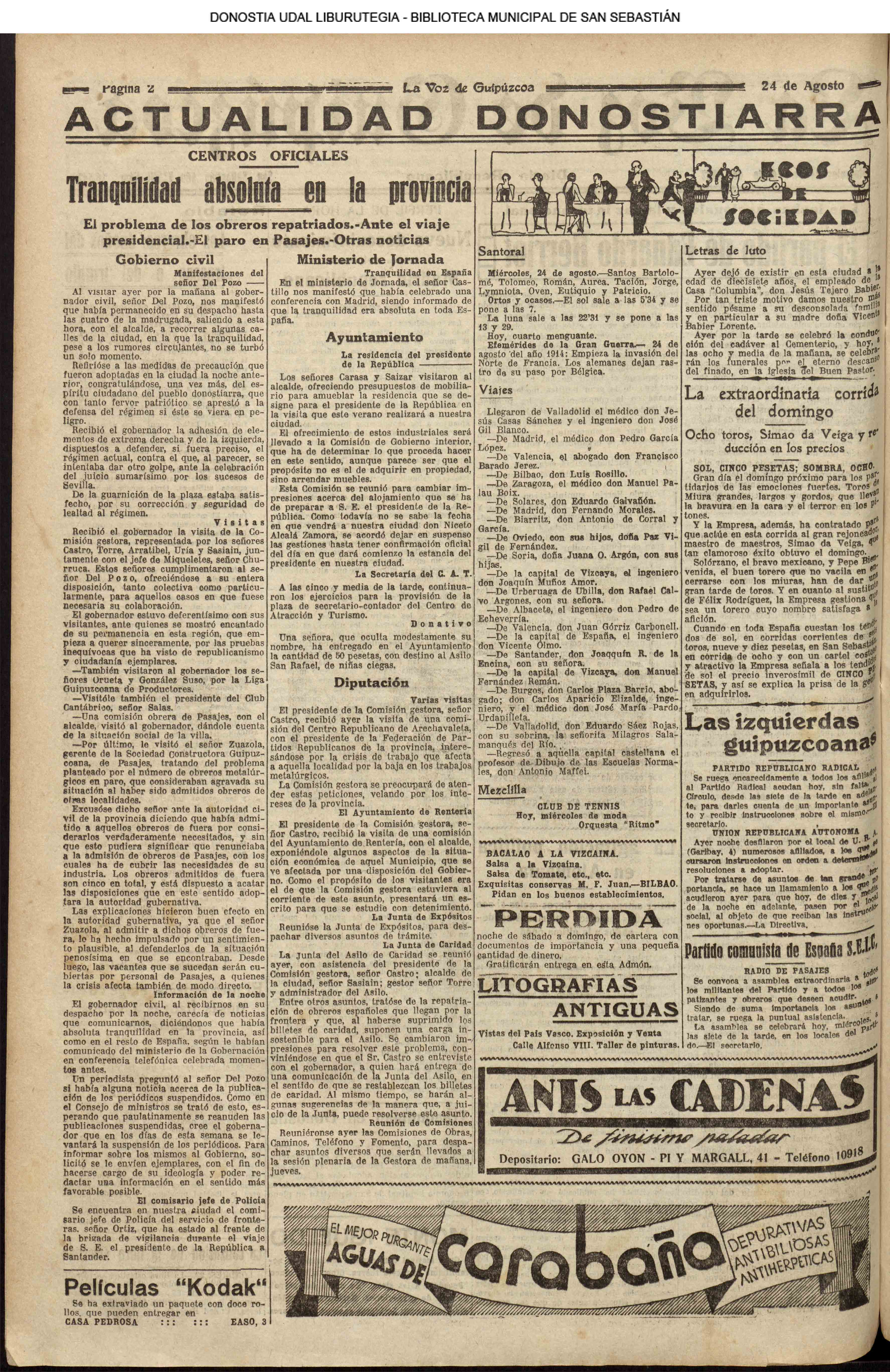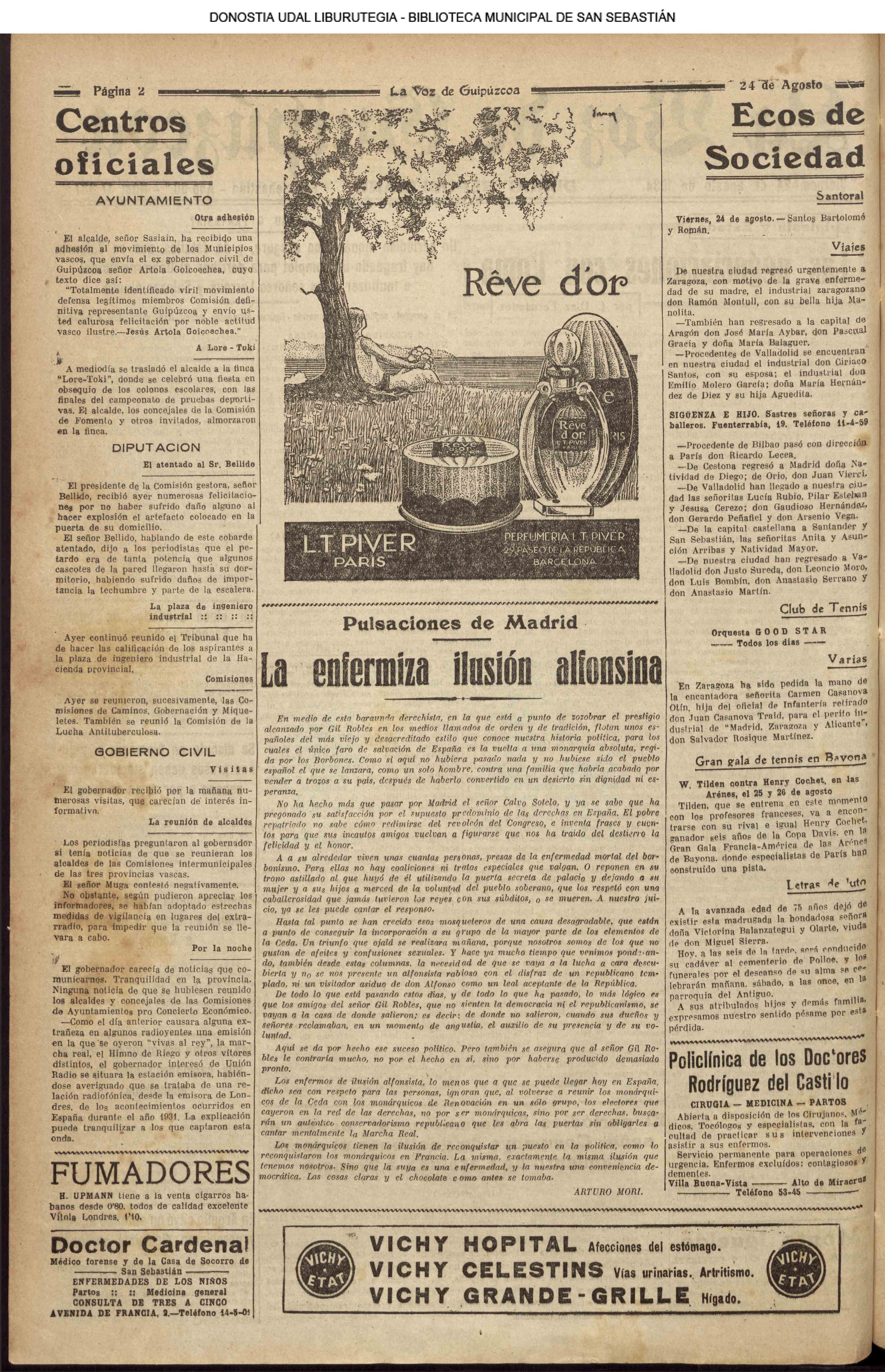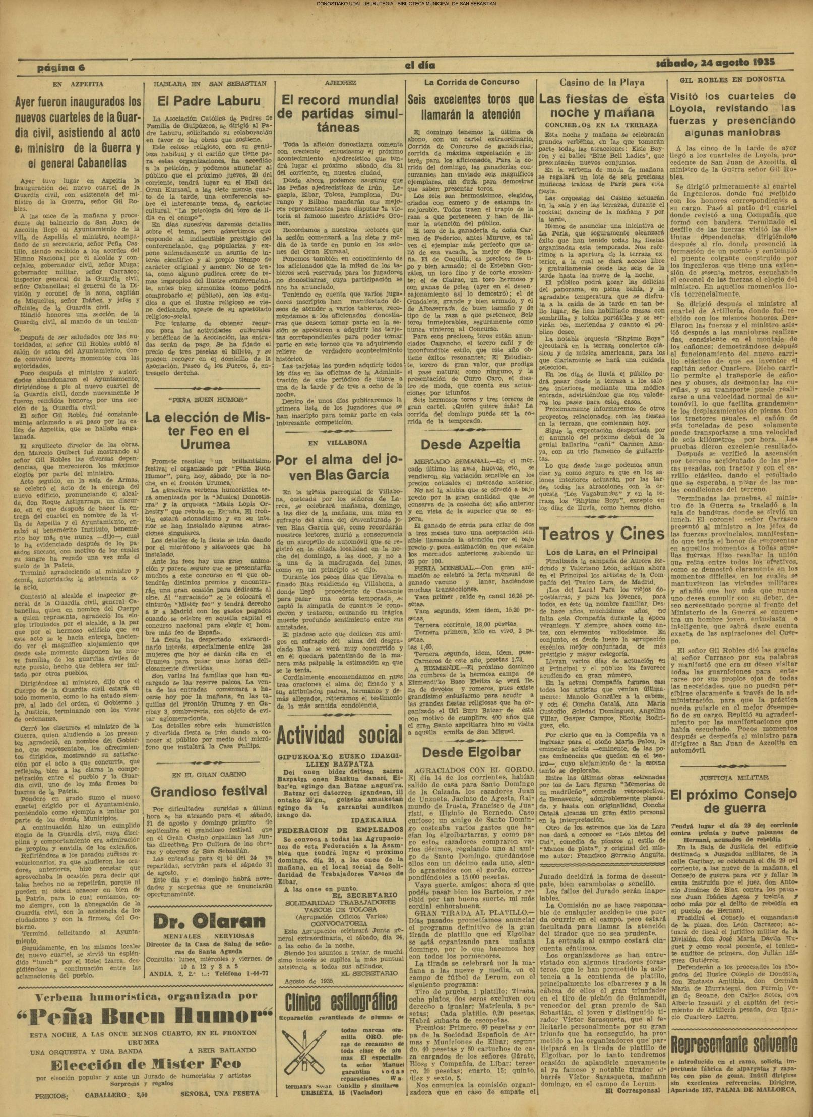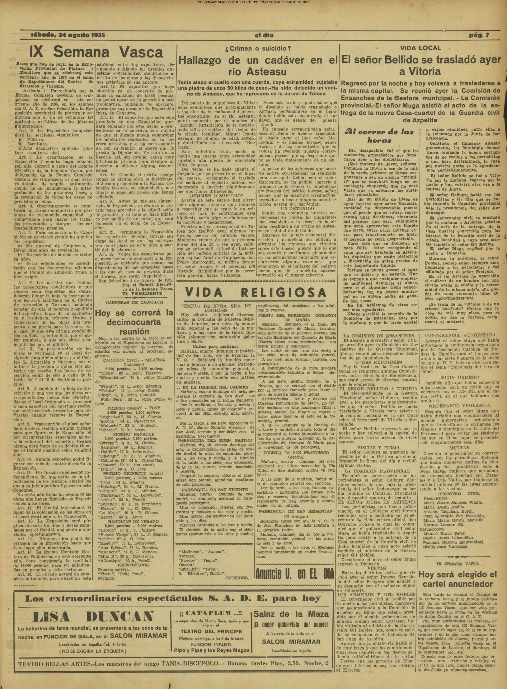 # Lleva esta fecha el Decreto disponiendo que San Sebastián fuera la futura y definitiva capital de Guipúzcoa. Desde el 19 de Enero de diez años antes lo era Tolosa. (GACETA DE MADRID - 24.08.1854)(nº.600)