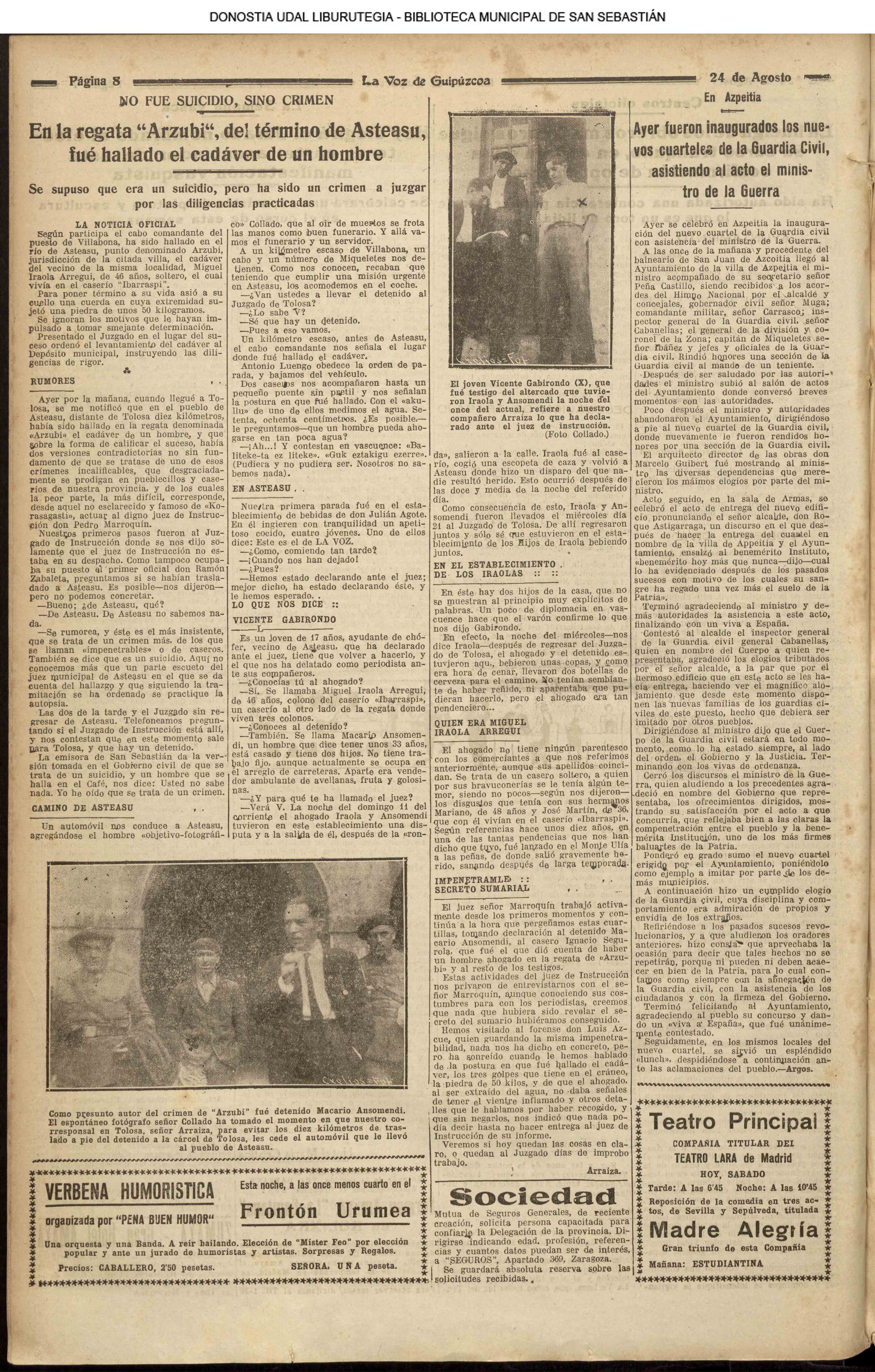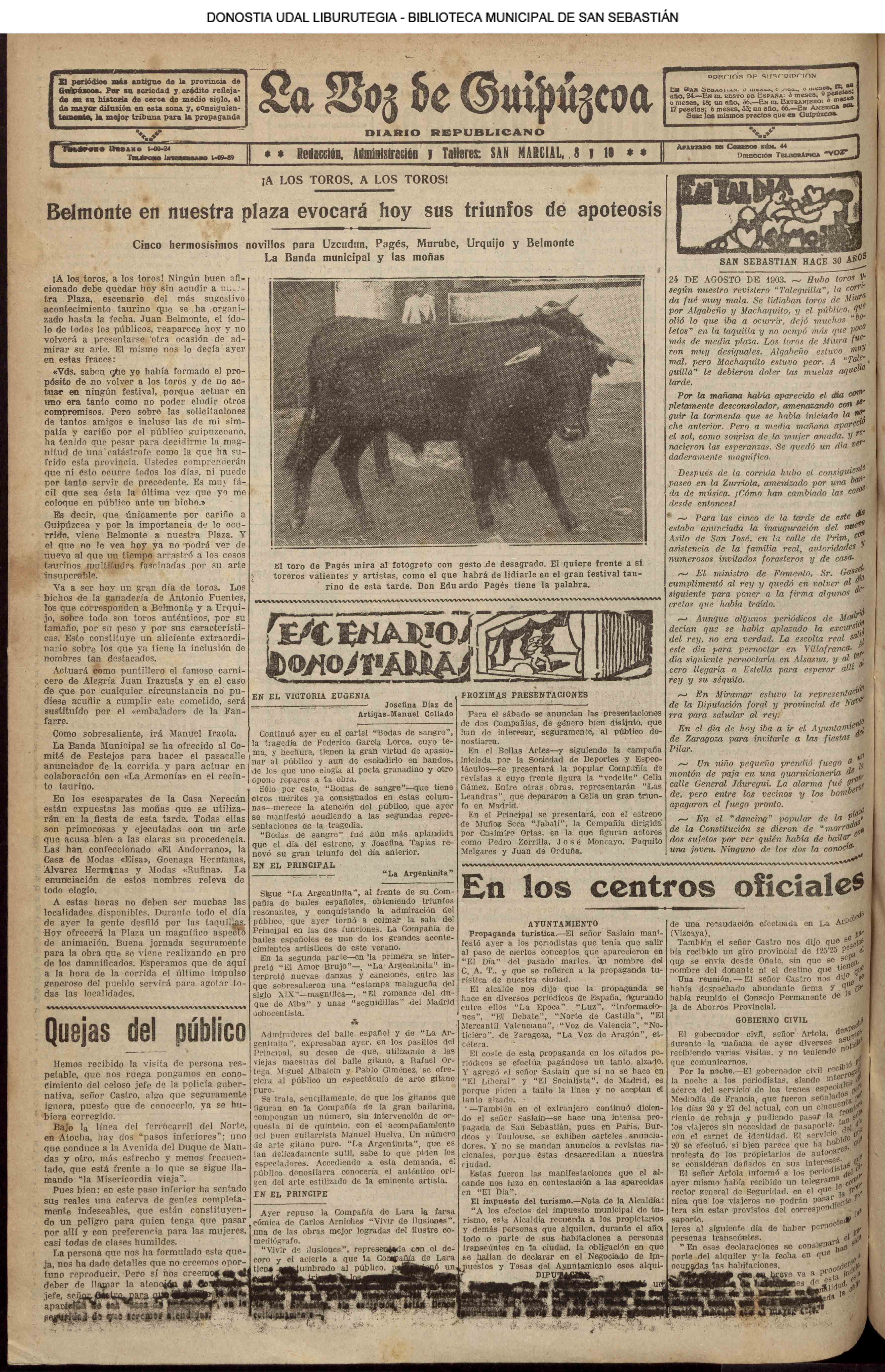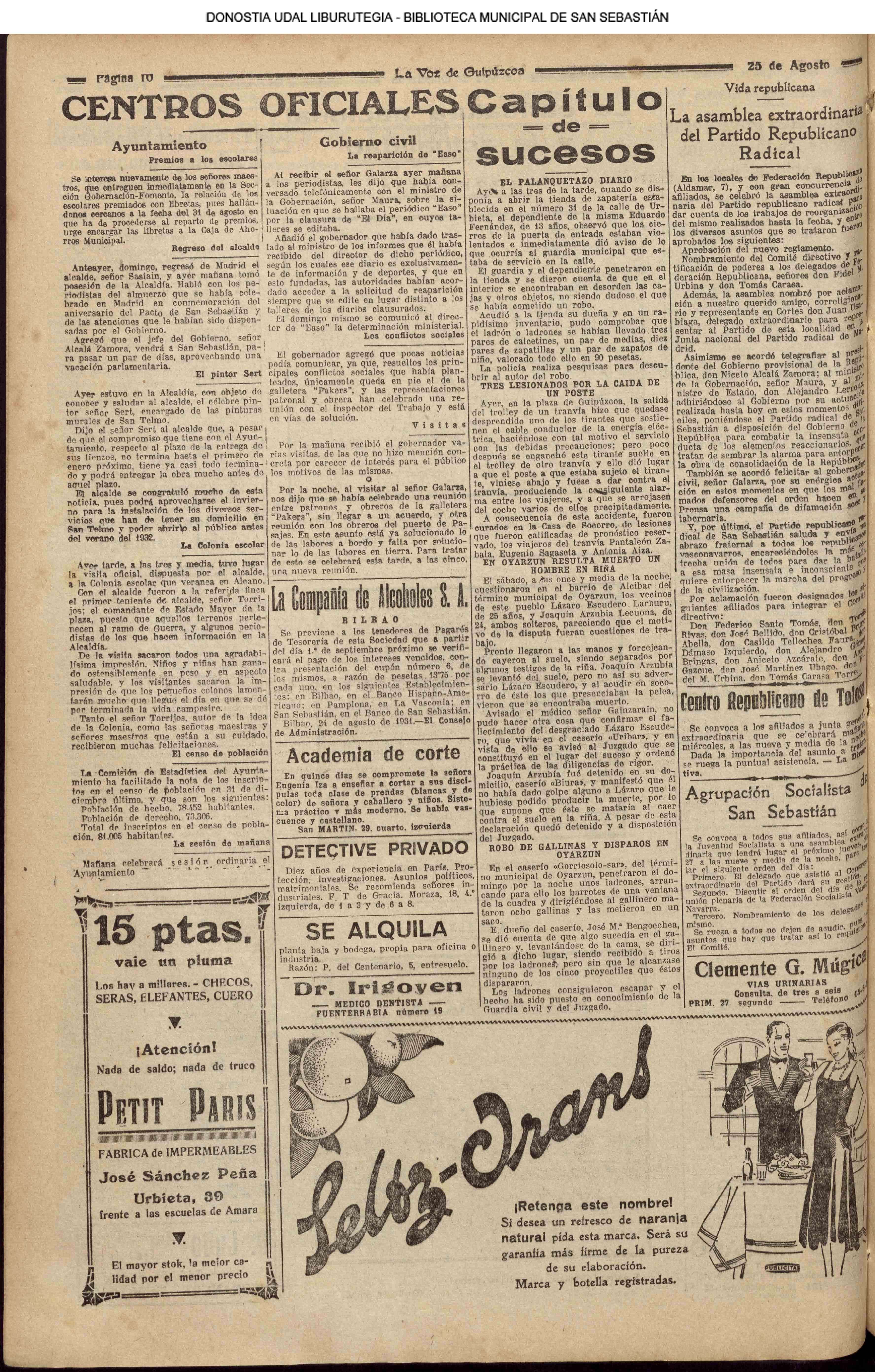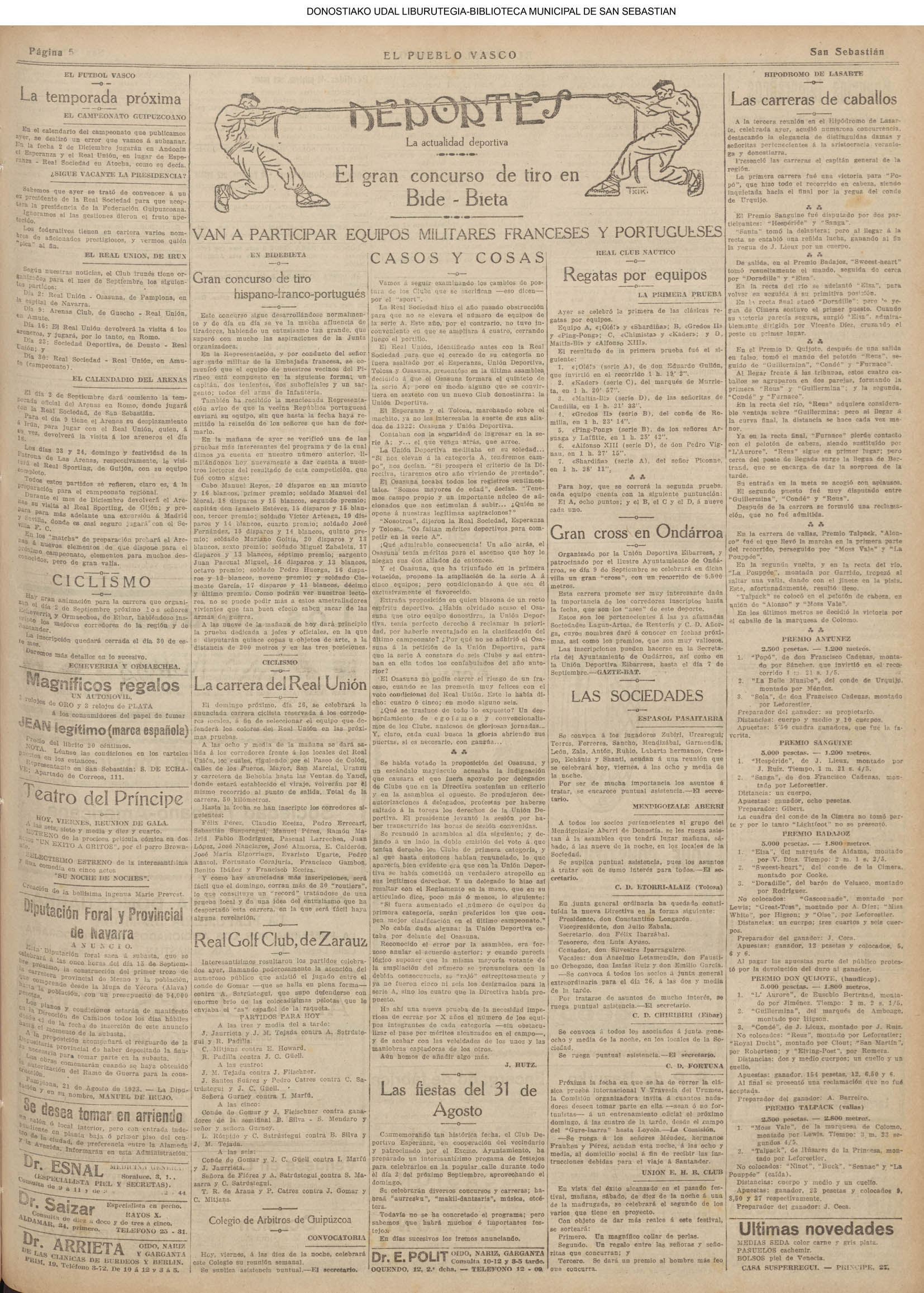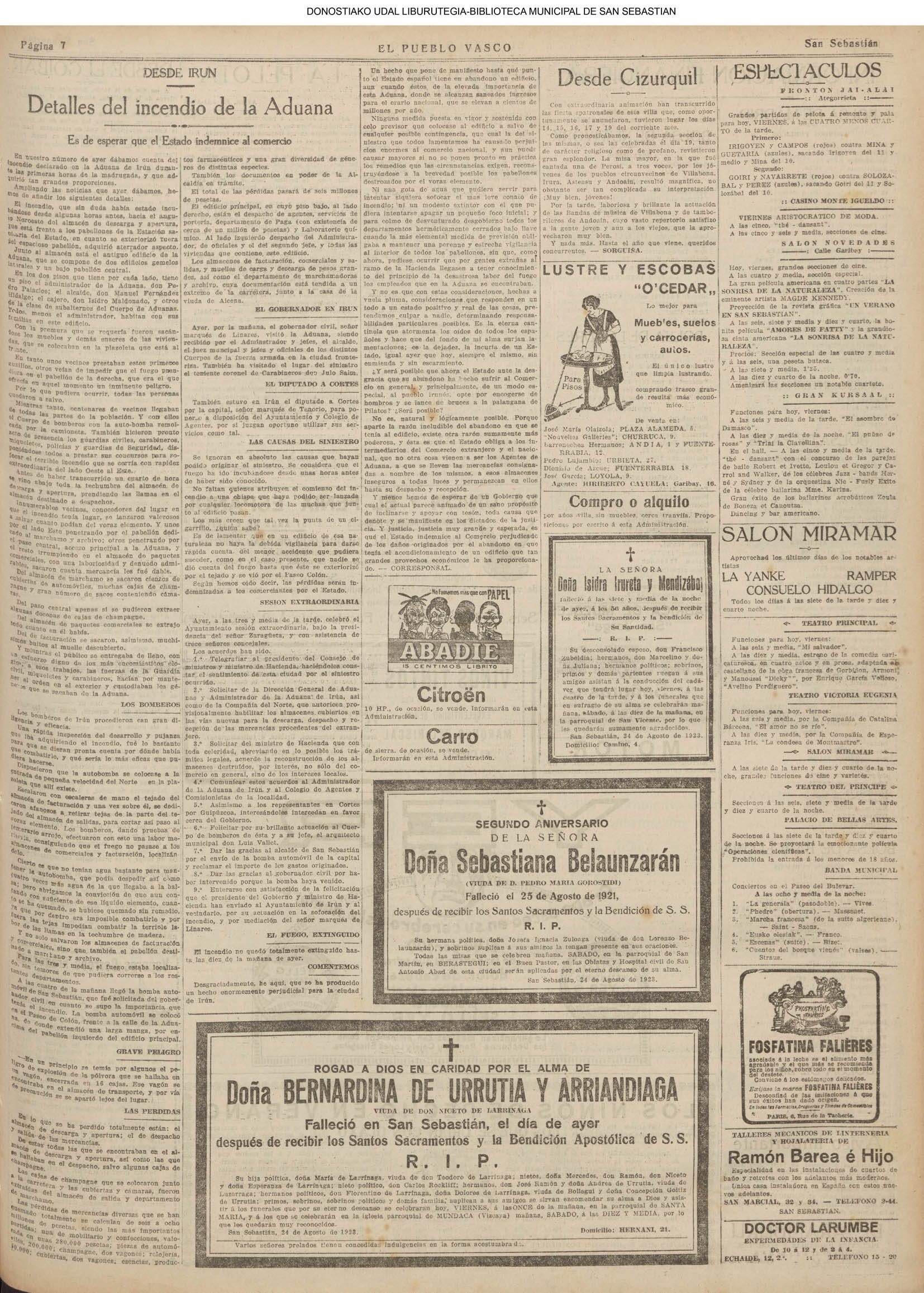 # Lleva esta fecha el Decreto disponiendo que San Sebastián fuera la futura y definitiva capital de Guipúzcoa. Desde el 19 de Enero de diez años antes lo era Tolosa. (GACETA DE MADRID - 24.08.1854)(nº.600)