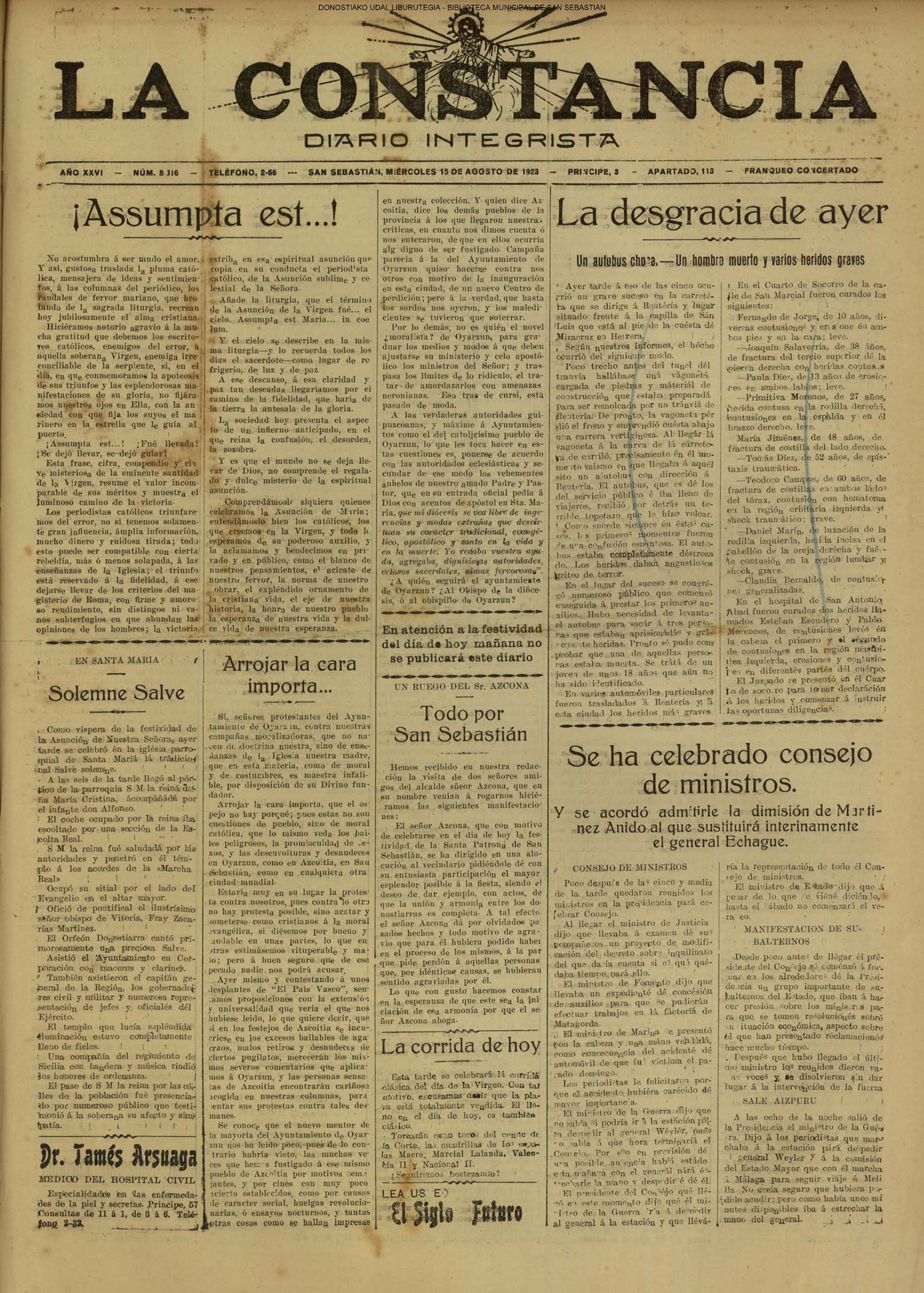 (La Voz de Guipúzcoa)(El Pueblo Vasco)(El Pais Vasco)(La Constancia)