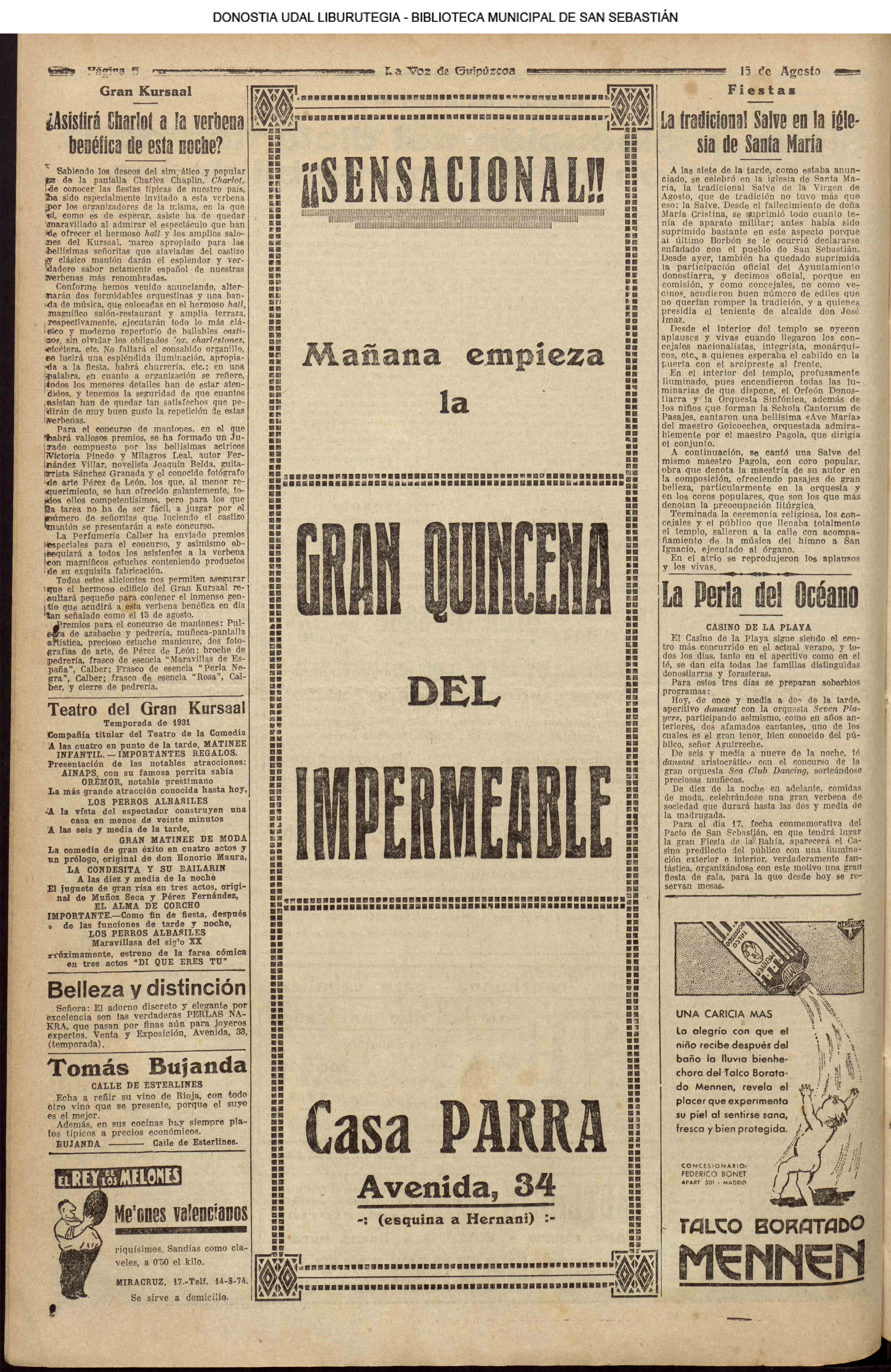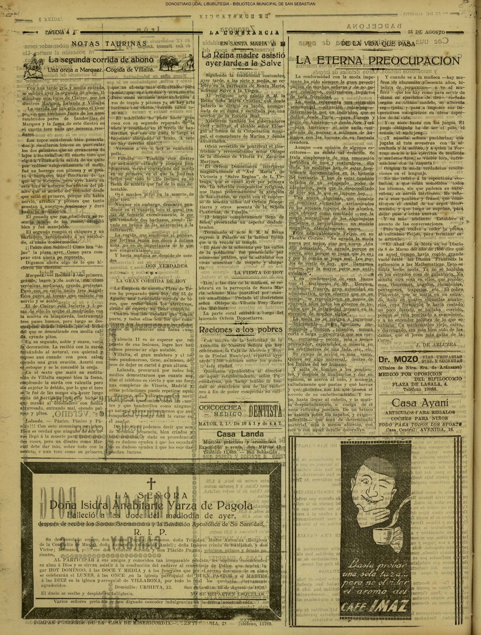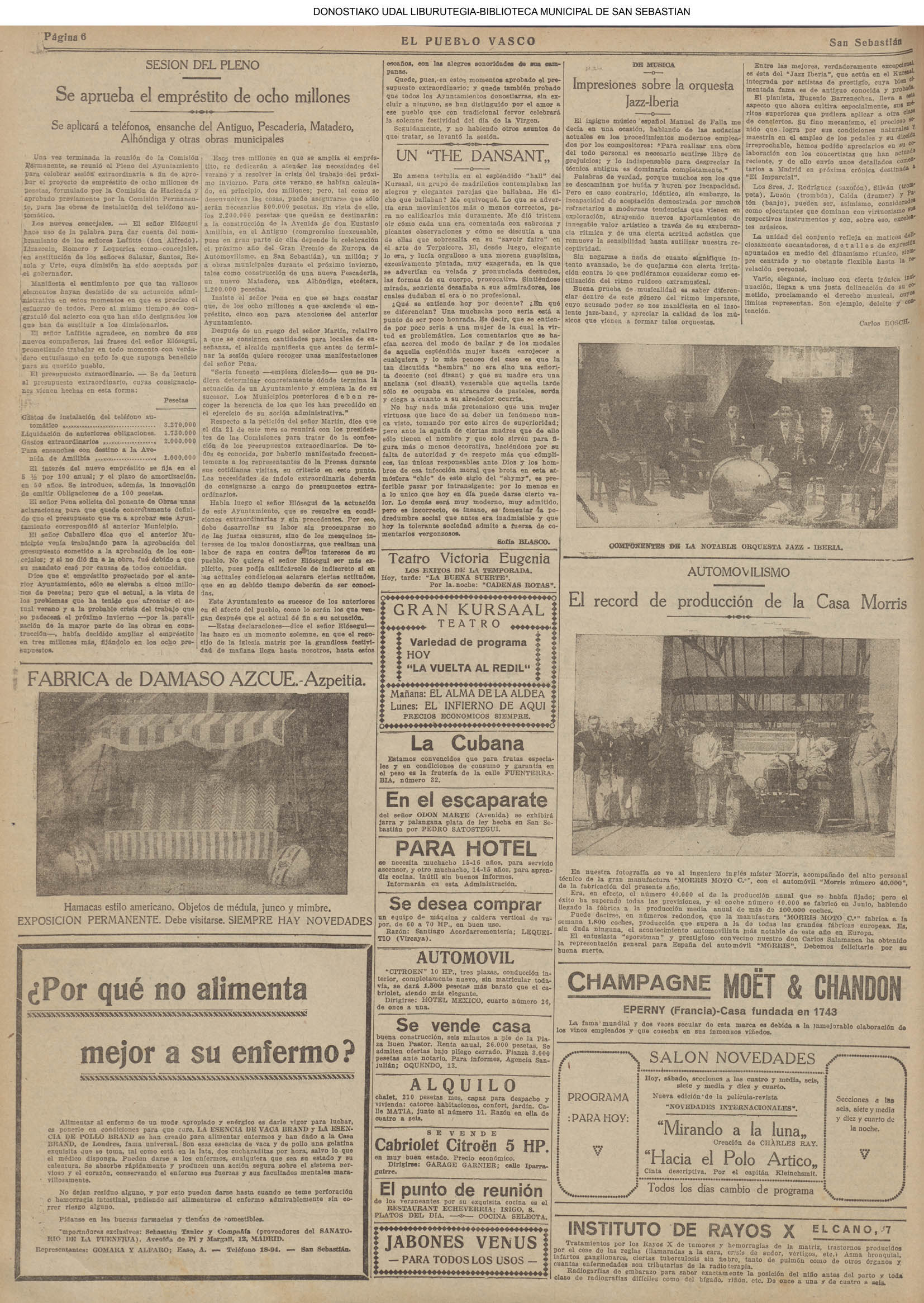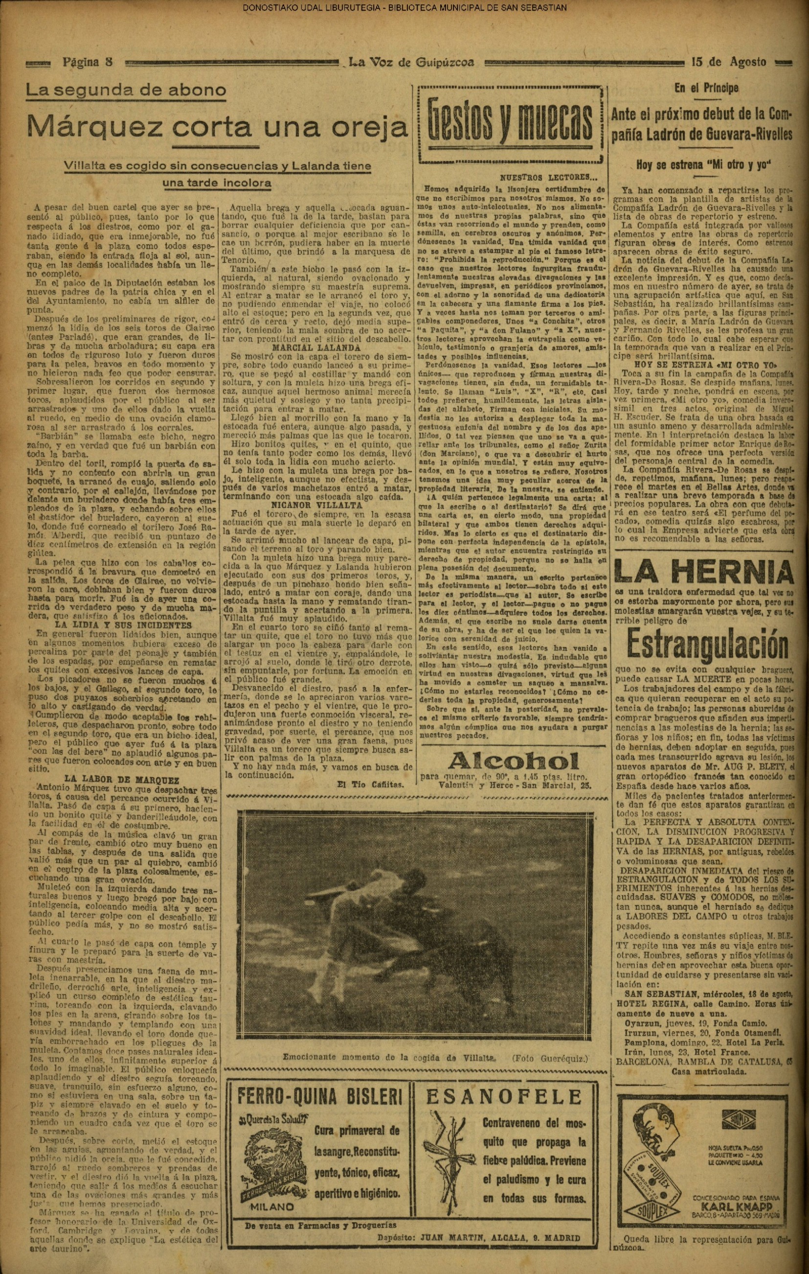 (1920).—Debuta en la Plaza donostiarra,alternando con el "Gallo", Belmonte y Sánchez Mejías, el nuevo torero sevillano Manuel Jiménez (Chicuelo), a quien muchos consideraban sucesor de Joselito. Causó buena impresión, aunque no