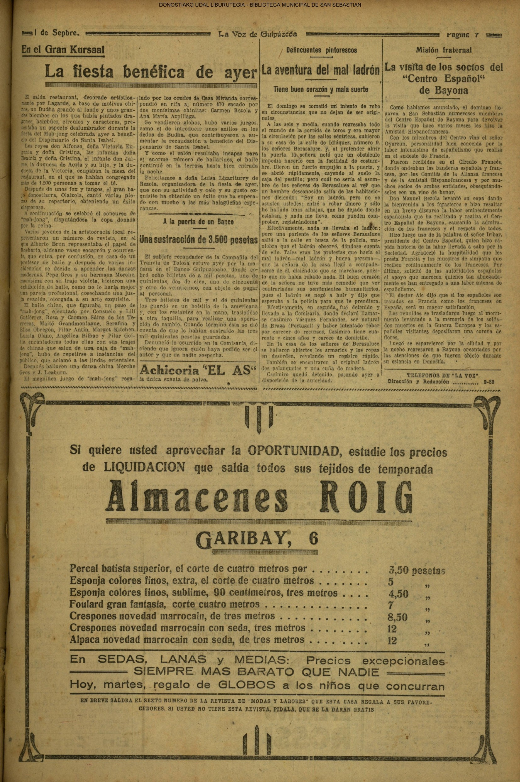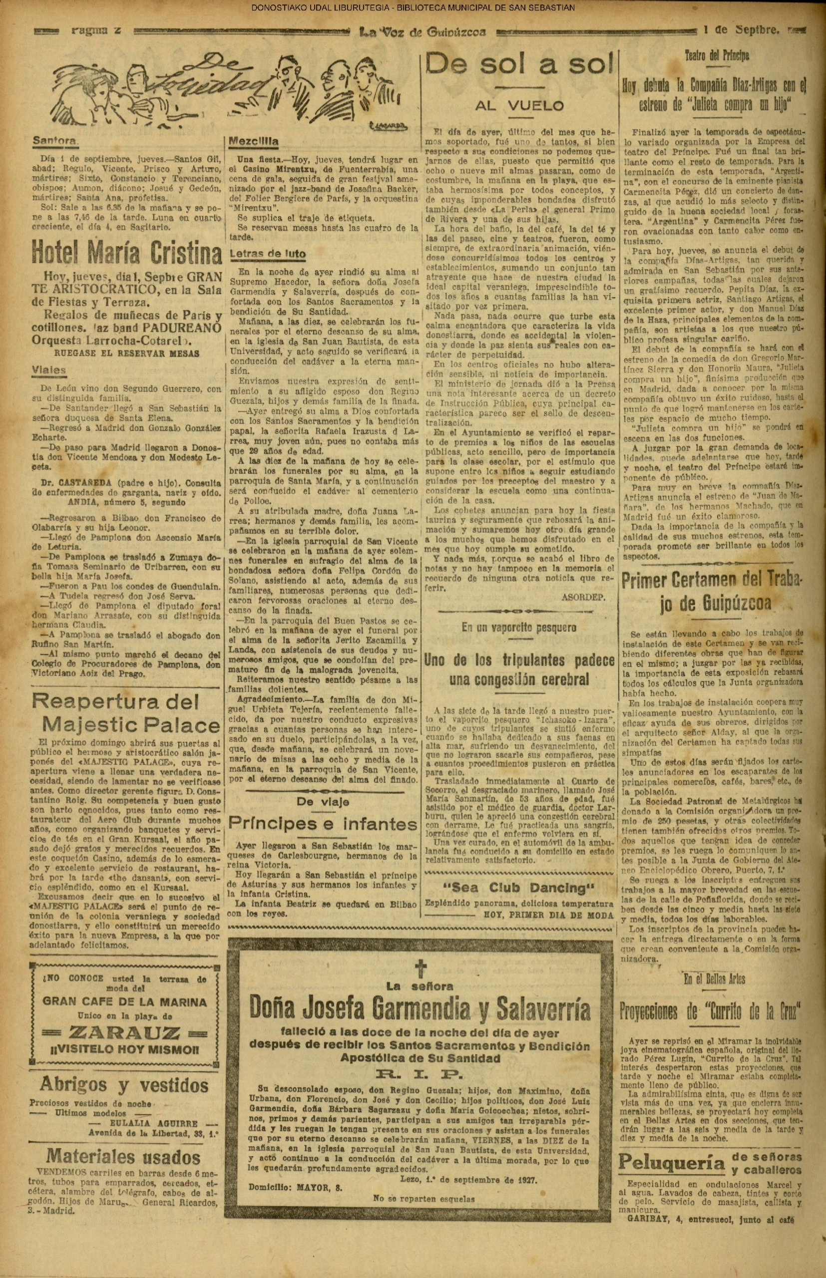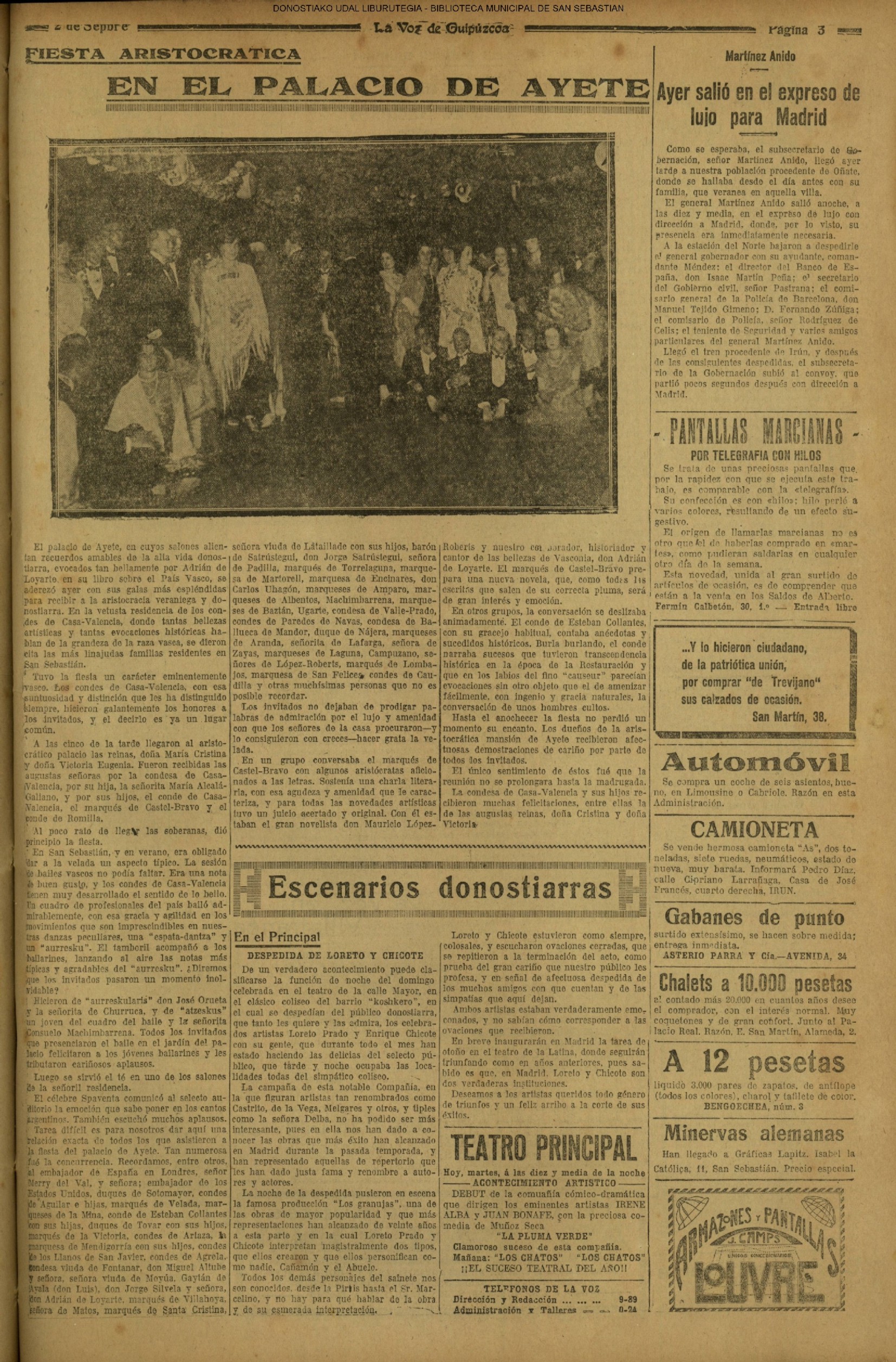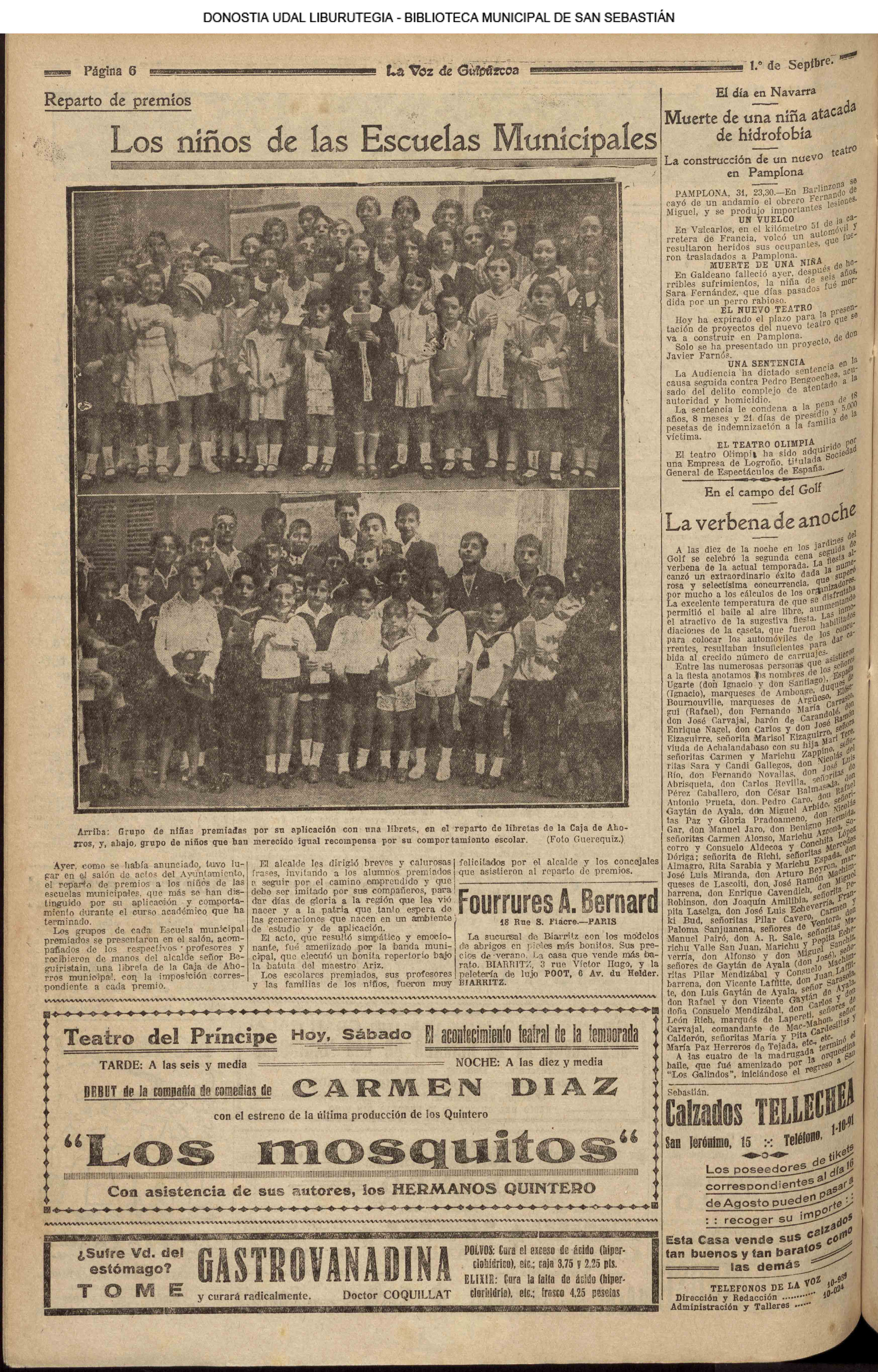 31 - agosto![]() | (1931) LA VOZ DE GUIPUZCOA (CENTROS OFICIALES - Van por buen camino las gestiones para la construcción del Hospital Provincial y Municipal) .- Las fiestas del 31 de Agosto (La Voz de Guipuzcoa)(El Pueblo Vasco)(El Día)(LaConstancia) # HOMENAJE, en el CLUB CANTÁBRICO, a D. Rogelio Gordón (La Voz de Guipuzcoa)(El Pueblo Vasco)(El Día)(LaConstancia) ++++++++++++++++++++++++++++++++++++++ (1932) LA VOZ DE GUIPUZCOA (CENTROS OFICIALES) # PLENO MUNICIPAL.- Se faculta a la Alcaldía para atender a los gastos que origine la estancia de S.E. el presidente de la República.- Se celebrará una Feria del 15 al 39 de septiembre, en los terrenos de Amara.- Adquisición de una ambulancia-automóvil.- La liquidación de las obras del pintor Sert para el Museo de San Telmo.- Las obras del Teatro Principal.- La Urbanización de la calle Carquizano (La Voz de Guipuzcoa)(El Pueblo Vasco)(El Día)(LaConstancia) +++++++++++++++++++++++++++ (1933) LA VOZ DE GUIPUZCOA (CENTROS OFICIALES - La Comisión Gestora prestará su apoyo a los trabajos que se realicen en contra de la elevación de tarifas del Puerto de Pasajes ........) (La Voz de Guipuzcoa)(El Pueblo Vasco)(El Día)(LaConstancia) ++++++++++++++++++++++++++++++++++++++++++++++++++++++++++ # LOS AYUNTAMIENTOS VASCOS Y EL ESTADO.- El Alcalde de San Sebastián publica una nota dirigida a los guipuzcoanos, recomendando que se eviten las estridencias, ante la llegada de los parlamentarios catalanes..... (La Voz de Guipuzcoa)(El Pueblo Vasco)(El Día)(LaConstancia) # IN MEMORIAM (31 de Agosto) (La Voz de Guipuzcoa)(El Pueblo Vasco)(El Día)(LaConstancia) ++++++++++++ # CONMEMORANDO UN ACONTECIMIENTO.- Comenzaron los festejos de la calle del 31 de Agosto. (La Voz de Guipuzcoa)(El Pueblo Vasco)(El Día)(LaConstancia) |