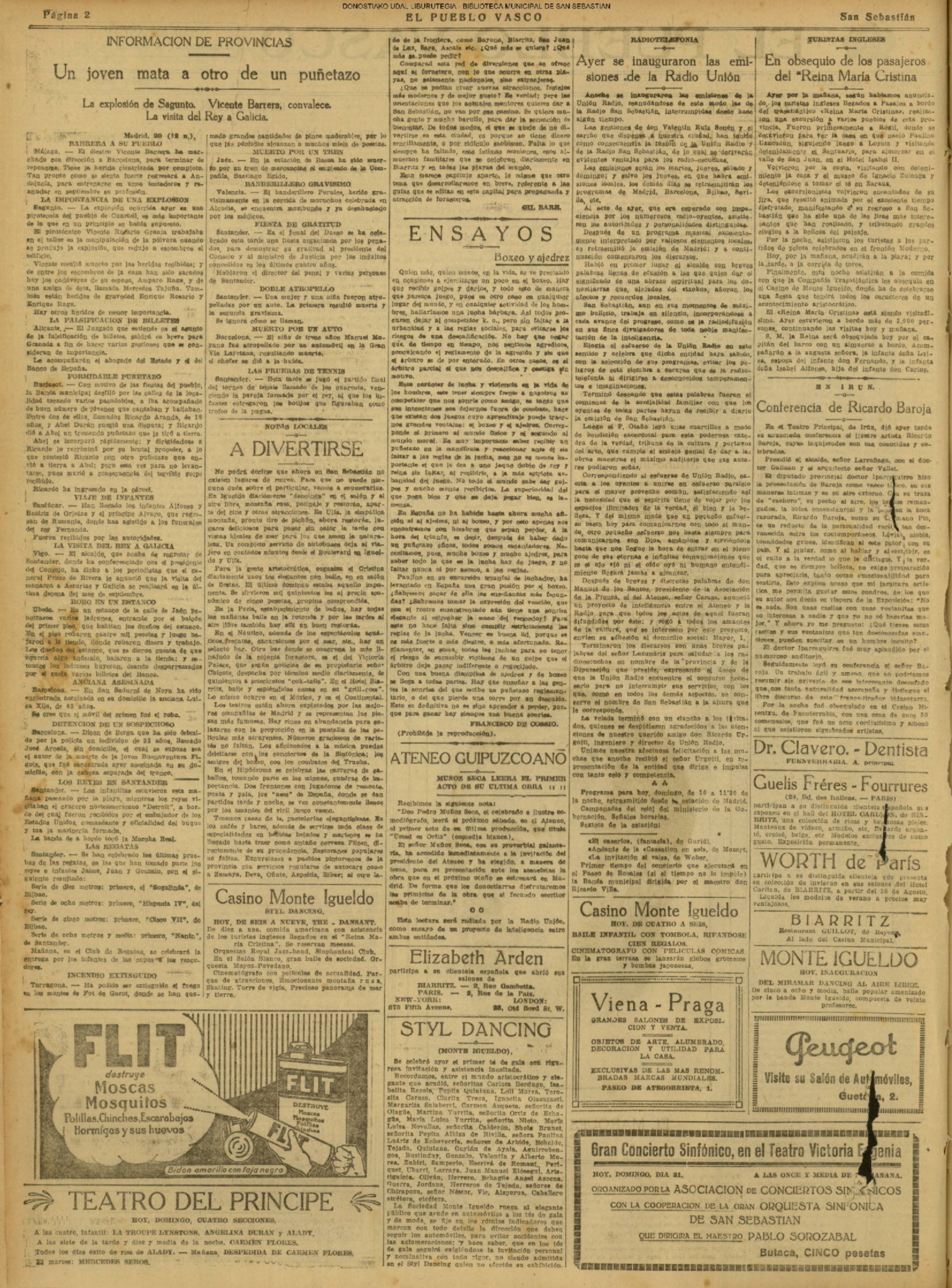 (1921).—Don Pío Baroja, ilustre novelista donostiarra, es sometido en la Clínica de San Ignacio a una delicada intervención quirúrgica.