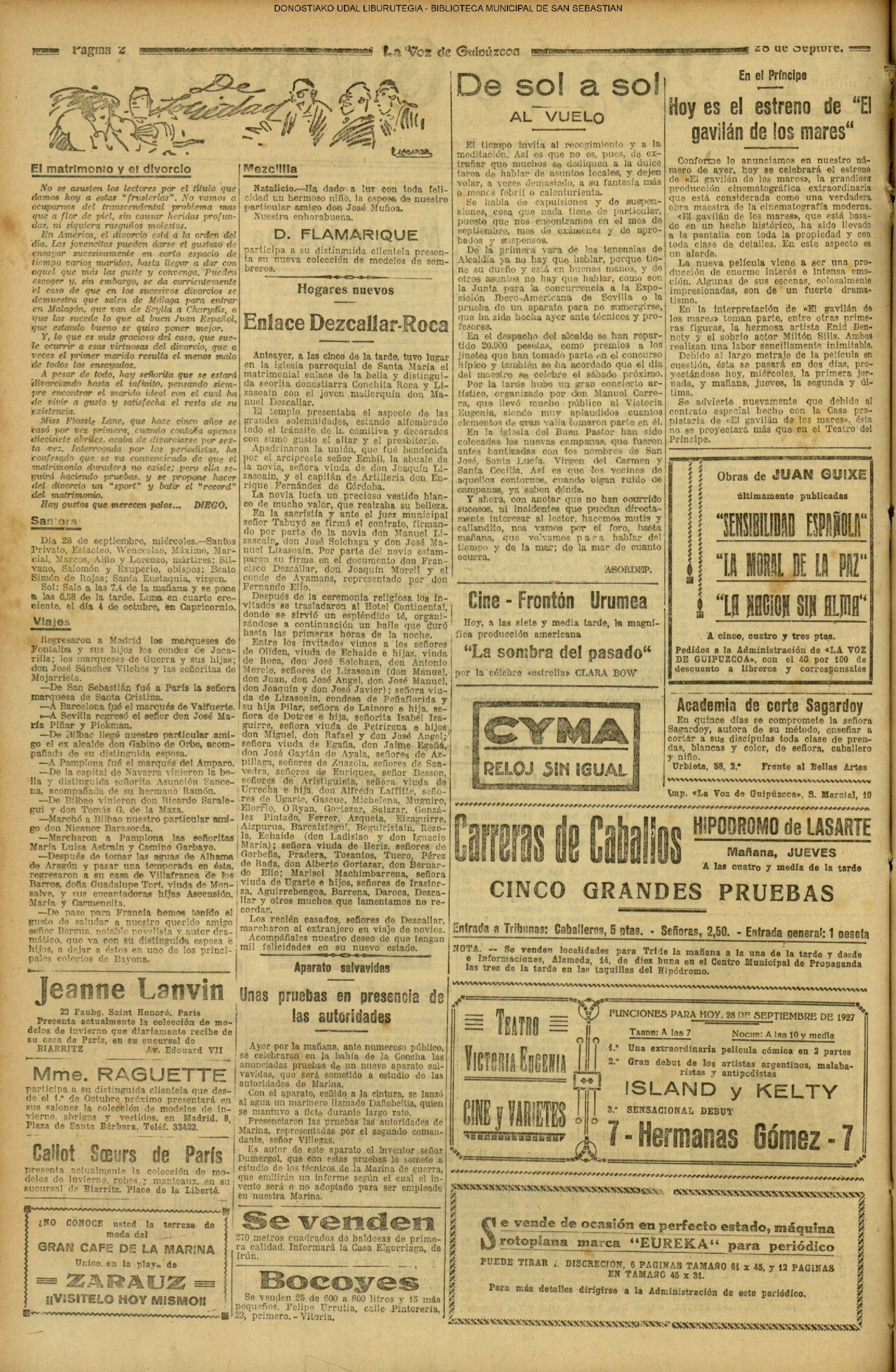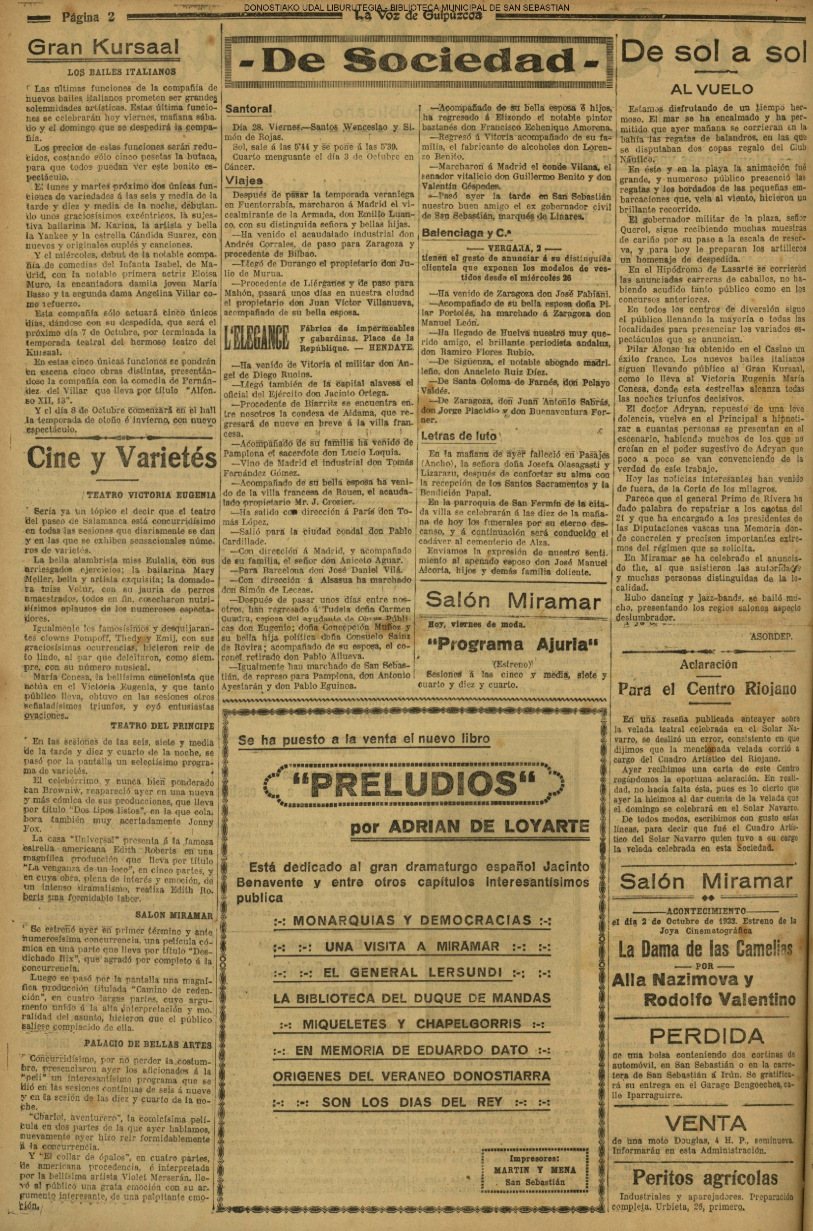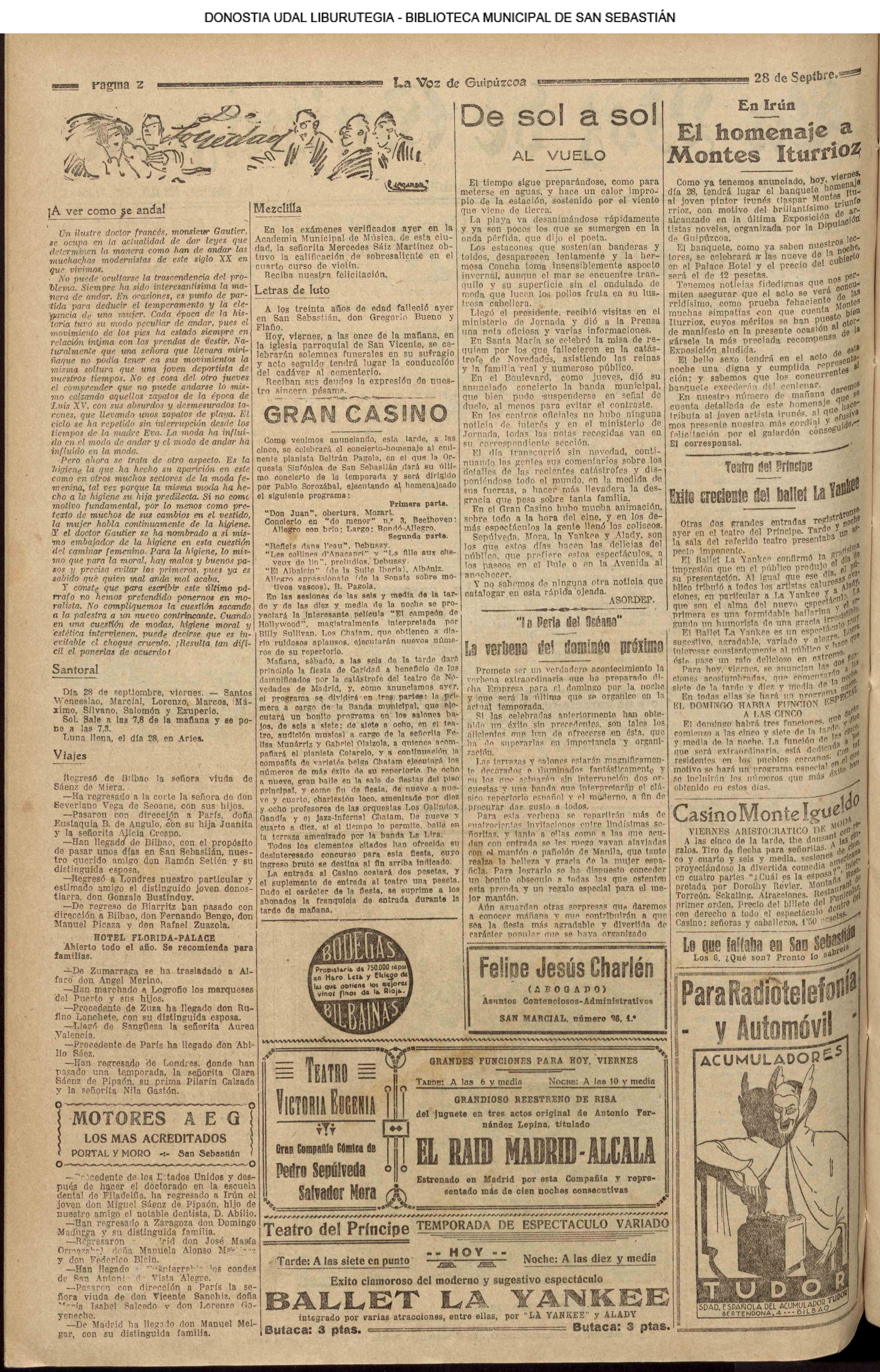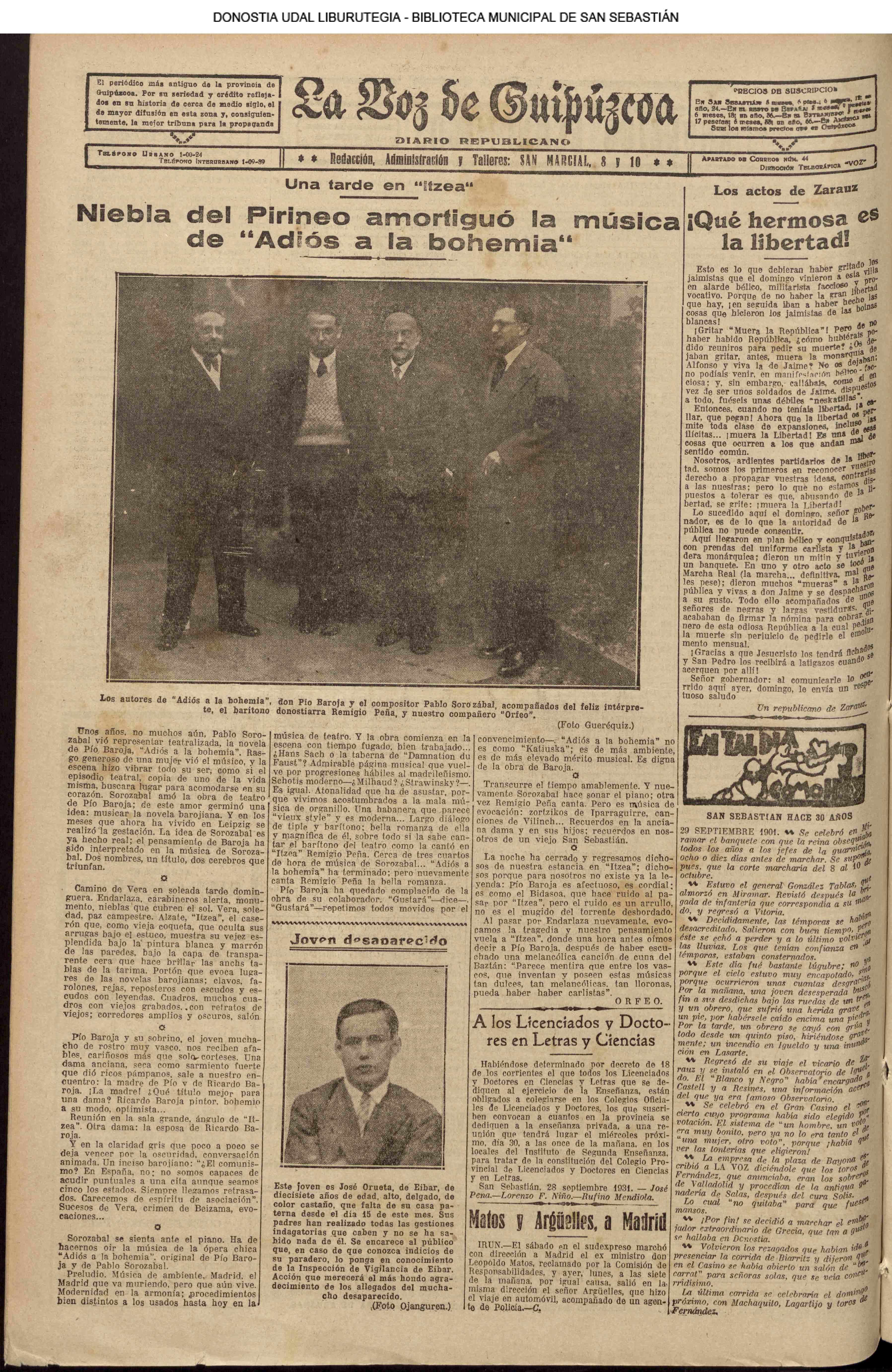 27 - septiembre![]() . | (1931) - LA VOZ DE GUIPUZCOA (CENTROS OFICIALES) (1931) FINALIZA LA SEMANA VASCA
