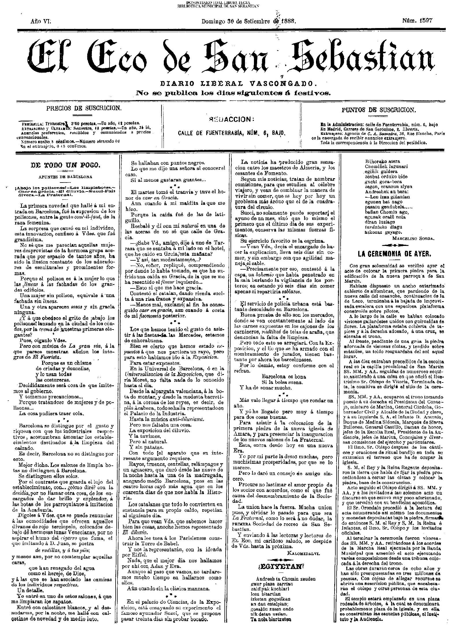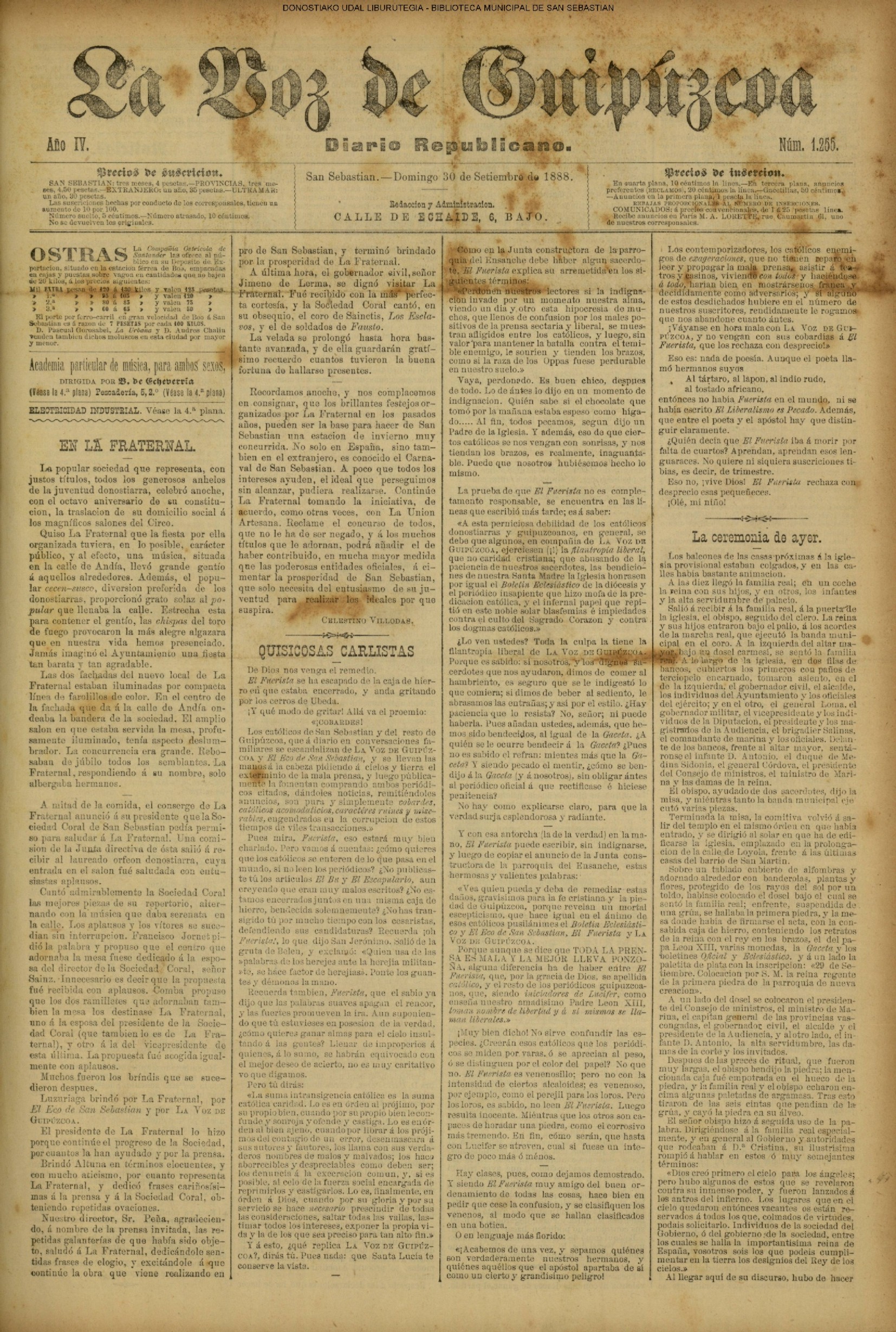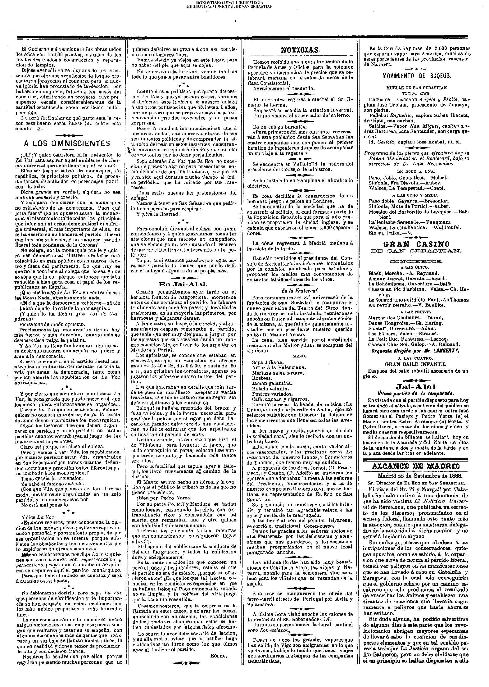 (La voz de Guipuzcoa)(El Pueblo Vasco)(El Día)(La Constancia)
