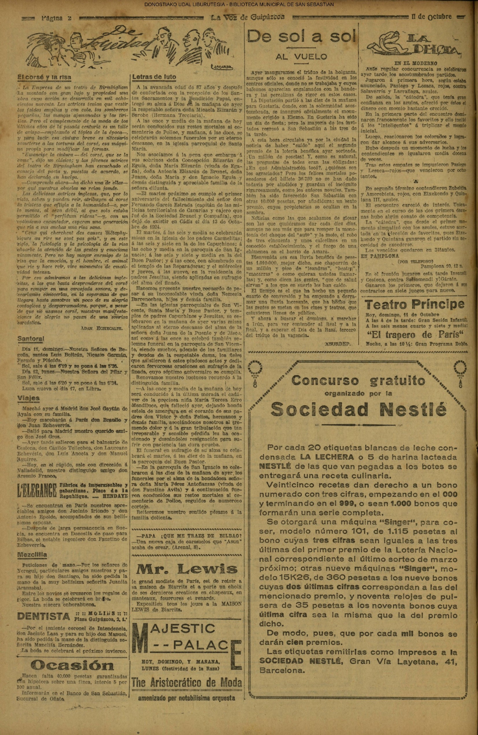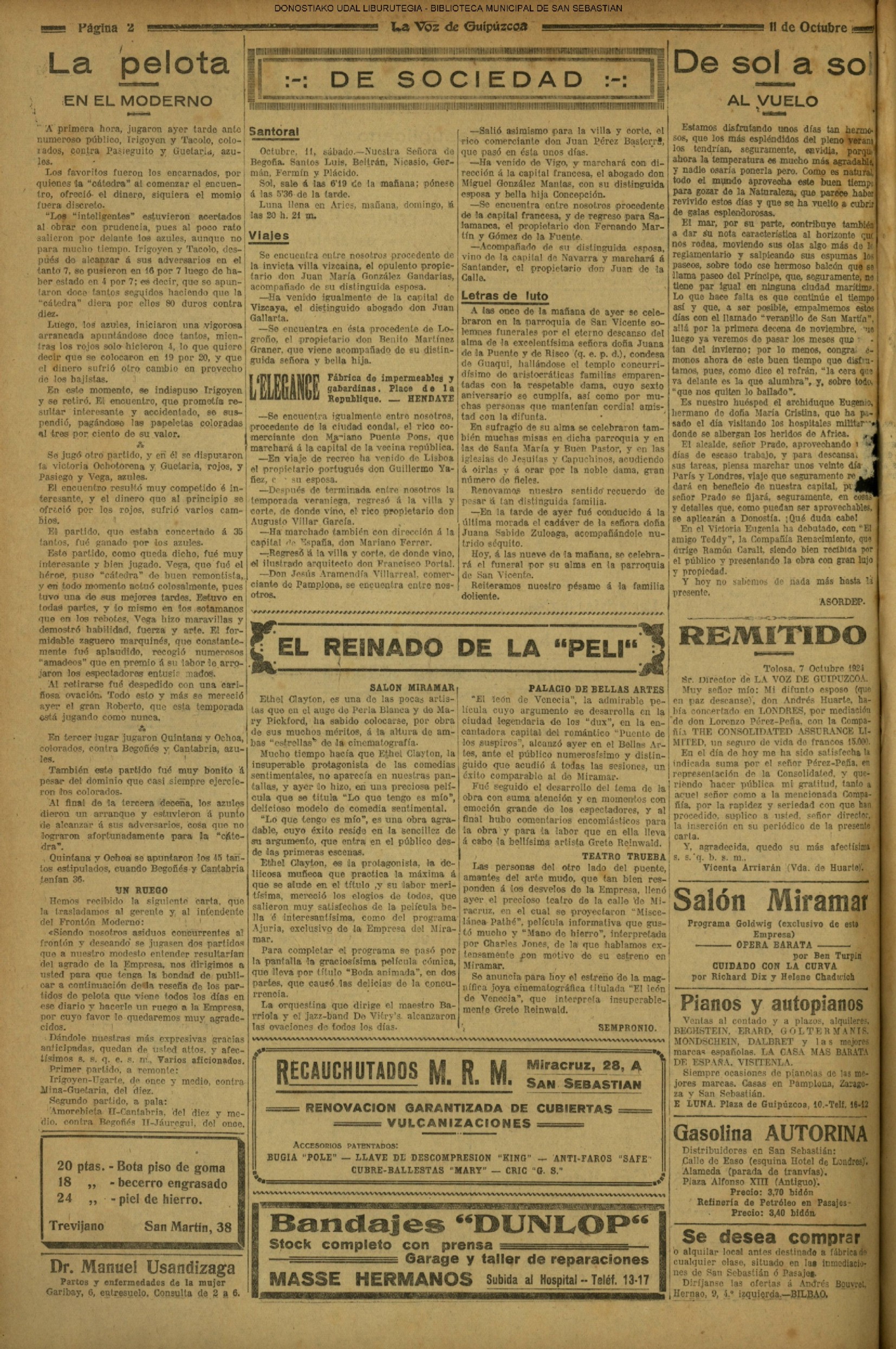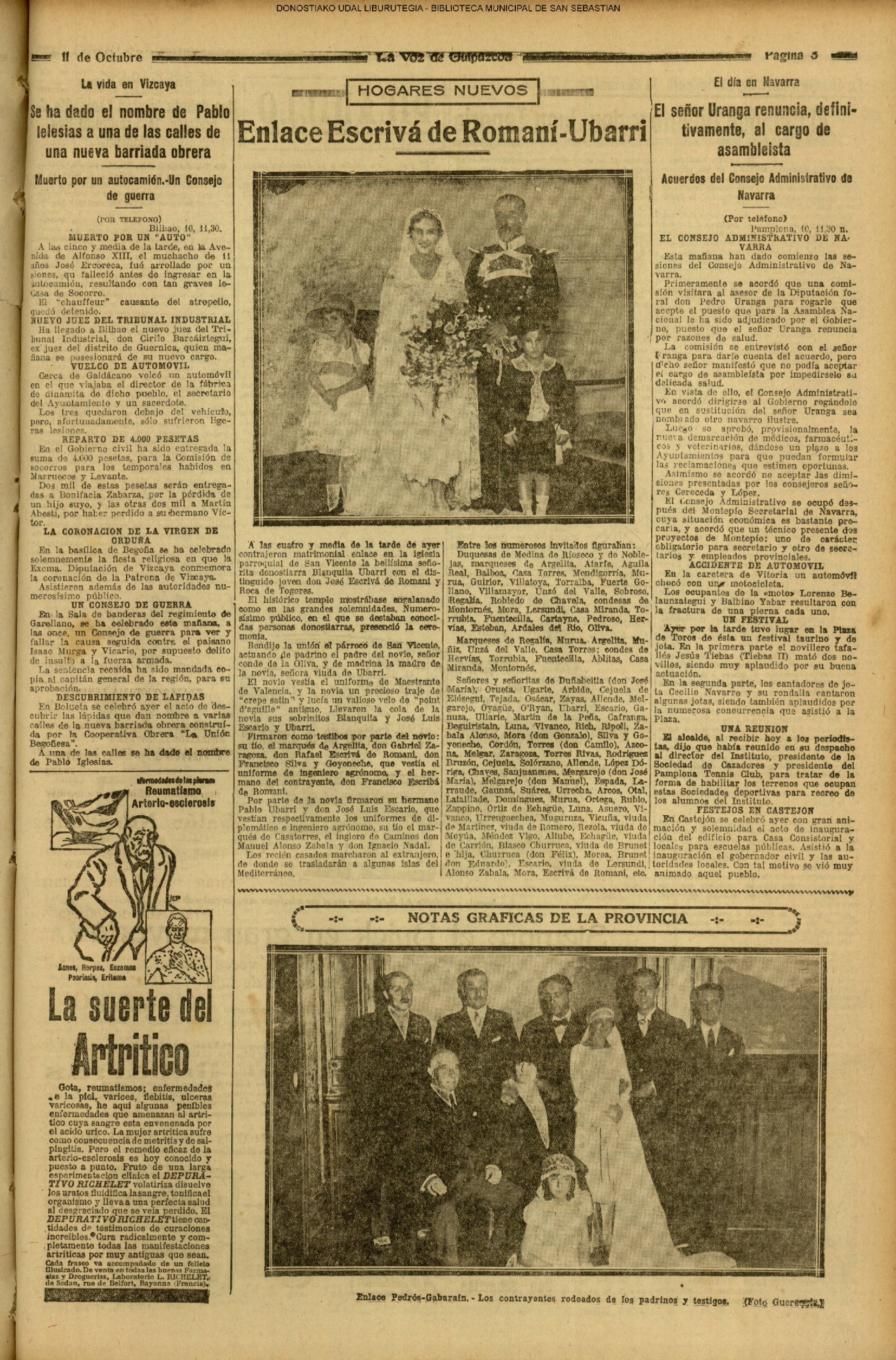 (1939) (EL DIARIO VASCO)(LA VOZ DE ESPAÑA) (UNIDAD) (1940) (EL DIARIO VASCO)(LA VOZ DE ESPAÑA) (UNIDAD) (1943) (1945) Fallece, de 57 años, D. Manuel Lartigue Larrañaga, ex concejal del Ayuntamiento donostiarra. (EL DIARIO VASCO)(LA VOZ DE ESPAÑA) (UNIDAD) (1948) (1950) (EL DIARIO VASCO)(LA VOZ DE ESPAÑA) (UNIDAD) (1954) (1957) Matrimonial enlace de don Pedro Oscar Canadell Lasheras, conocido locutor radiofónico, y Manolita Turrillas Iriondo. (Ayete). (LA VOZ DE ESPAÑA) (1960) (LA VOZ DE ESPAÑA) (1965) (1967) (1970) (LA VOZ DE ESPAÑA) (UNIDAD) (1971) |