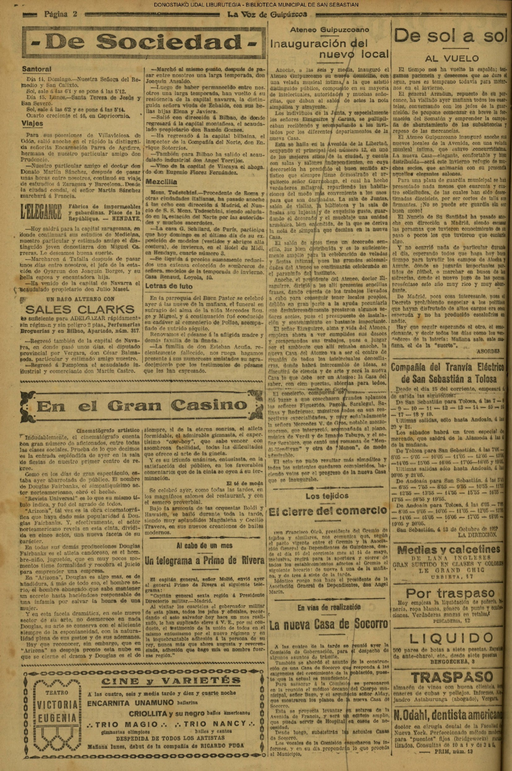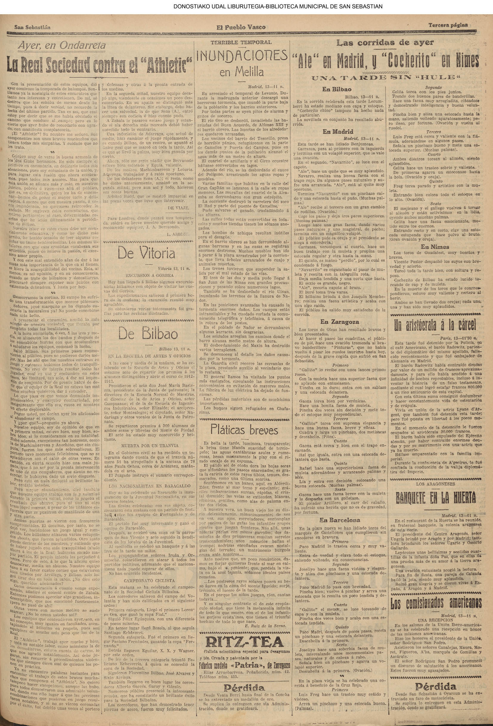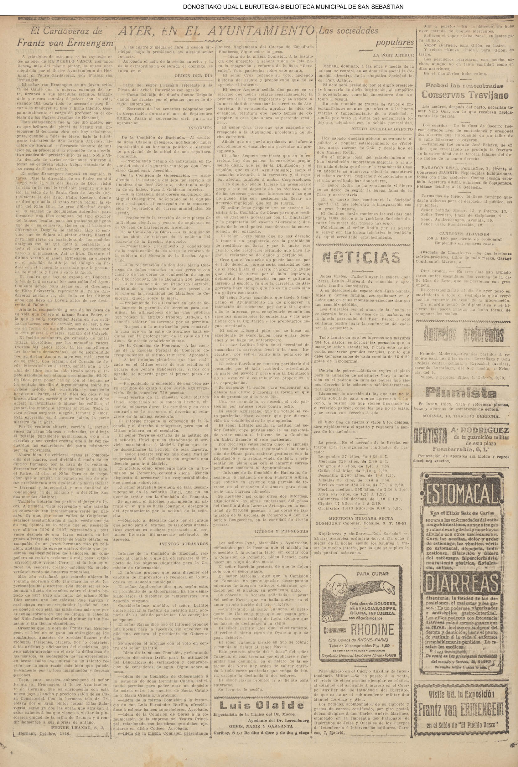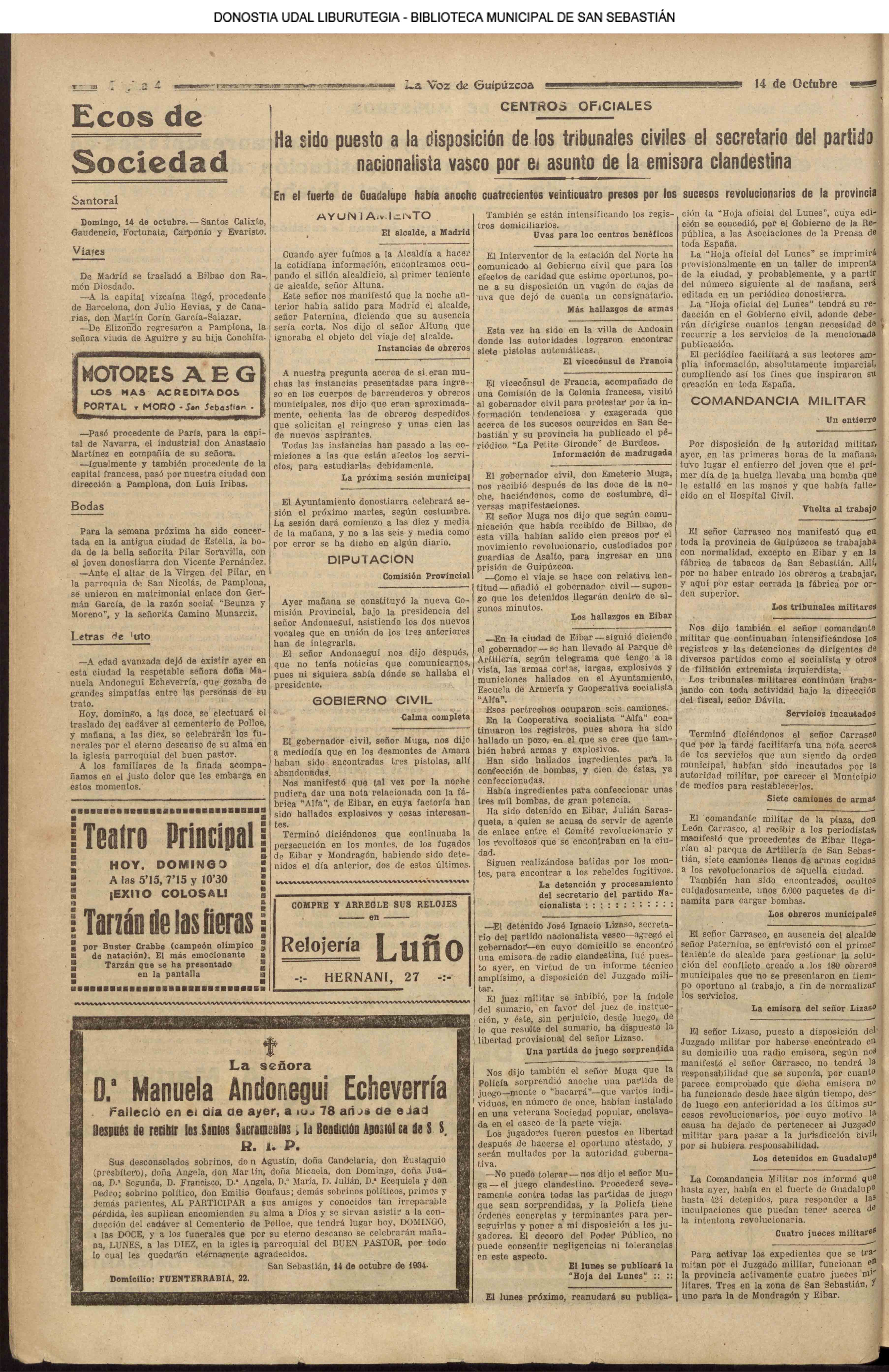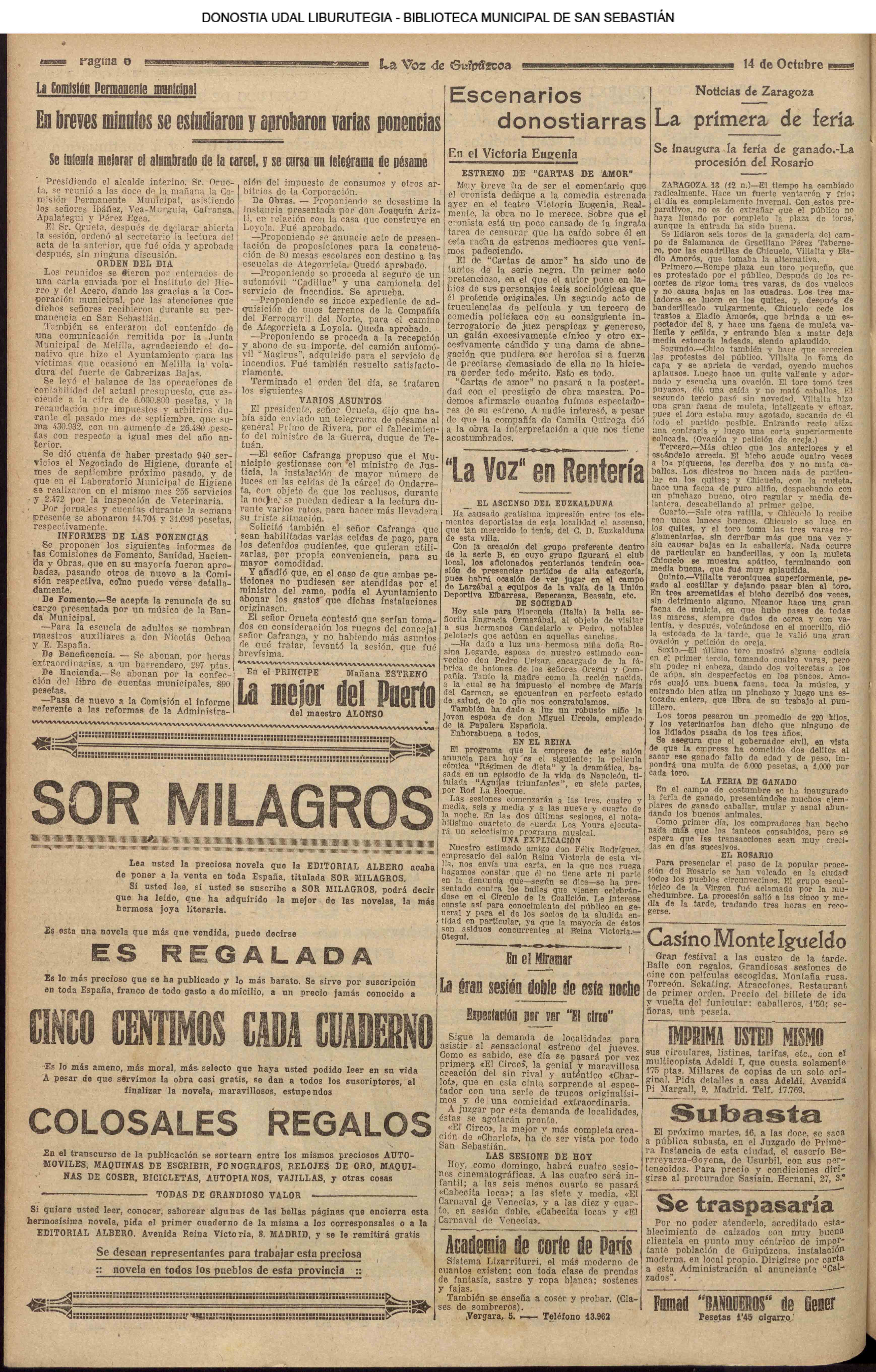 (1922) Fernando Cabezón, primer actor del »Cuadro Artístico Donostiarra» —que dirigía don Práxedes Diego Altuna— celebra, en el teatro del Príncipe y con «Papá Lebonard», una función de despedida ante sus paisanos, ya que, pensando dedicarse decididamente al arte de Talía como profesional, acababa de ser contratado por la Compañía de Gregorio Martínez Sierra. (La Voz de Guipuzcoa)(El Pueblo Vasco)(La Constancia) |