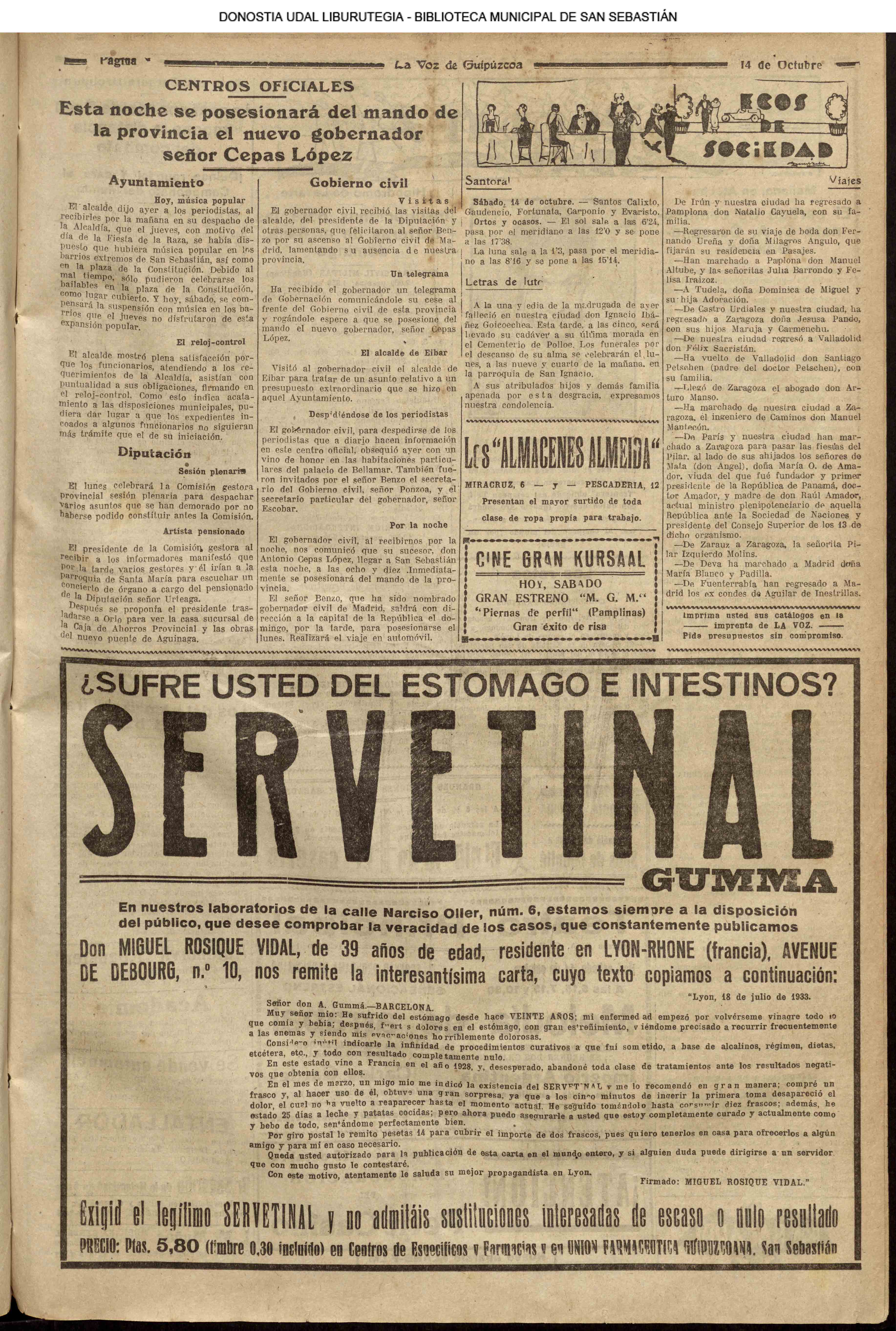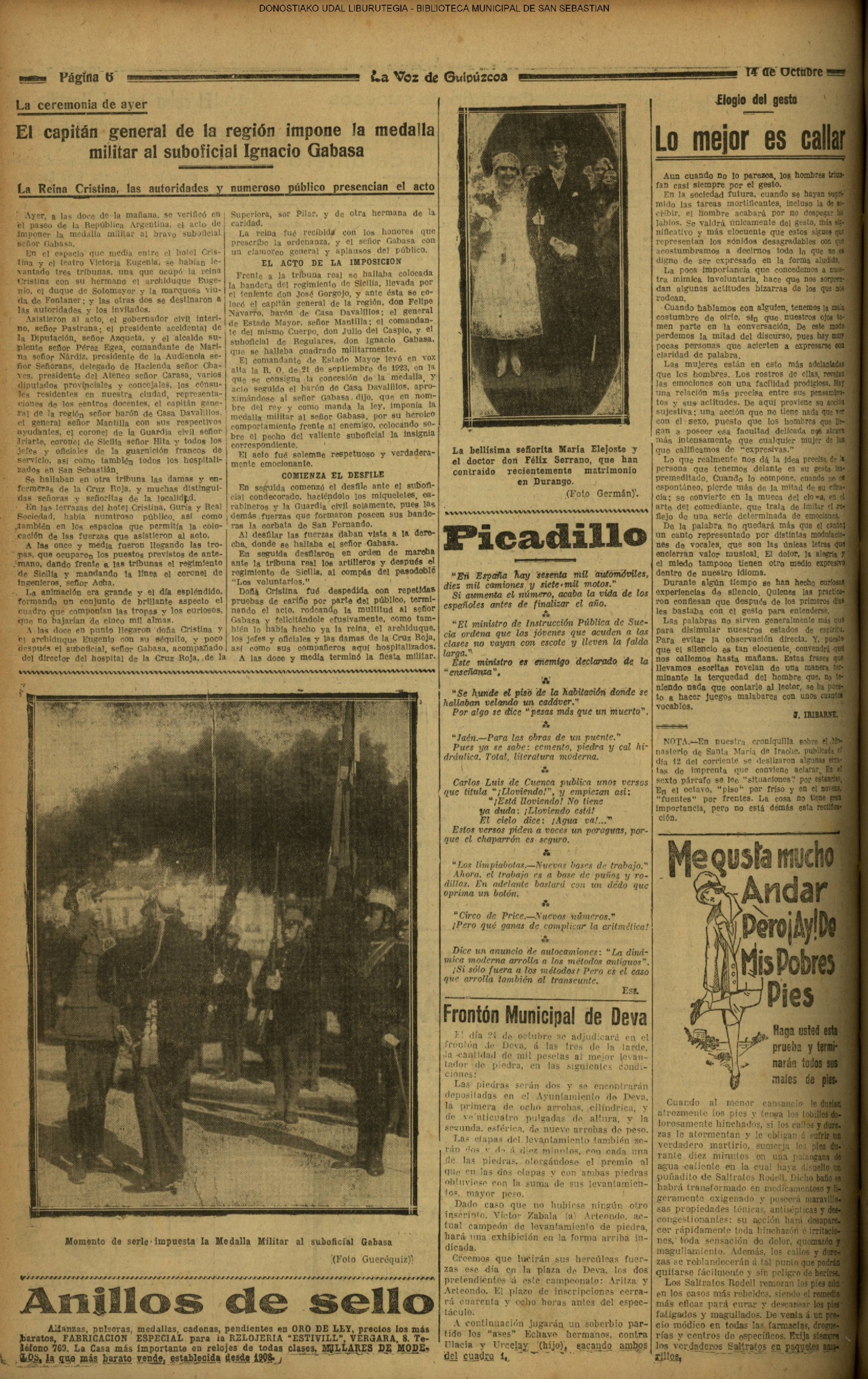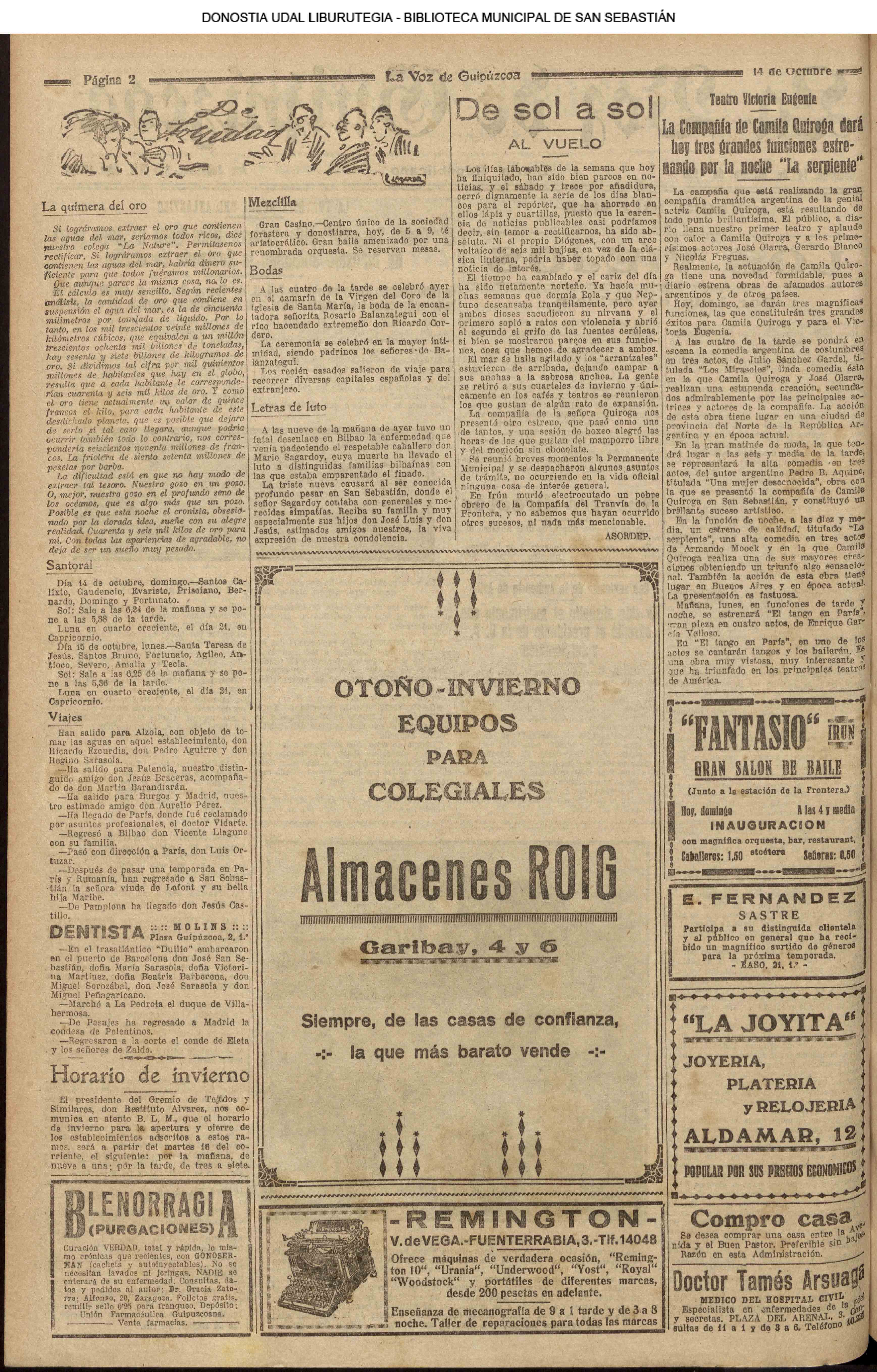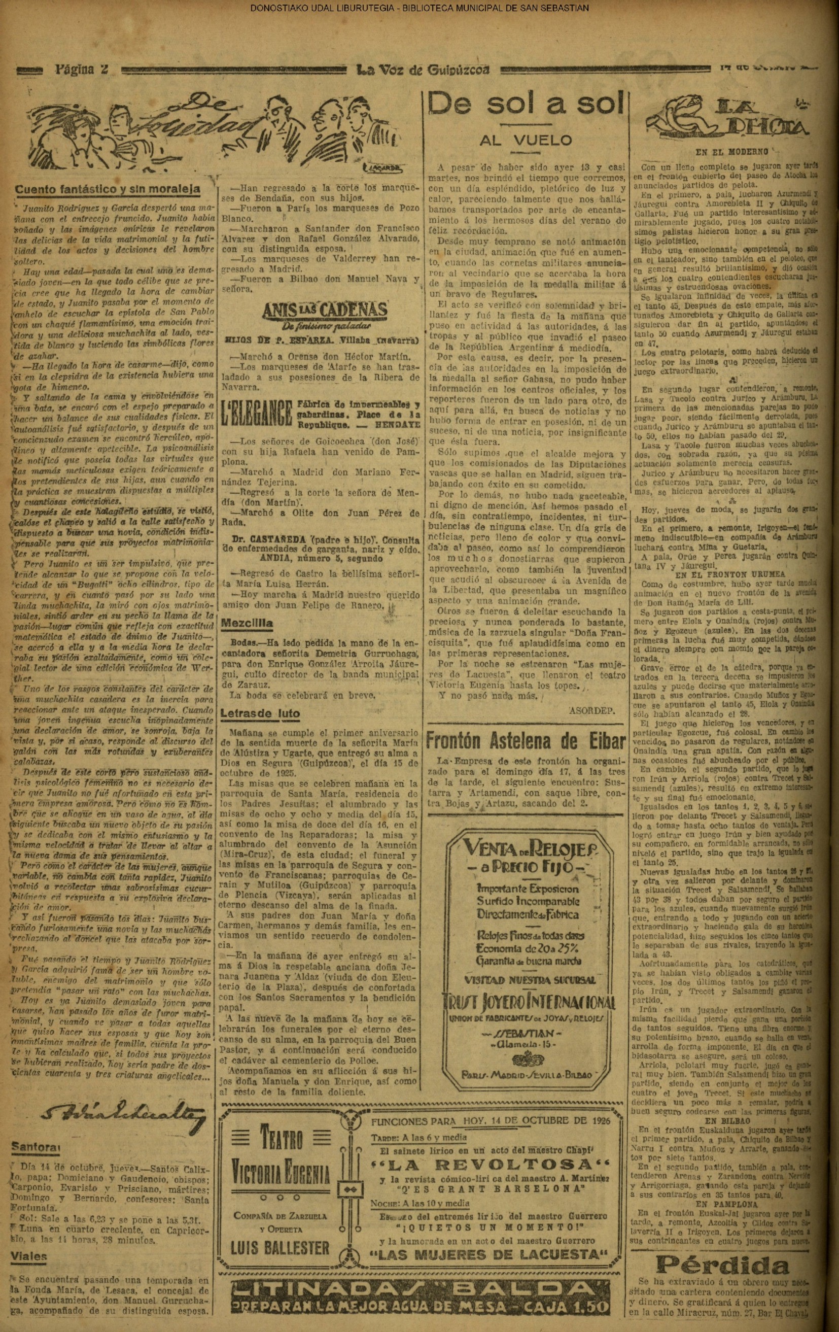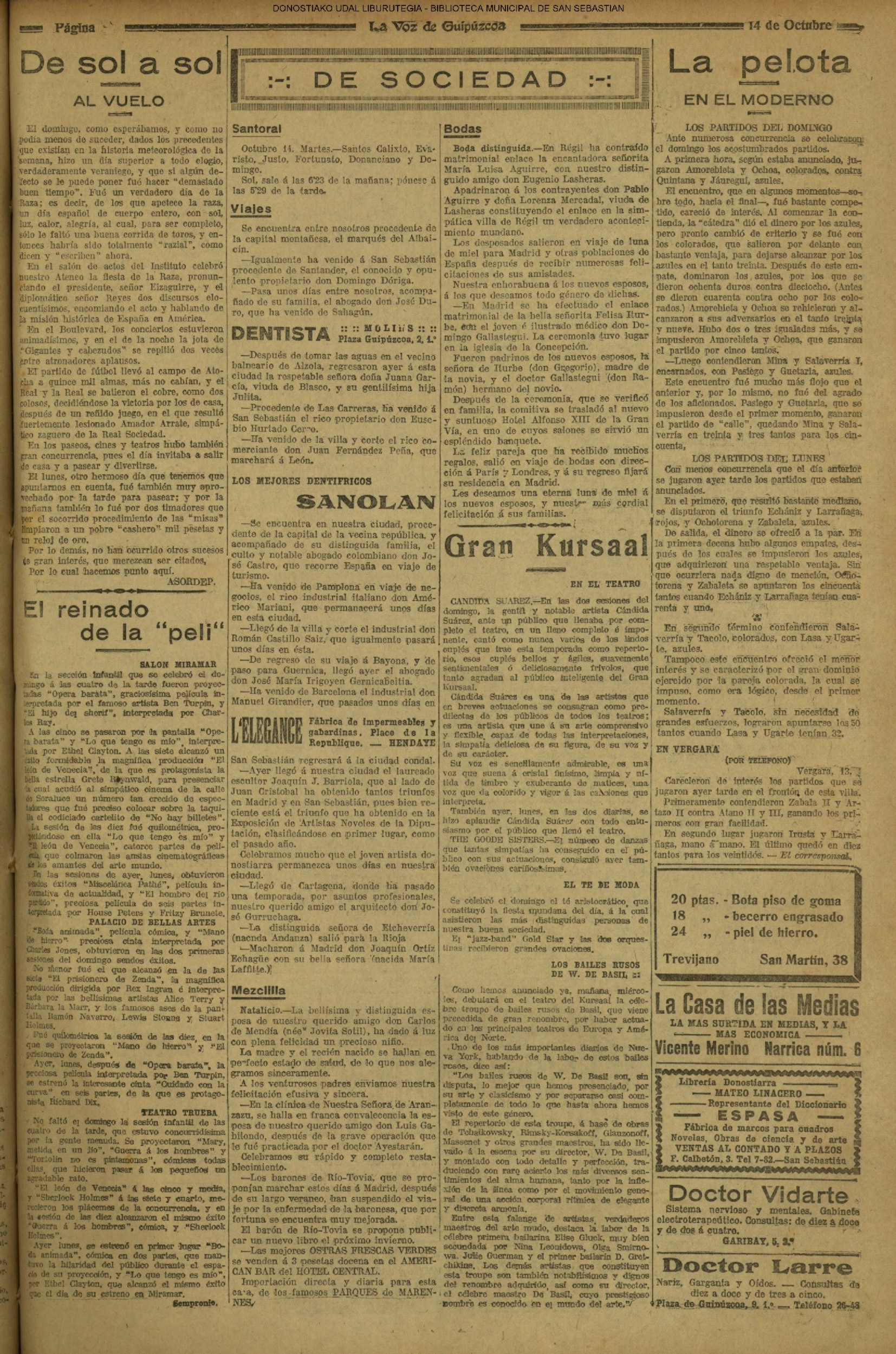 (1922) Fernando Cabezón, primer actor del »Cuadro Artístico Donostiarra» —que dirigía don Práxedes Diego Altuna— celebra, en el teatro del Príncipe y con «Papá Lebonard», una función de despedida ante sus paisanos, ya que, pensando dedicarse decididamente al arte de Talía como profesional, acababa de ser contratado por la Compañía de Gregorio Martínez Sierra. (La Voz de Guipuzcoa)(El Pueblo Vasco)(La Constancia) |