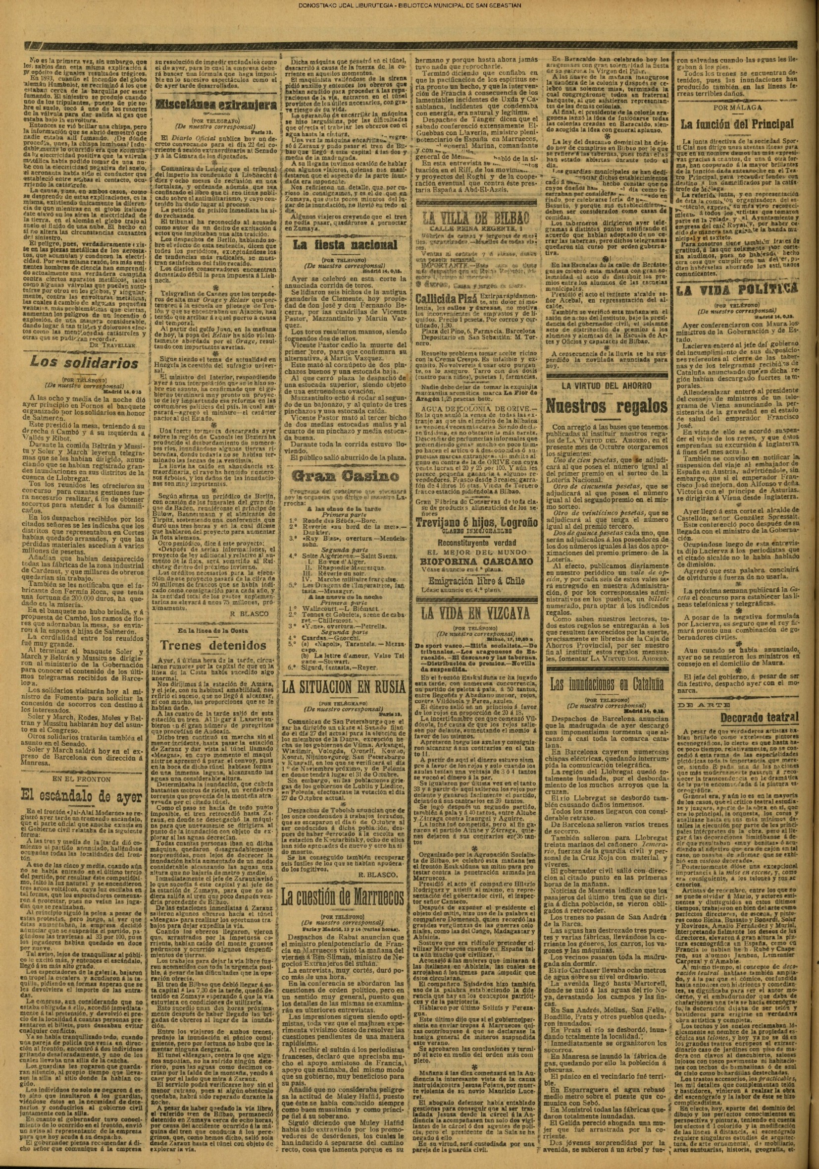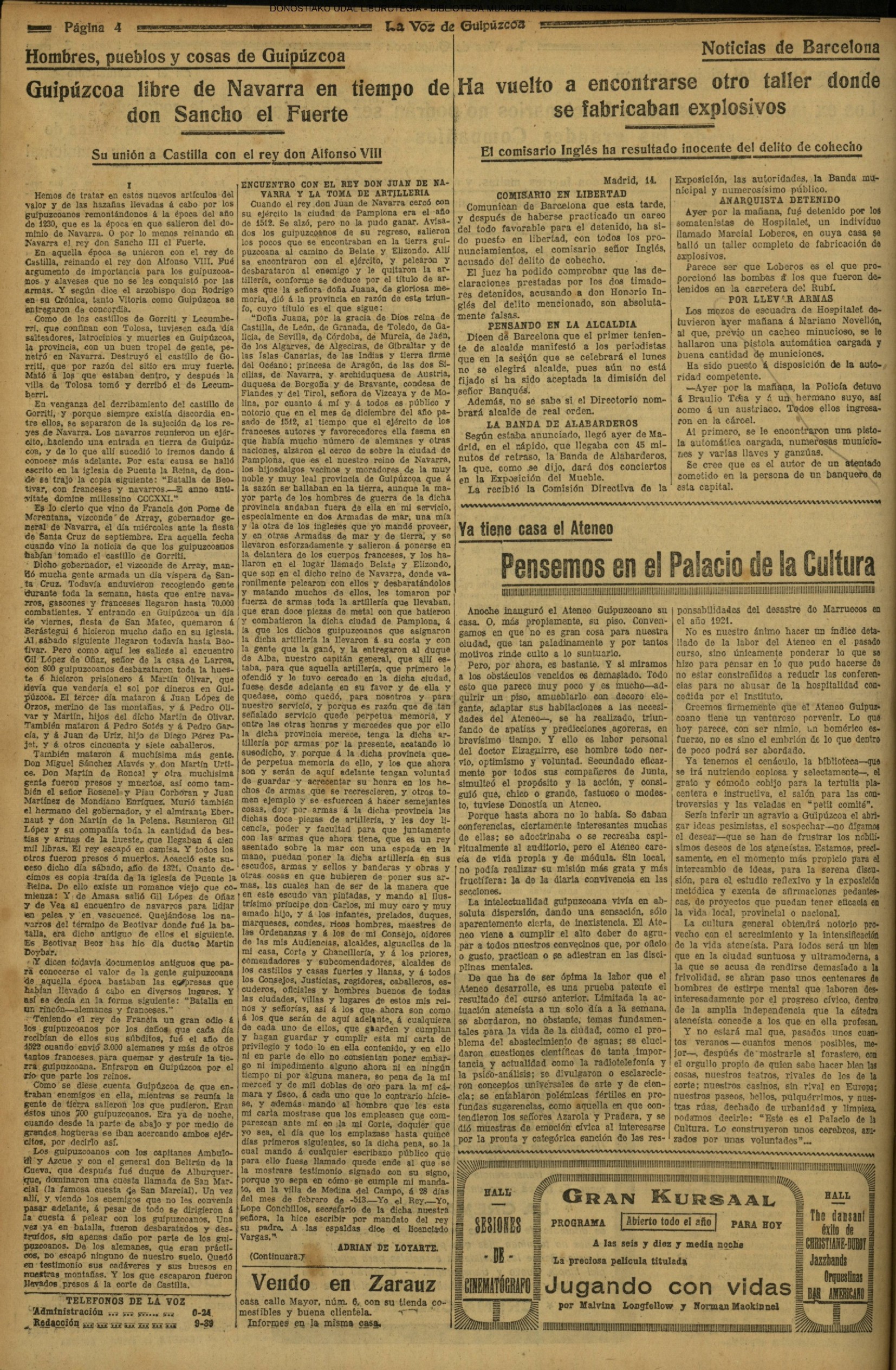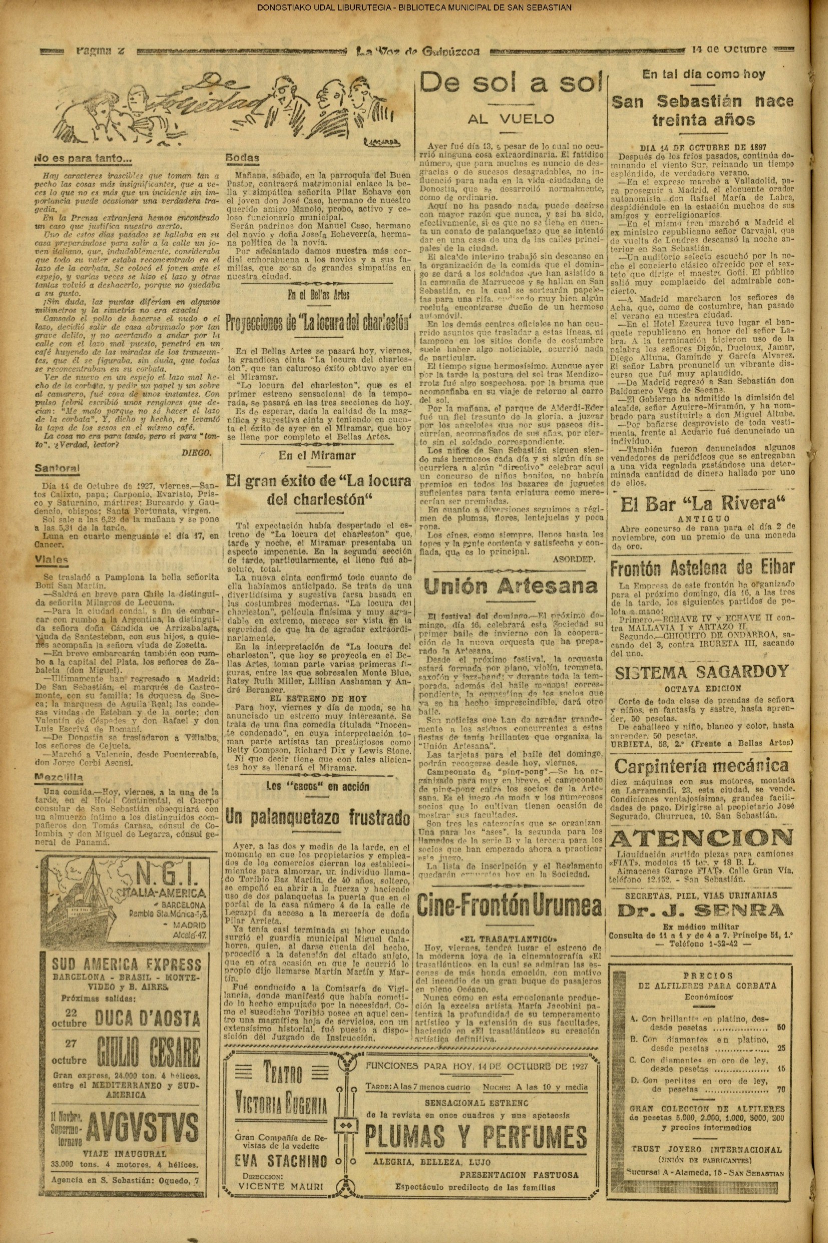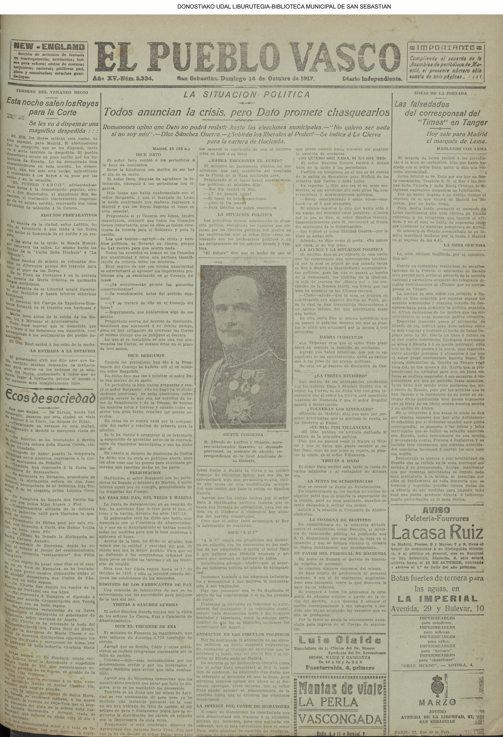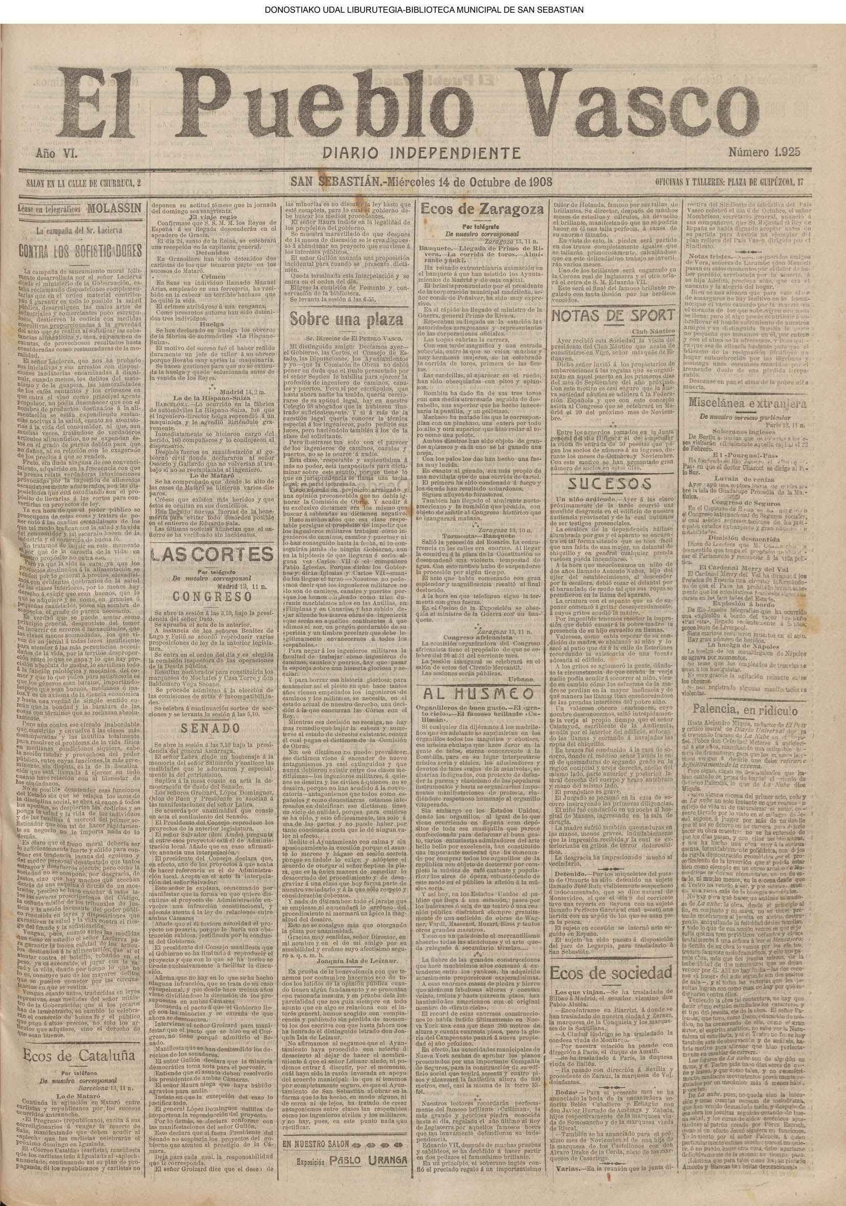 (1922) Fernando Cabezón, primer actor del »Cuadro Artístico Donostiarra» —que dirigía don Práxedes Diego Altuna— celebra, en el teatro del Príncipe y con «Papá Lebonard», una función de despedida ante sus paisanos, ya que, pensando dedicarse decididamente al arte de Talía como profesional, acababa de ser contratado por la Compañía de Gregorio Martínez Sierra. (La Voz de Guipuzcoa)(El Pueblo Vasco)(La Constancia) |