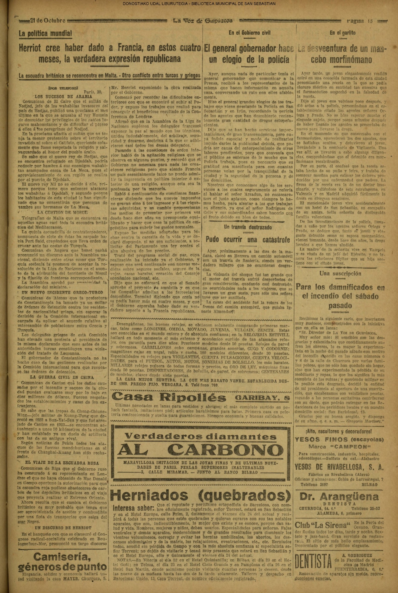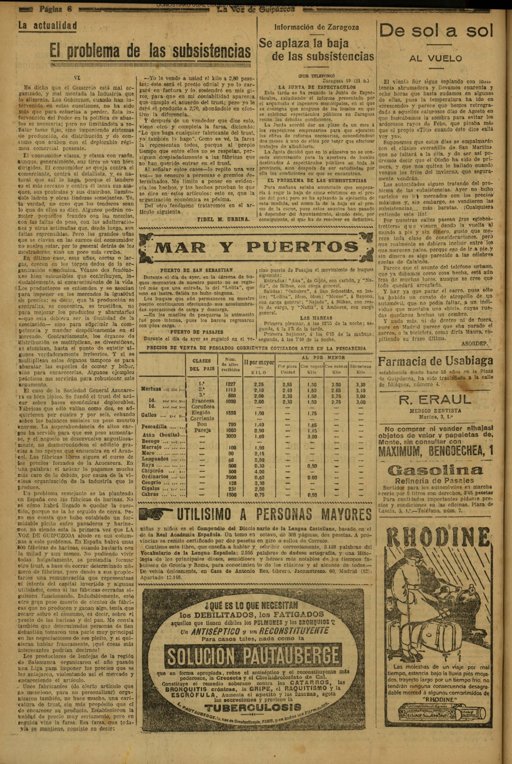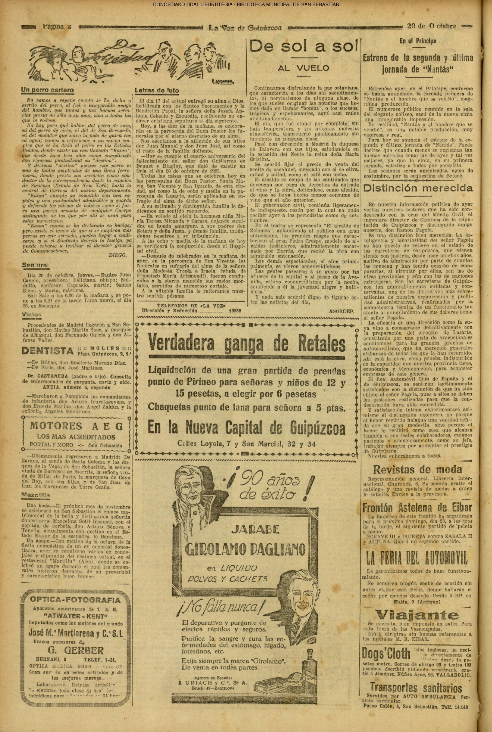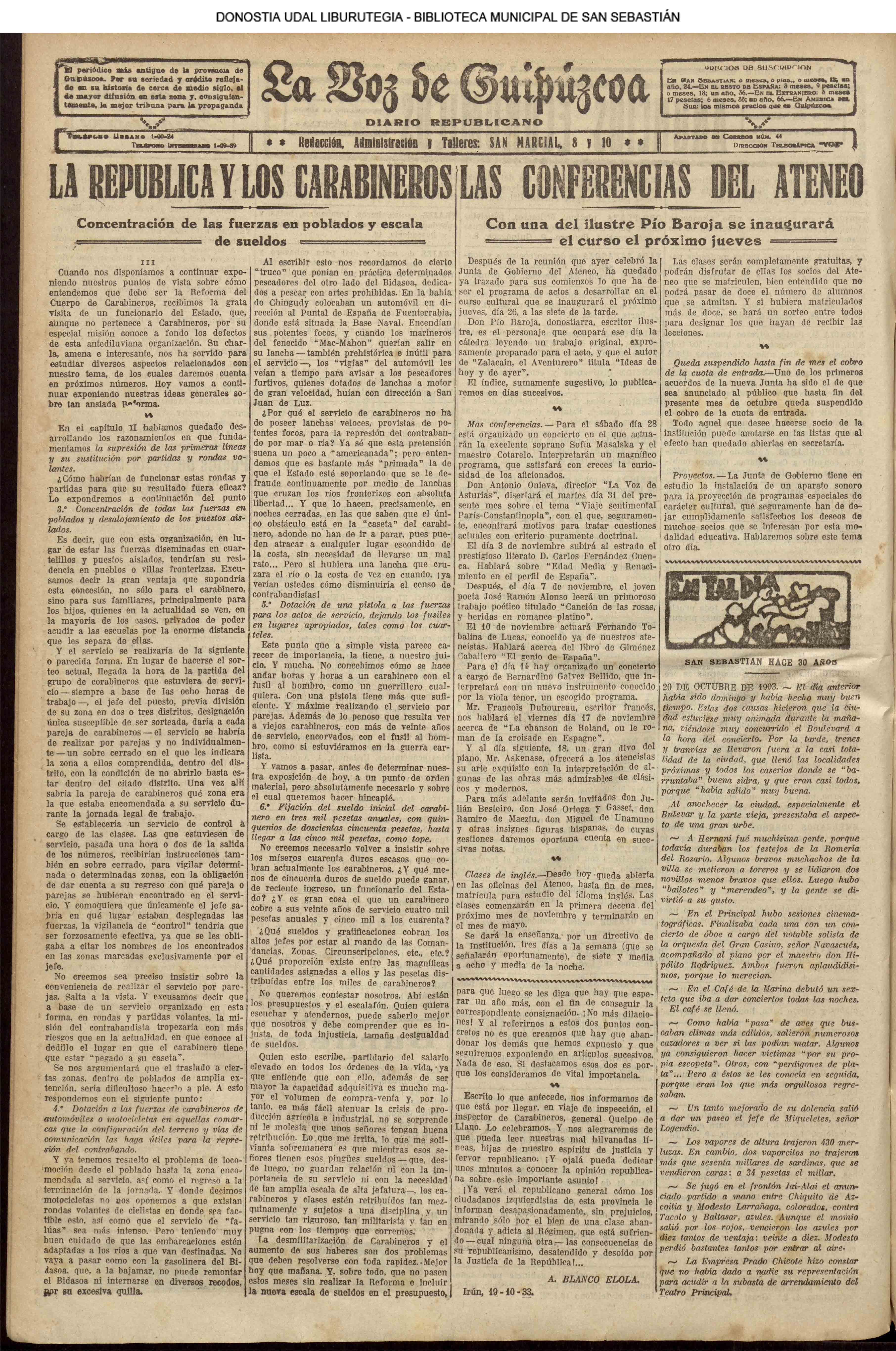 19- octubre![]() | # DIPUTACIÓN - Quedó constituída la nueva Gestora provincial Patriótico discurso del Gobernador Civil «que no quede en los organismos provinciales ningún germen de marxismo ni de nacionalismo; y que no vuelva a oirse la repugnante palabra de "askatuta" # DECRETOS. Sobre los pisos y locales abandonados ++++++++++++++++++++++++++++++++++++++++++ (1937)GUERRA CIVIL# EN LA IGLESIA DE SANTA MARIА - Honras fúnebres por el capitán