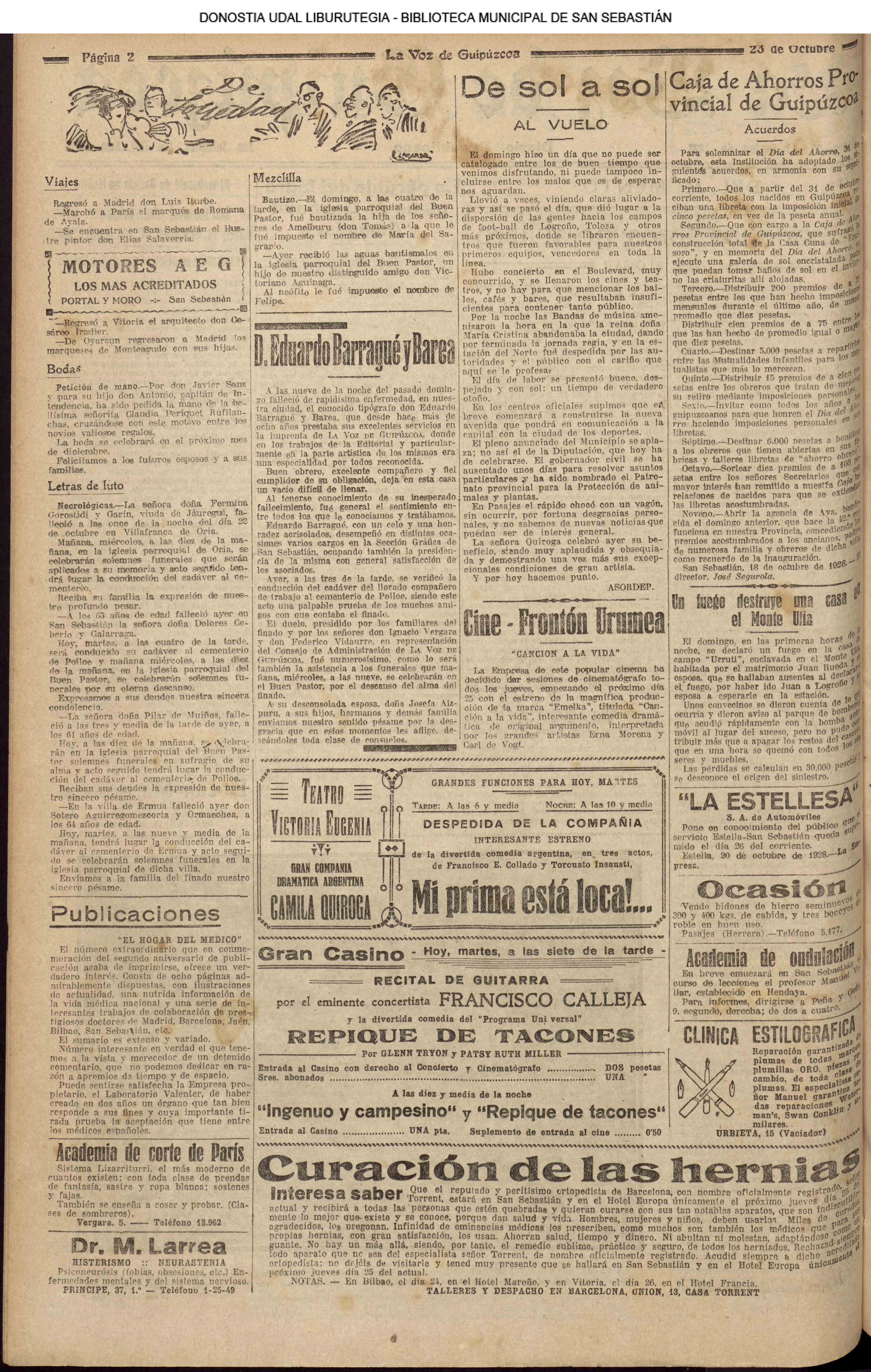 (La Voz de Guipuzcoa)(El Pueblo Vasco)(El Pais Vasco)(La Constancia) |