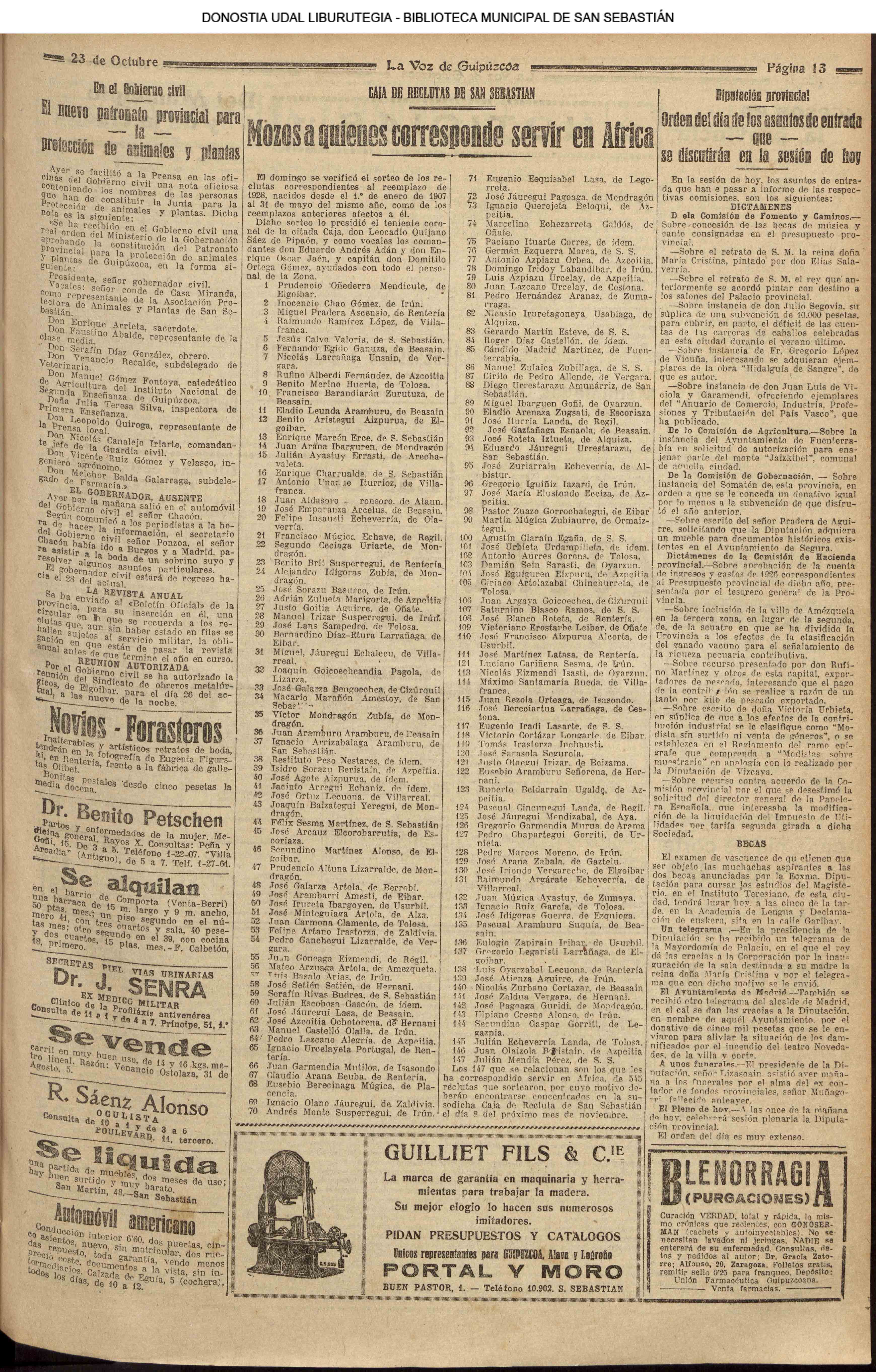 # CAJA DE RECLUTAS DE SAN SEBASTIAN - Mozos a quienes corresponde servir en África (La Voz de Guipuzcoa)(El Pueblo Vasco)(El Pais Vasco)(La Constancia) # FOOTBALL - CLUB DEPORTIVO DE LOGROÑO (2-4) REAL SOCIEDAD - La Real Sociedad obtiene una victoria sobre el Club Deportivo de Logroño por cuatro goals a dos @ - (La Voz de Guipúzcoa)(El Pueblo Vasco)(El Pais Vasco)(La Constancia)