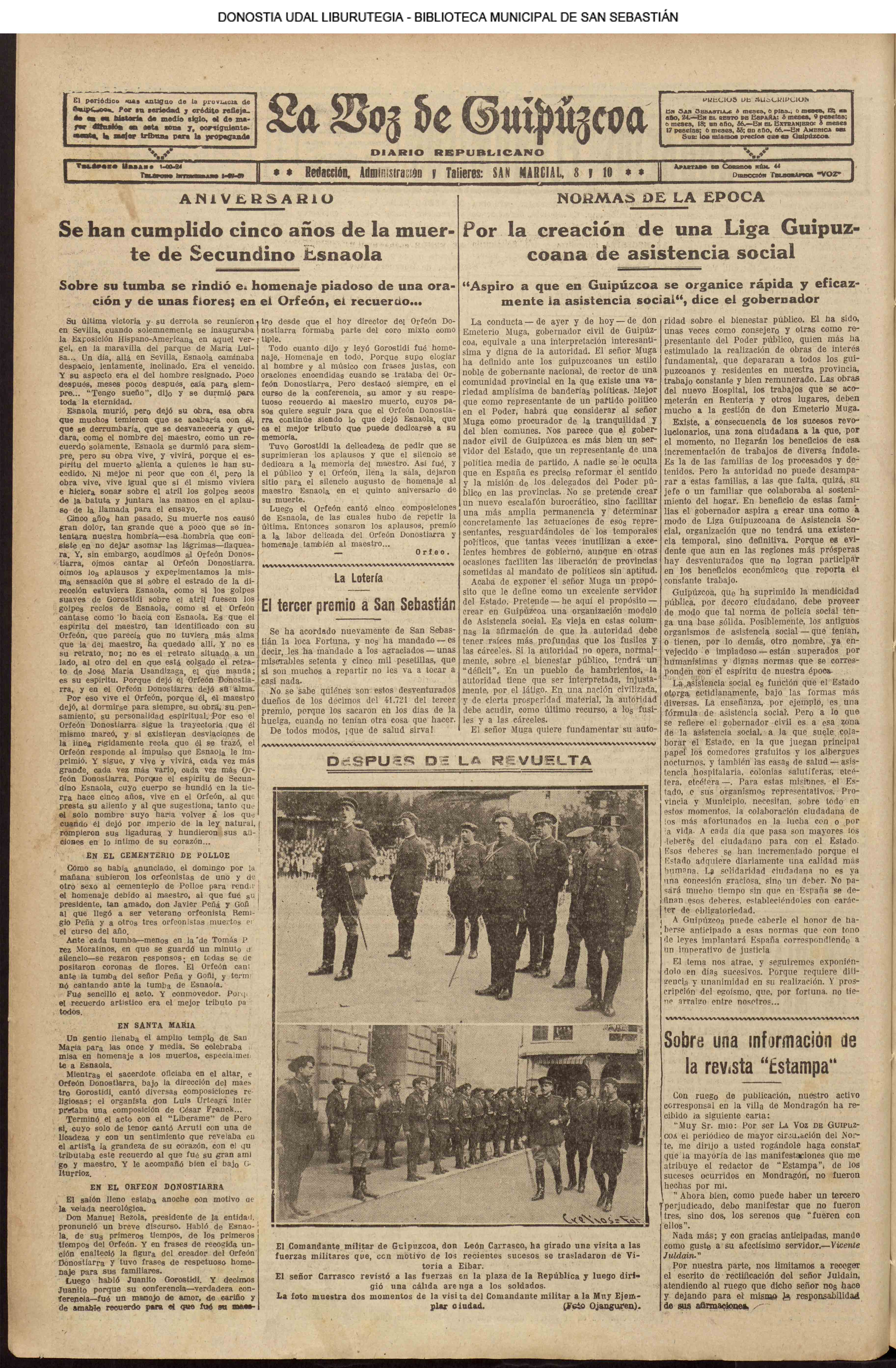 (1929) Fallece el director del Orfeón Donostiarra, Don Secundino Esnaola.(La Voz de Guipúzcoa./cont.)(El País Vasco)(La Constancia) |