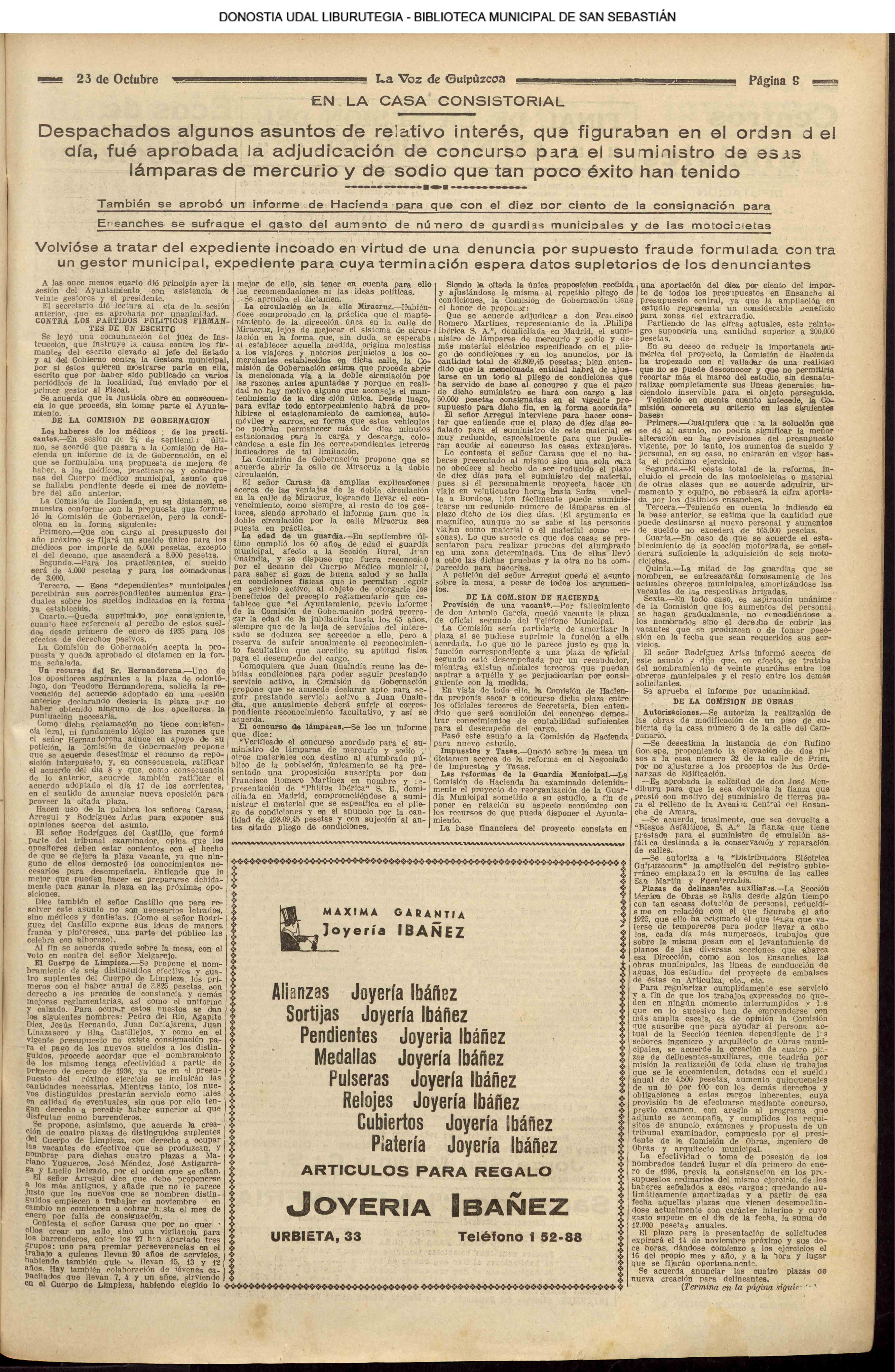 (1924) La Permanente municipal aprueba los presupuestos para 1925, que se elevan a pesetas 9.141 391; superando en 188 922 a los de 1.924.