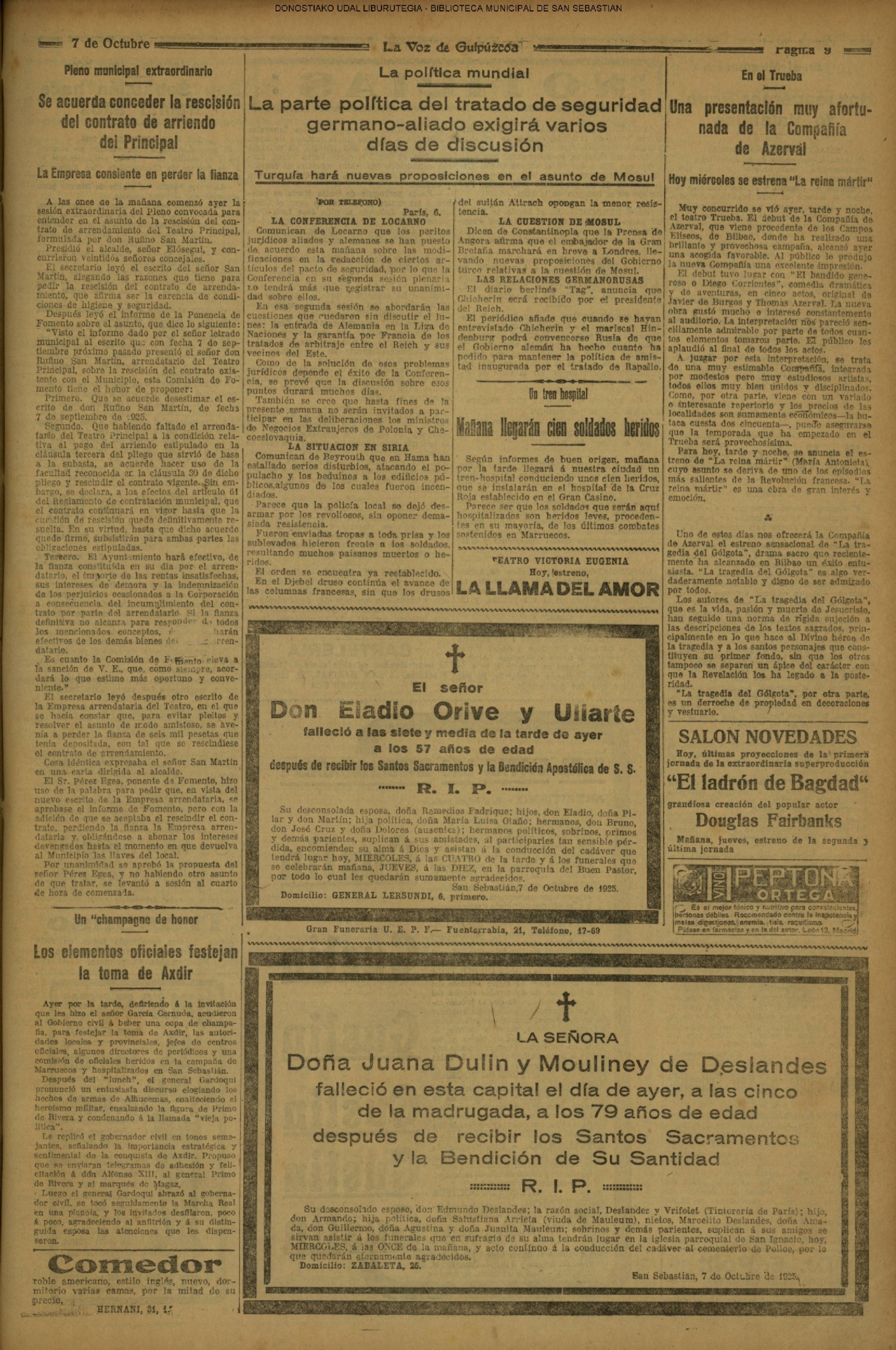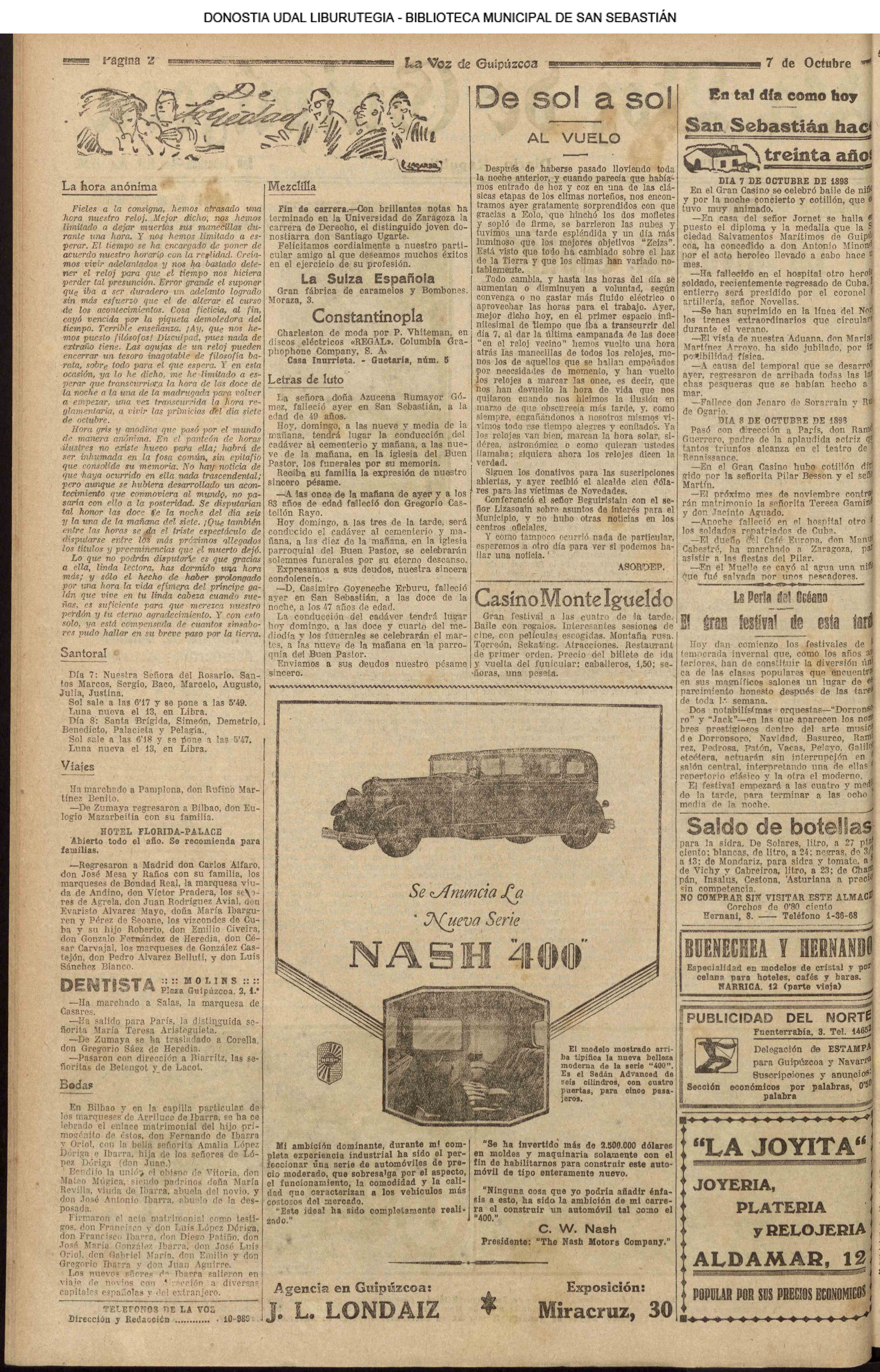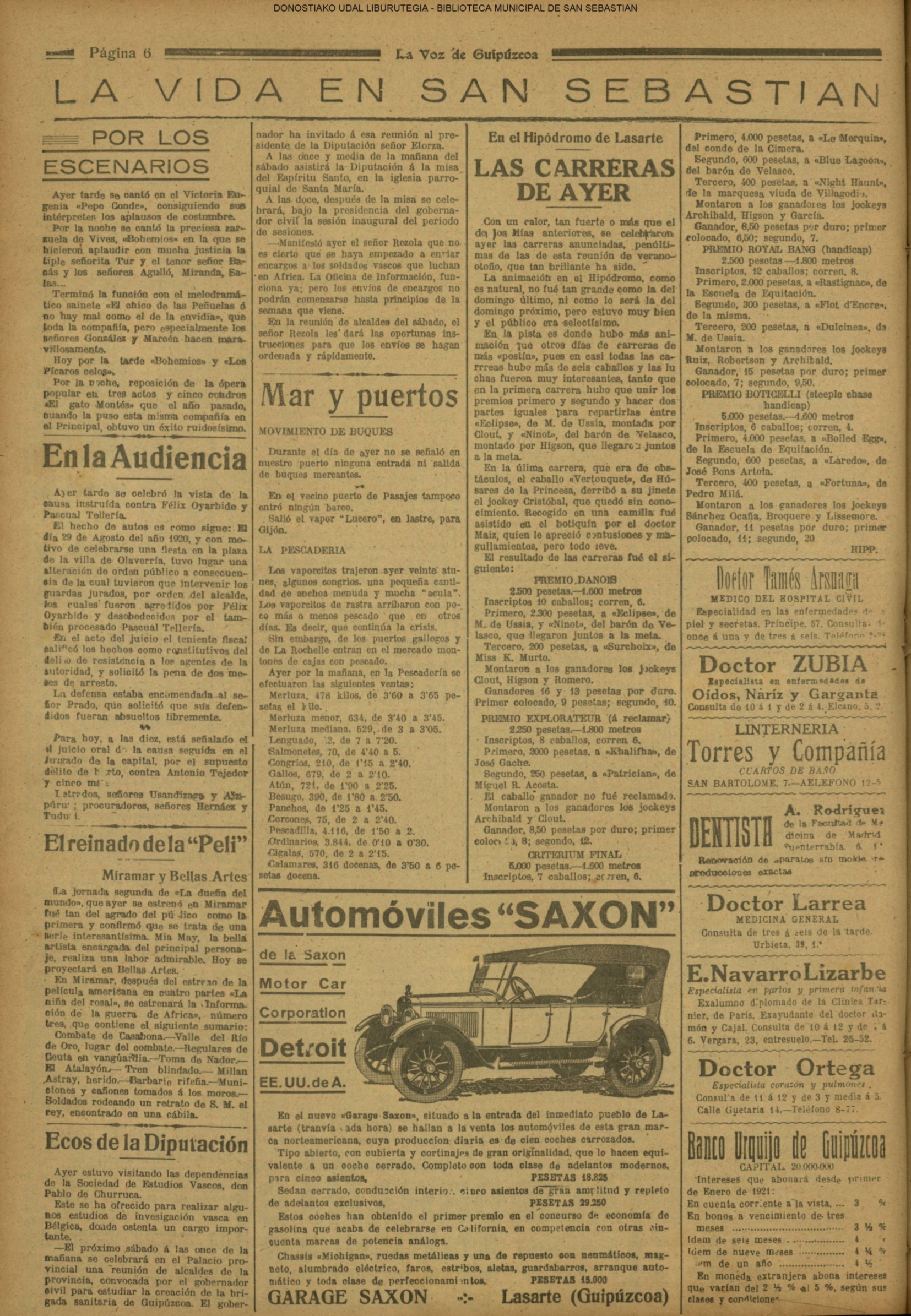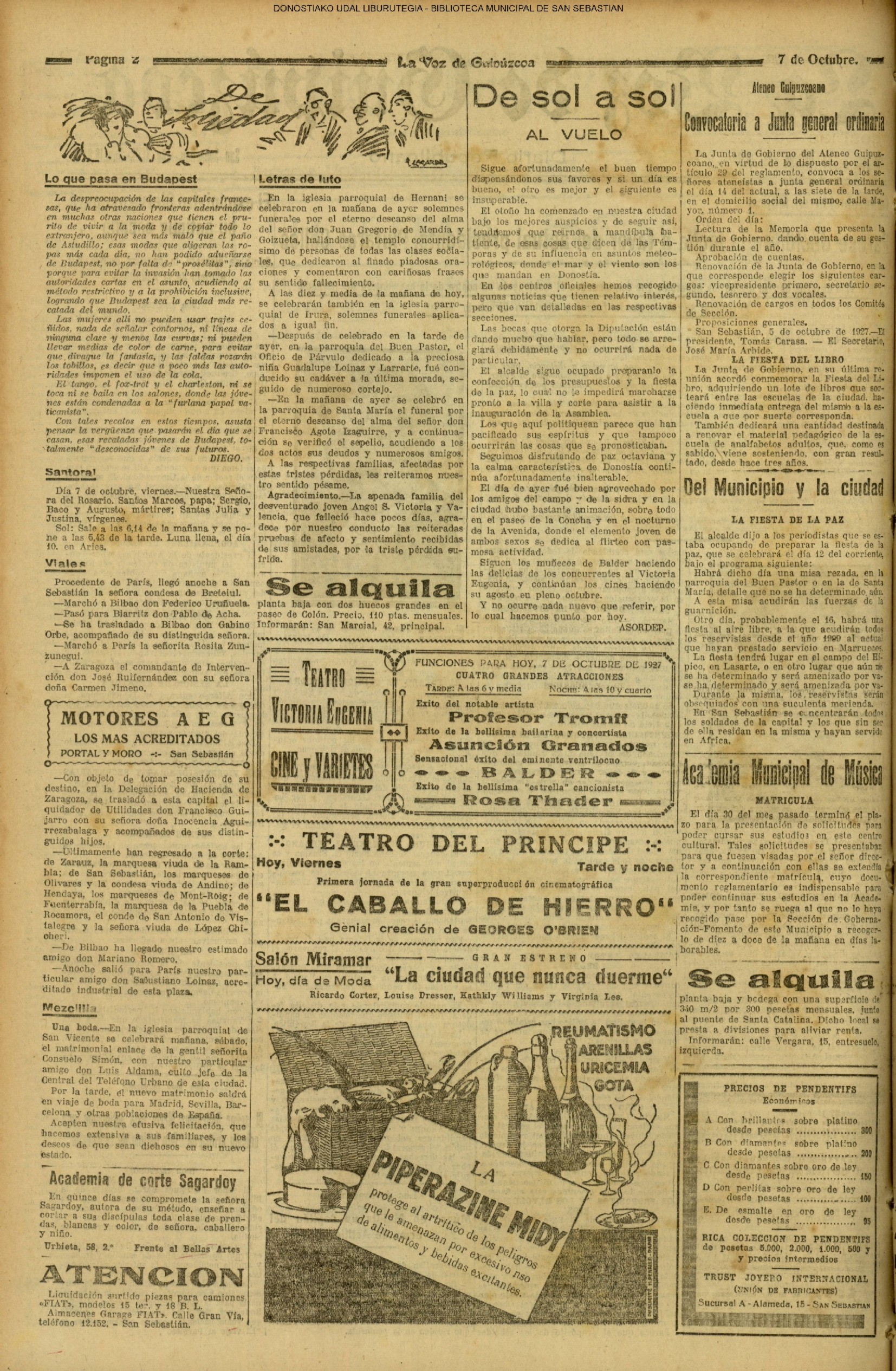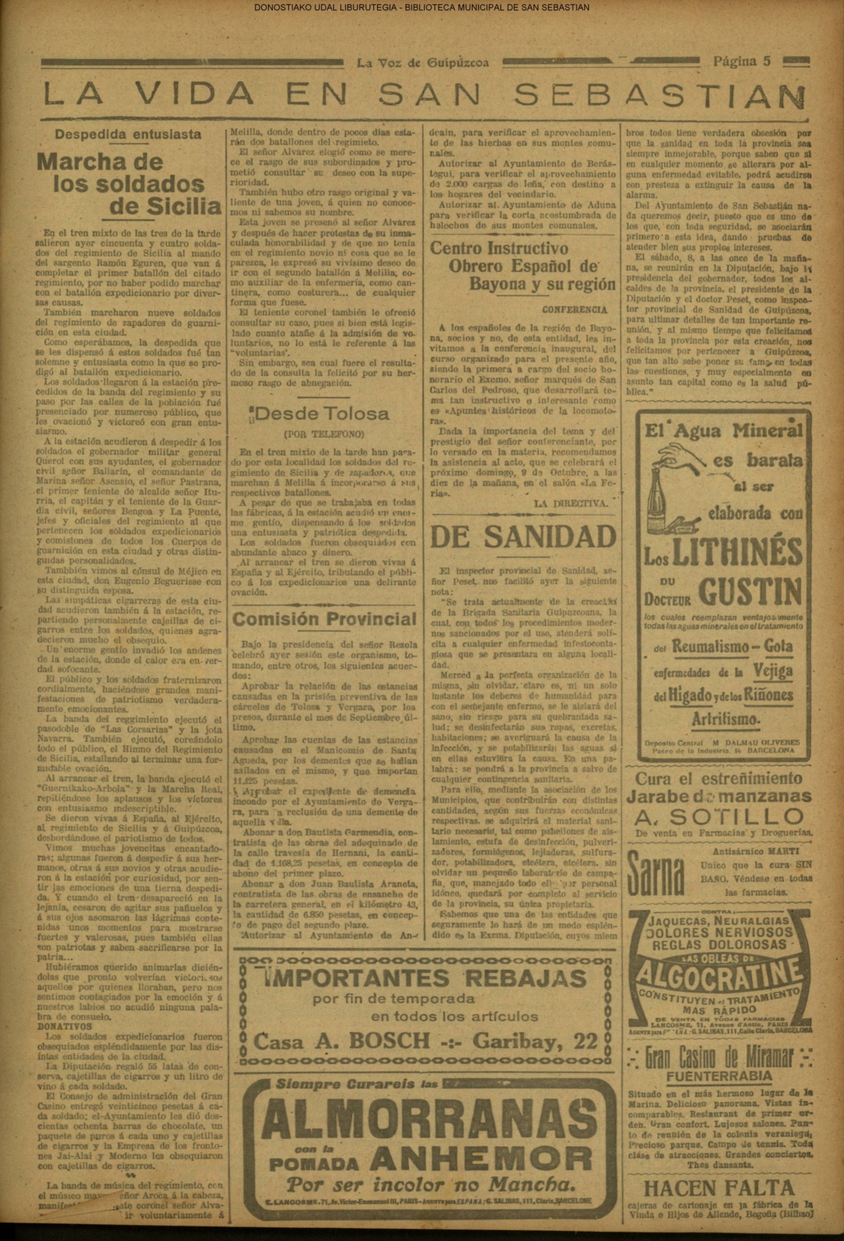 (1890) Esta noche, el capataz de bomberos e industrial cerrajero de esta Ciudad, D. Ramón Iturzaeta, trata de salvar, con exposición de la suya, la vida de un hombre que flotaba sobre la corriente, cerca del puente de Santa Catalina; Ignacio Usandizaga, de 32 años, natural de Asteasu. Era algo corto de vista y se caería seguramente. (La Voz de Guipúzcoa / cont.))