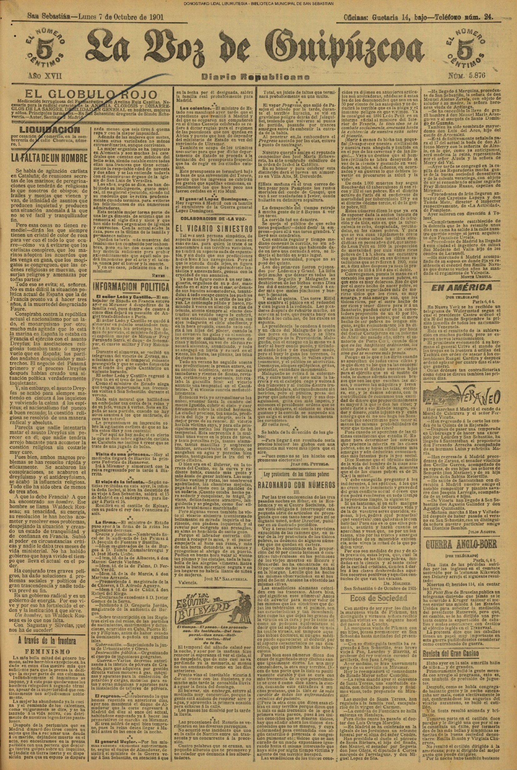 (1886) En la sesión municipal es leída una carta del eminente Luis Pasteur, dando las gracias por el envío del producto de la suscripción abierta en San Sebastián en favor del Instituto que lleva el nombre de dicho hombre de ciencia.