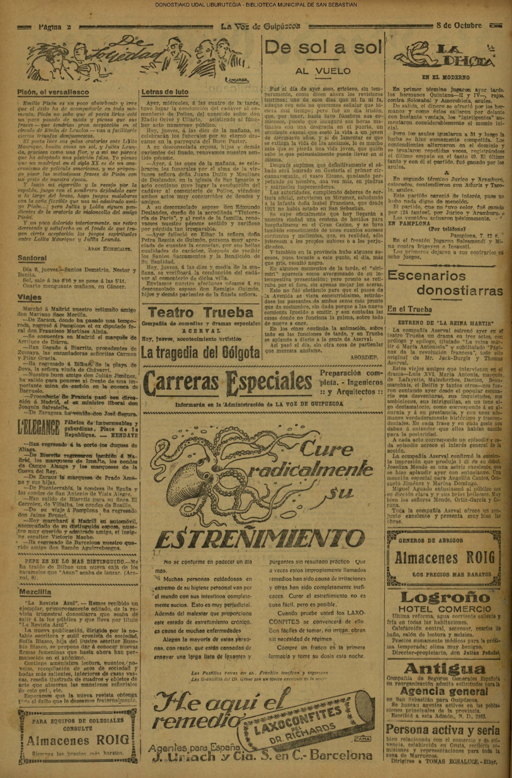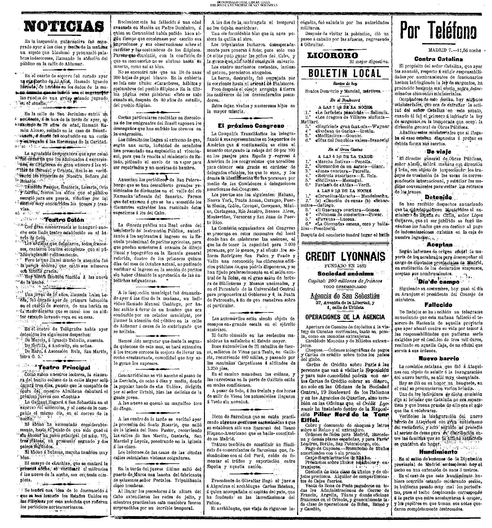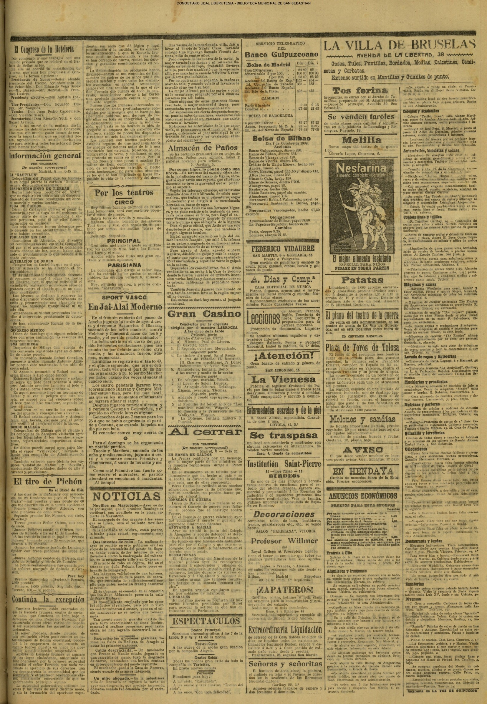 (1900) Se inaugura el teatro Colón, con la actuación de una compañía de artistas excéntricos, que obtuvo un señalado éxito.(La Unión Vascongada)(La Voz de Guipúzcoa)