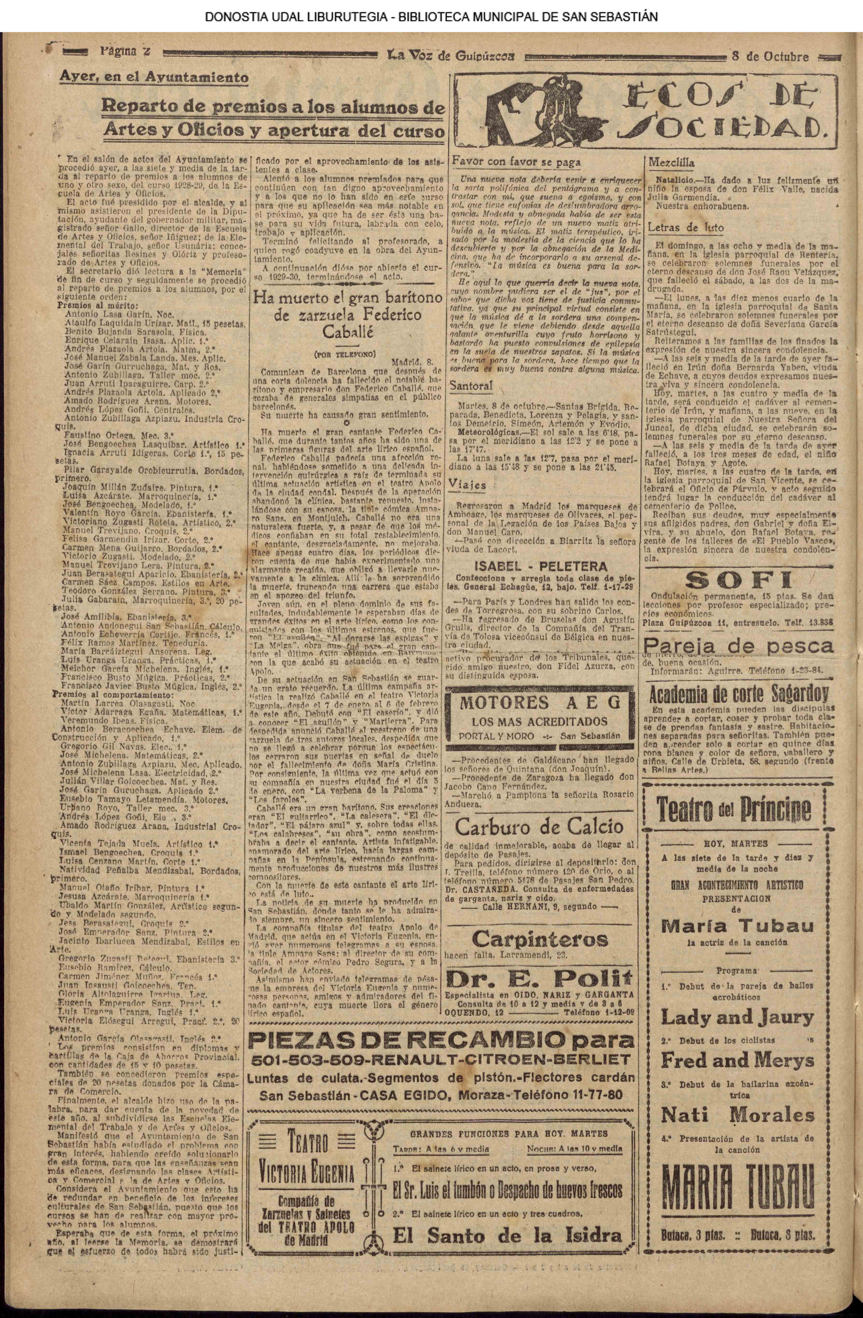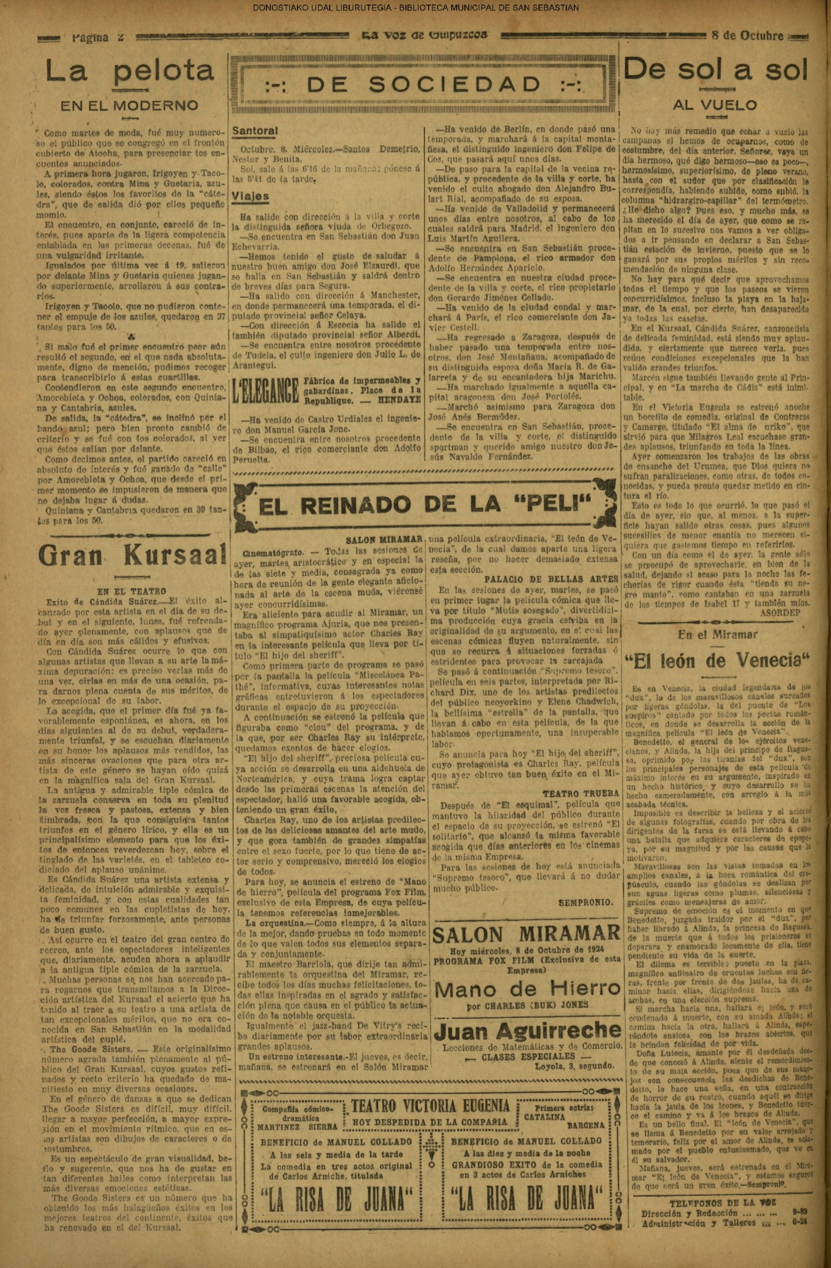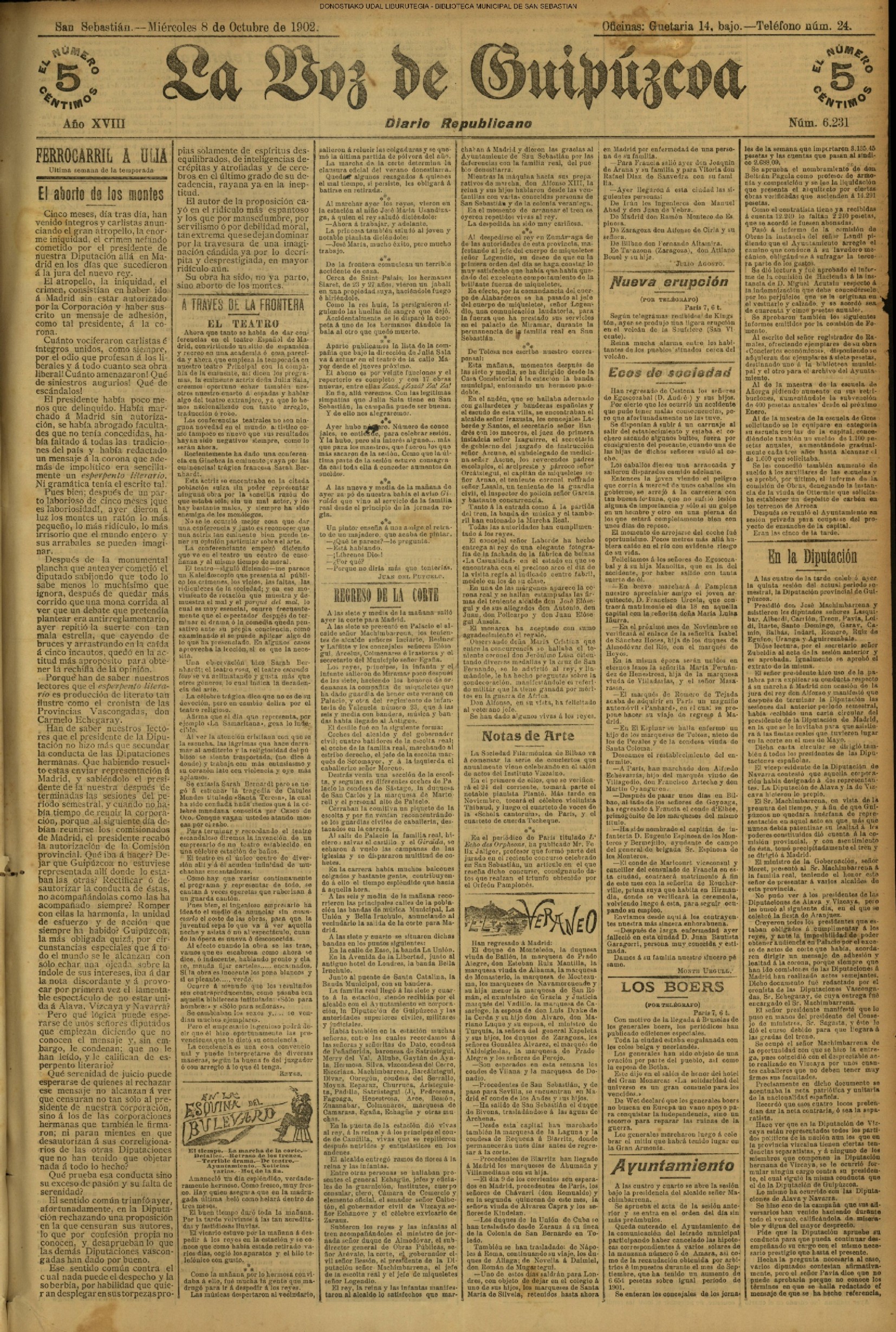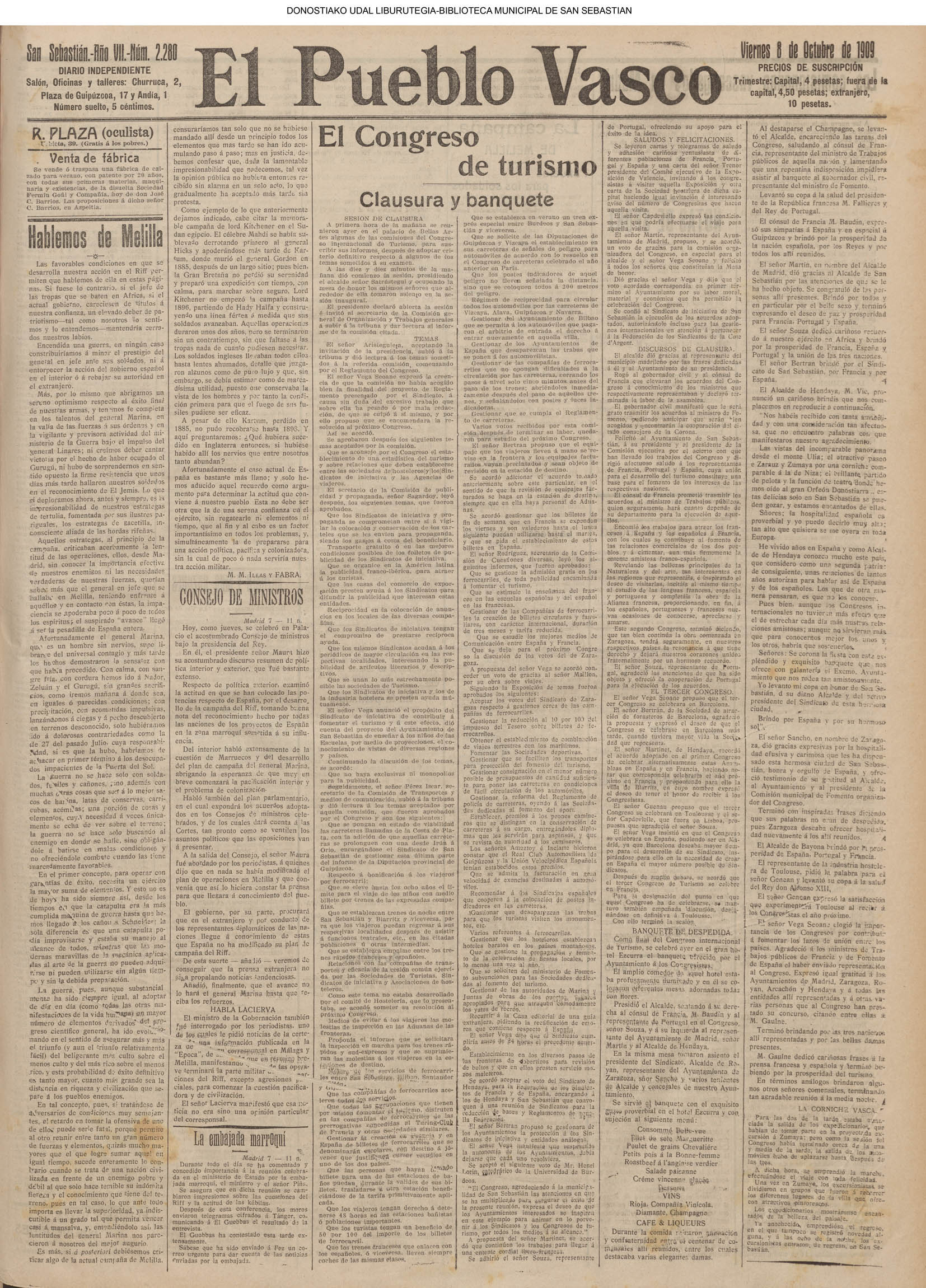 (1900) Se inaugura el teatro Colón, con la actuación de una compañía de artistas excéntricos, que obtuvo un señalado éxito.(La Unión Vascongada)(La Voz de Guipúzcoa)