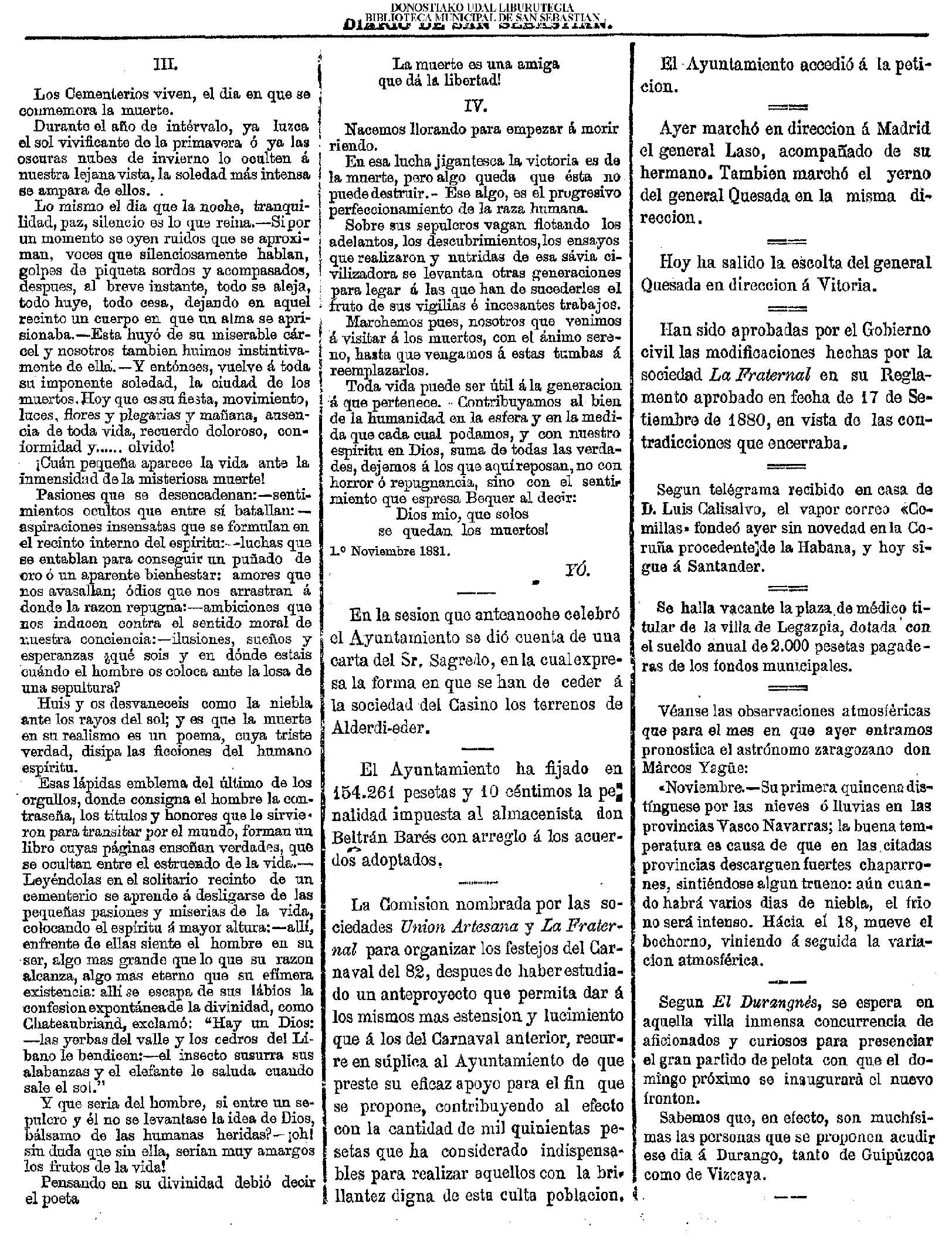 (1881) EL DÍA DE DIFUNTOS (Diario de San Sebastián / cont)(El Urumea)