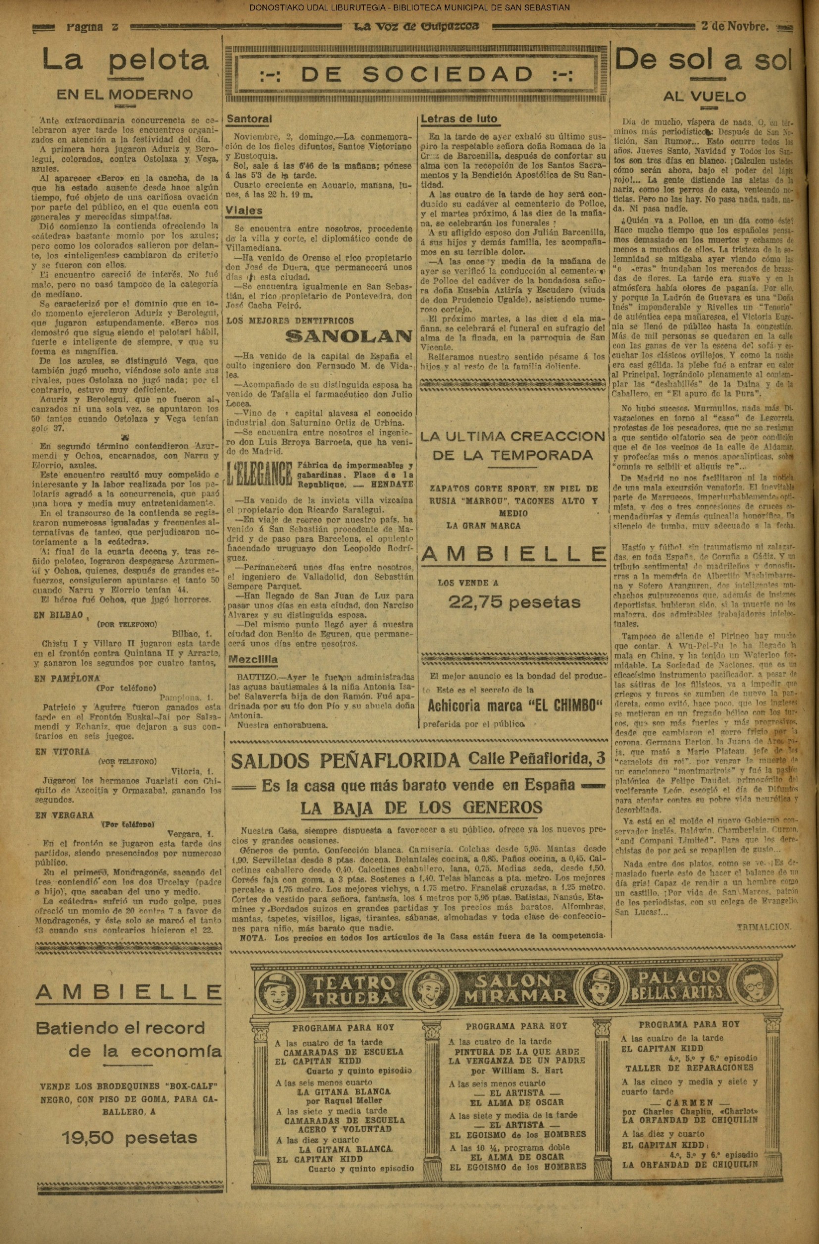 1928 - DE SOL A SOL (JUEVES) LA FESTIVIDAD DE TODOS LOS SANTOS @ - (La Voz de Guipúzcoa)(El Pueblo Vasco)(El Pais Vasco)(La Constancia) (La Voz de Guipúzcoa)(El Pueblo Vasco)(El Pais Vasco)(La Constancia)