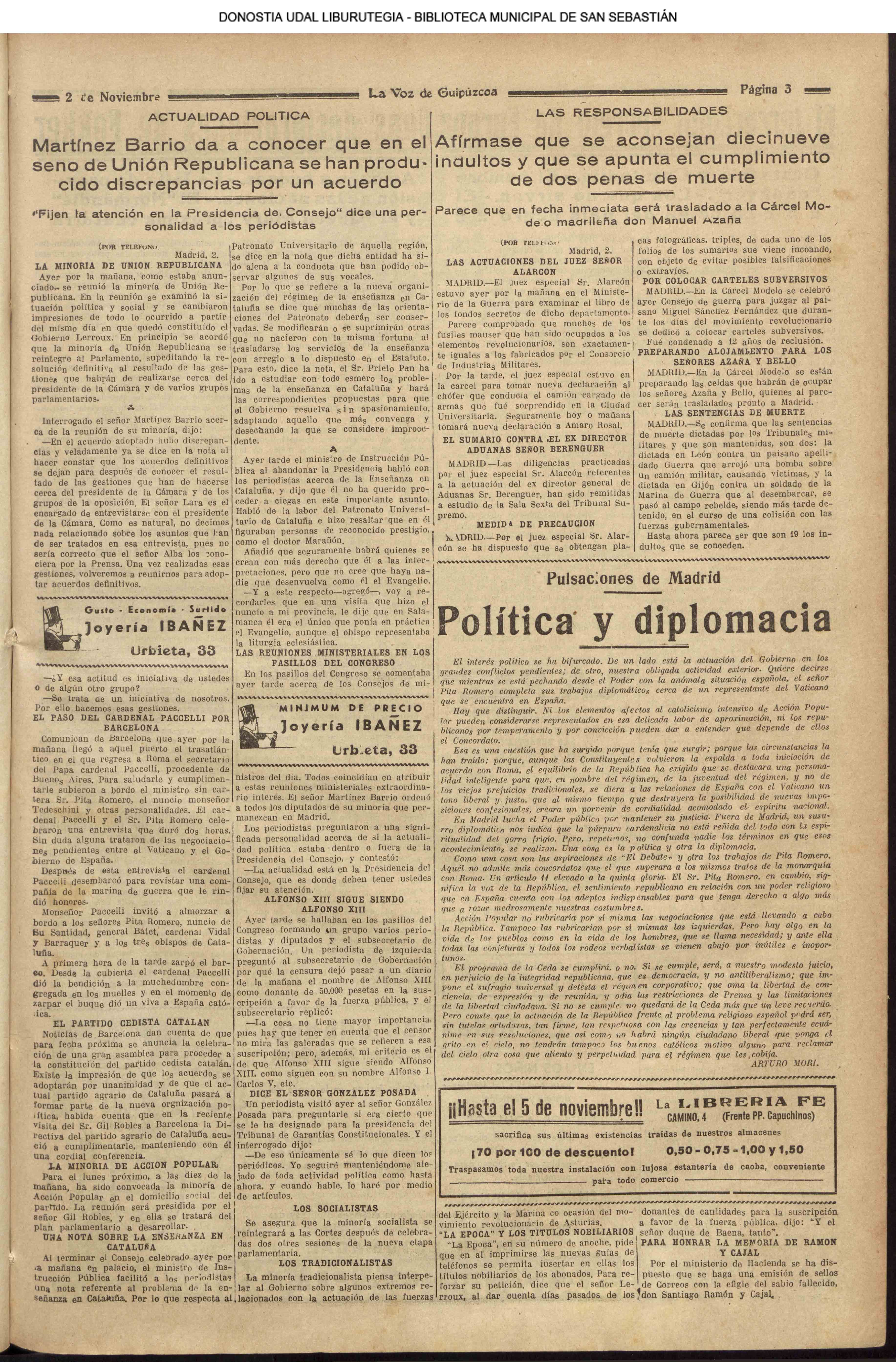 1933 -LA VOZ DE GUIPUZCOA - (CENTROS OFICIALES)
