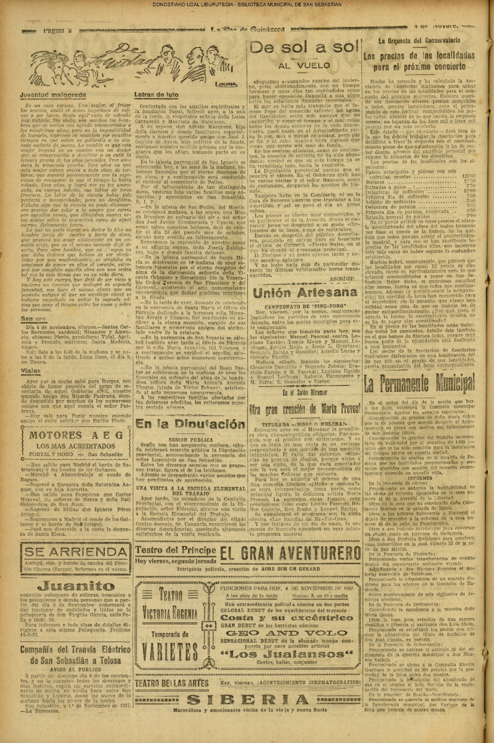 (MARTES) (*) PRENSA DEL DÍA: .- DV(SAN SEBASTIÁN)(02/11): .- El aparcamiento disuasorio de Morlans se pondrá en marcha dentro de quince días. La parcela, de 4.700 metros cuadrados, está situada frente a la Fábrica de Gas. (pág.17) .- EA-PNV pide mayor control municipal de las fiestas de los barrios. Un informe técnico dice que la responsabilidad es del Ayuntamiento (pág.17) .- Dos minifrontones de Venta Berri se habilitan como gimnasios (pág.18) (TXISPAS).(pág.18) .- Los pequeños cementerios. (pág.19) .- LA CIUDAD Y SUS GENTES: Relevo a un octubre primaveral.- DONOSTIA, LA TENTACIÓN: Flores y chándales. - KOXKAS. "El rayo verde". (pág.21)