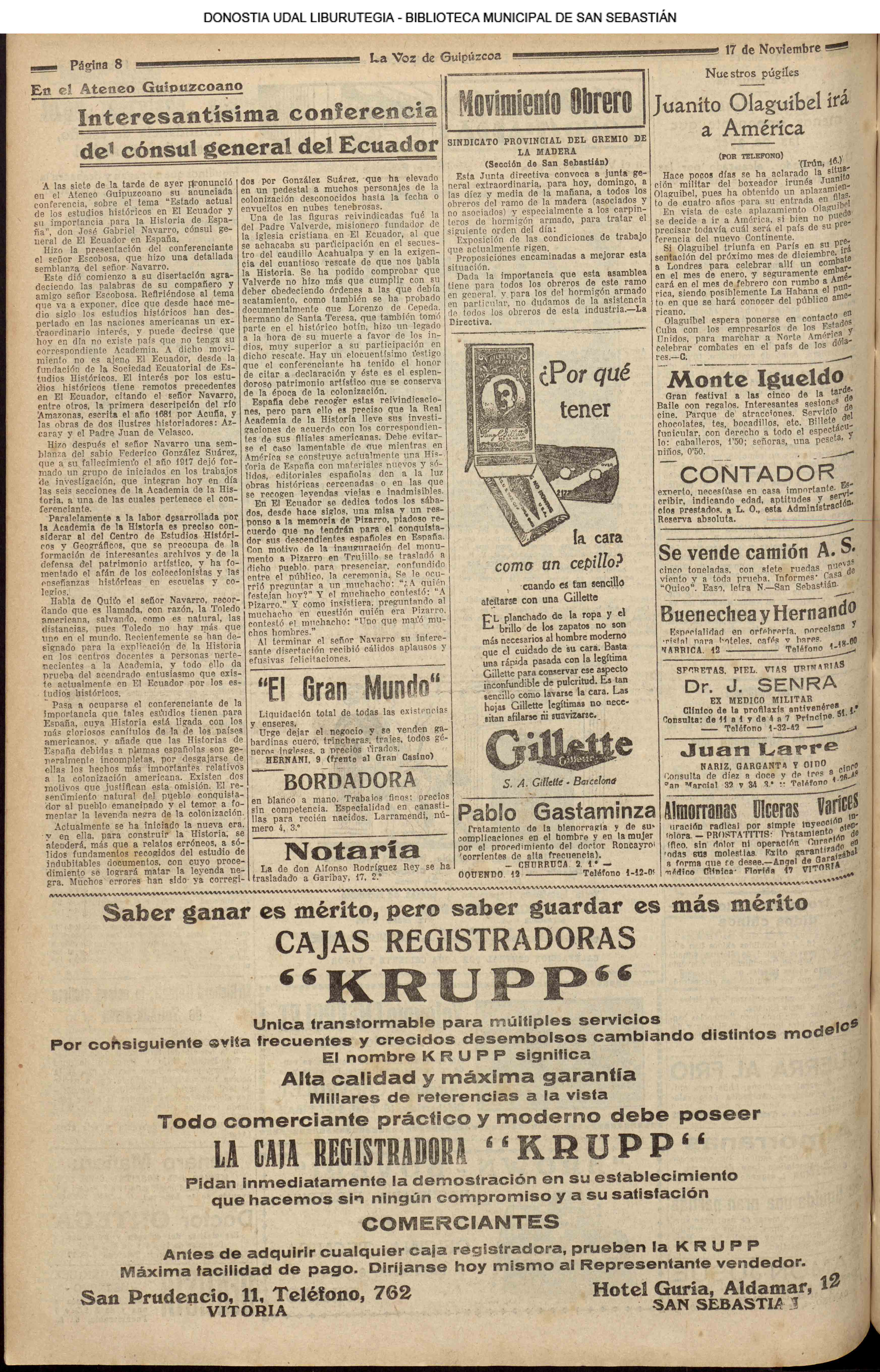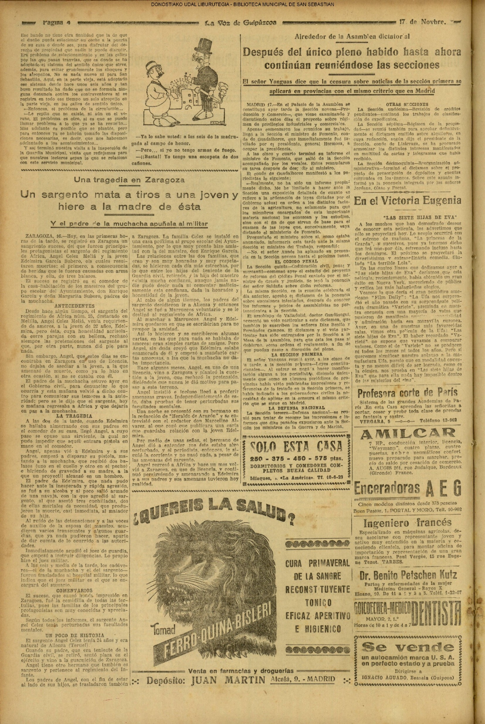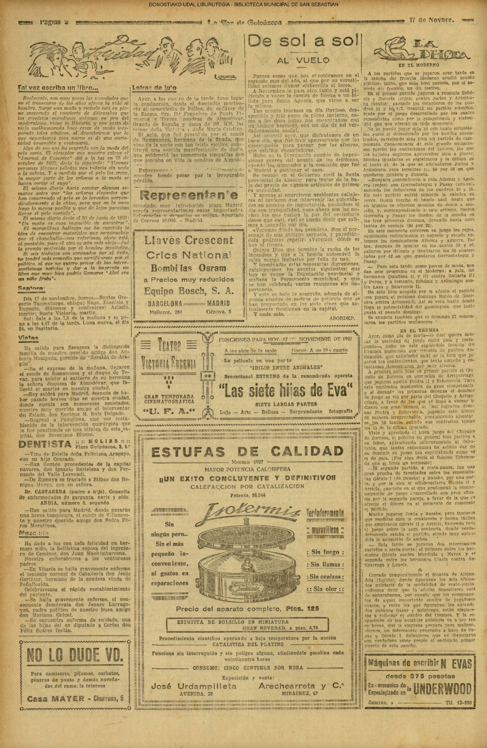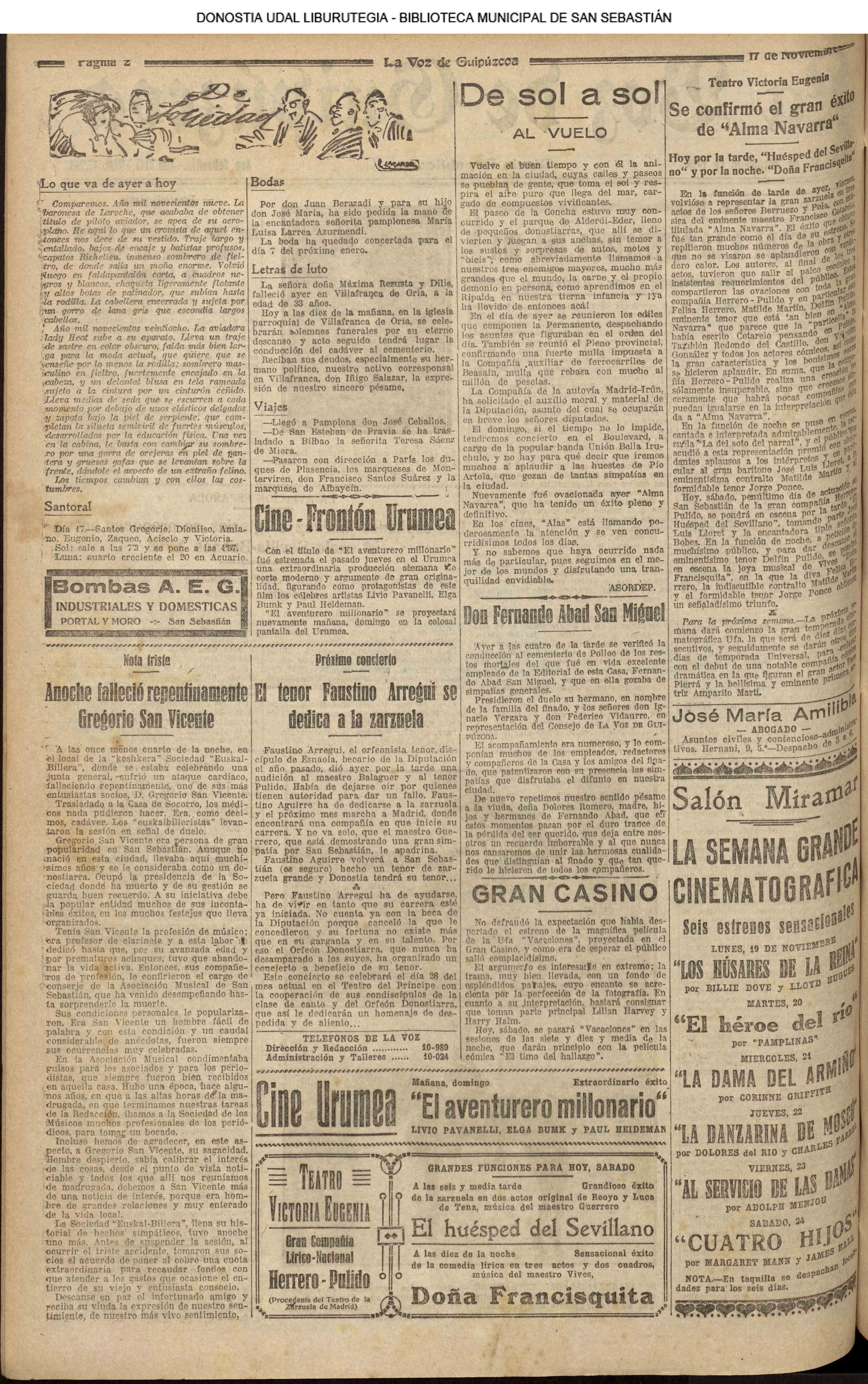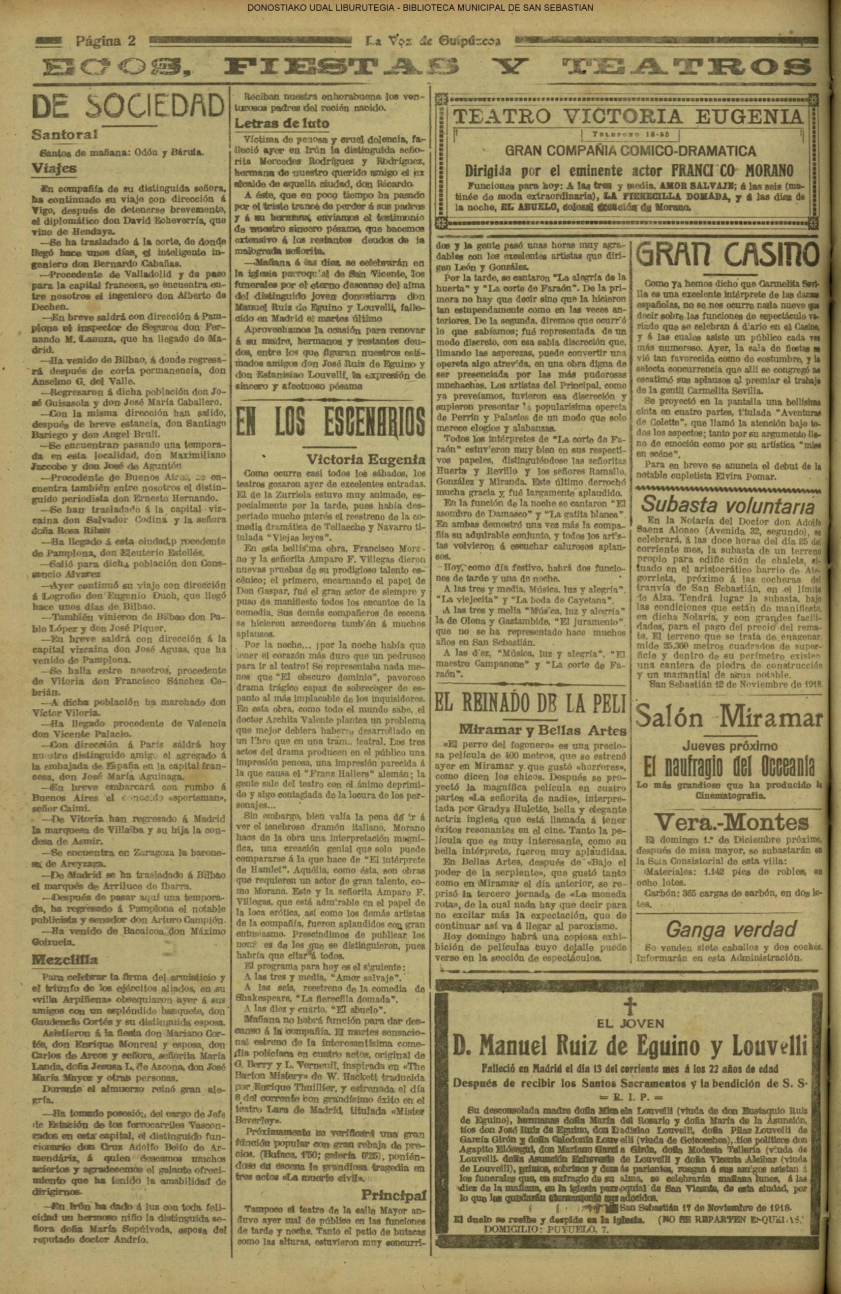 (1885) DIPUTACIÓN PROVINCIL DE GUIPUZCOA - SESIÓN ORDINARIA (La Voz de Guipuzcoa) (1891). PLENO MUNICIPAL- Abrese la sesión bajo la presidencia del señor Güemes y asisten los concejales Acha, Sagasti, Marticorena, Lerchundi, Egaña, Rezola, Astigarraga, Macazaga, Pradera, Salazar, Irastorza, (D. Ignacio), Asqueta, Echeverría (don Feliciano), Otero, Nerecan, Irastorza (D. Francisco), Lasarte, Elósegui, Echevarria (D. Diego) y Petrirena. .- (....) Para evitar confusiones dicen se cambie el nombre de la calle de la Beneficencia del Ensanche, y cree conveniente que los nombres de las nuevas calles sean los siguientes: .......... (La Voz de Guipuzcoa) El maestro Gorriti termina el Miserere que había de cantarse en la iglesia de San Vicente en la Semana Santa, y que se hizo célebre. (1893) TAL DÍA COMO HOY (1894) TAL DÍA COMO HOY (1895) EN LA ESQUINA DEL BOULEVARD (1896) EN LA ESQUINA DEL BOULEVARD (1897) EN LA ESQUINA DEL BOULEVARD (1898) EN LA ESQUINA DEL BOULEVARD (1899) EN LA ESQUINA DEL BOULEVARD (1900) CRÓNICA DEL DÍA |