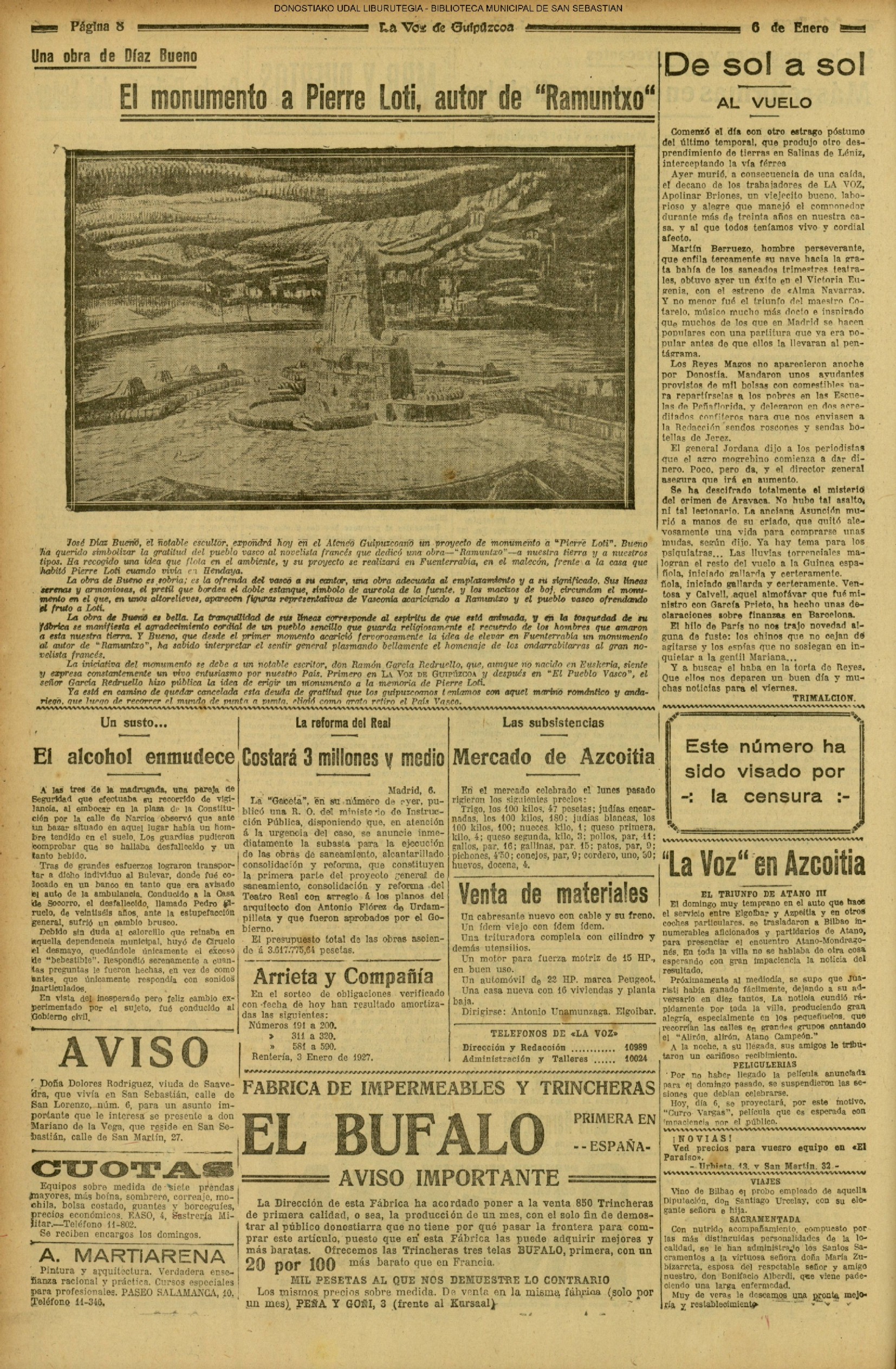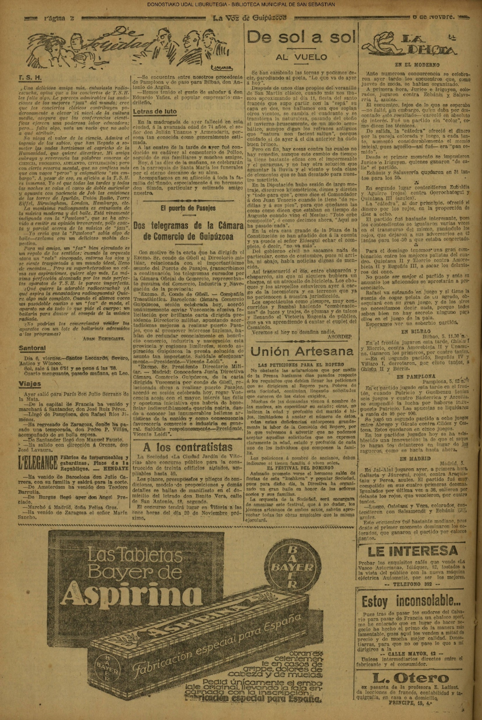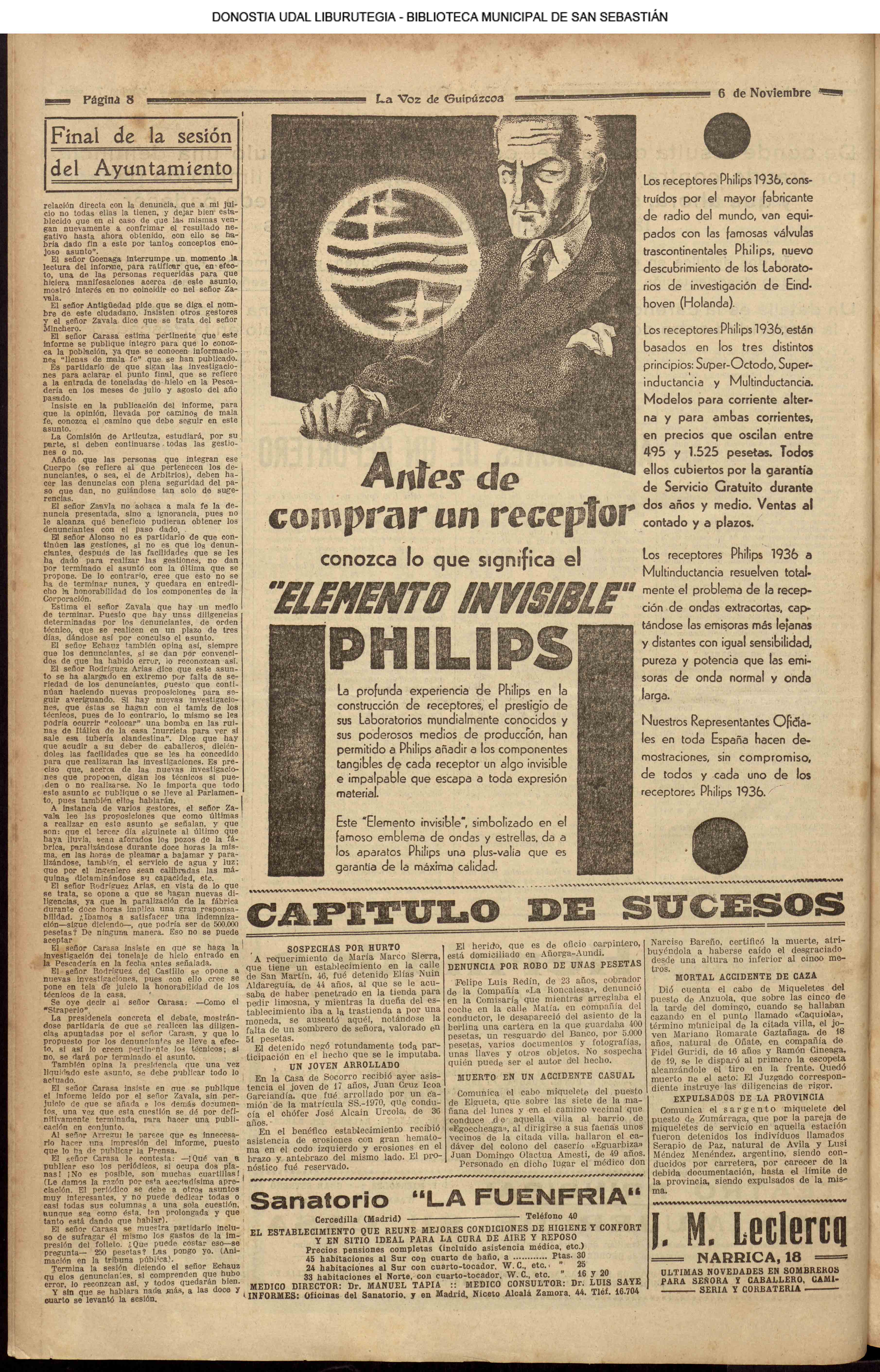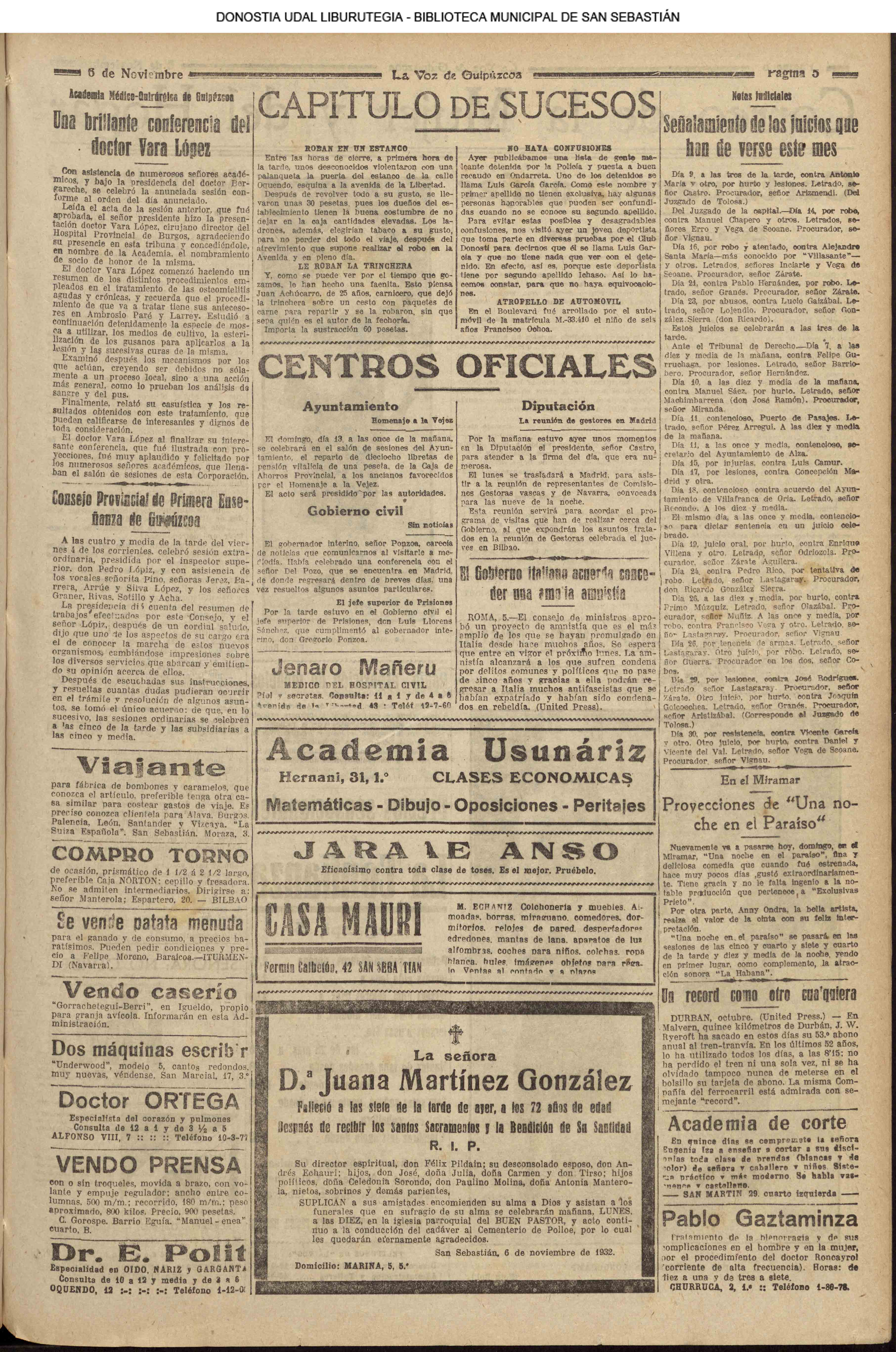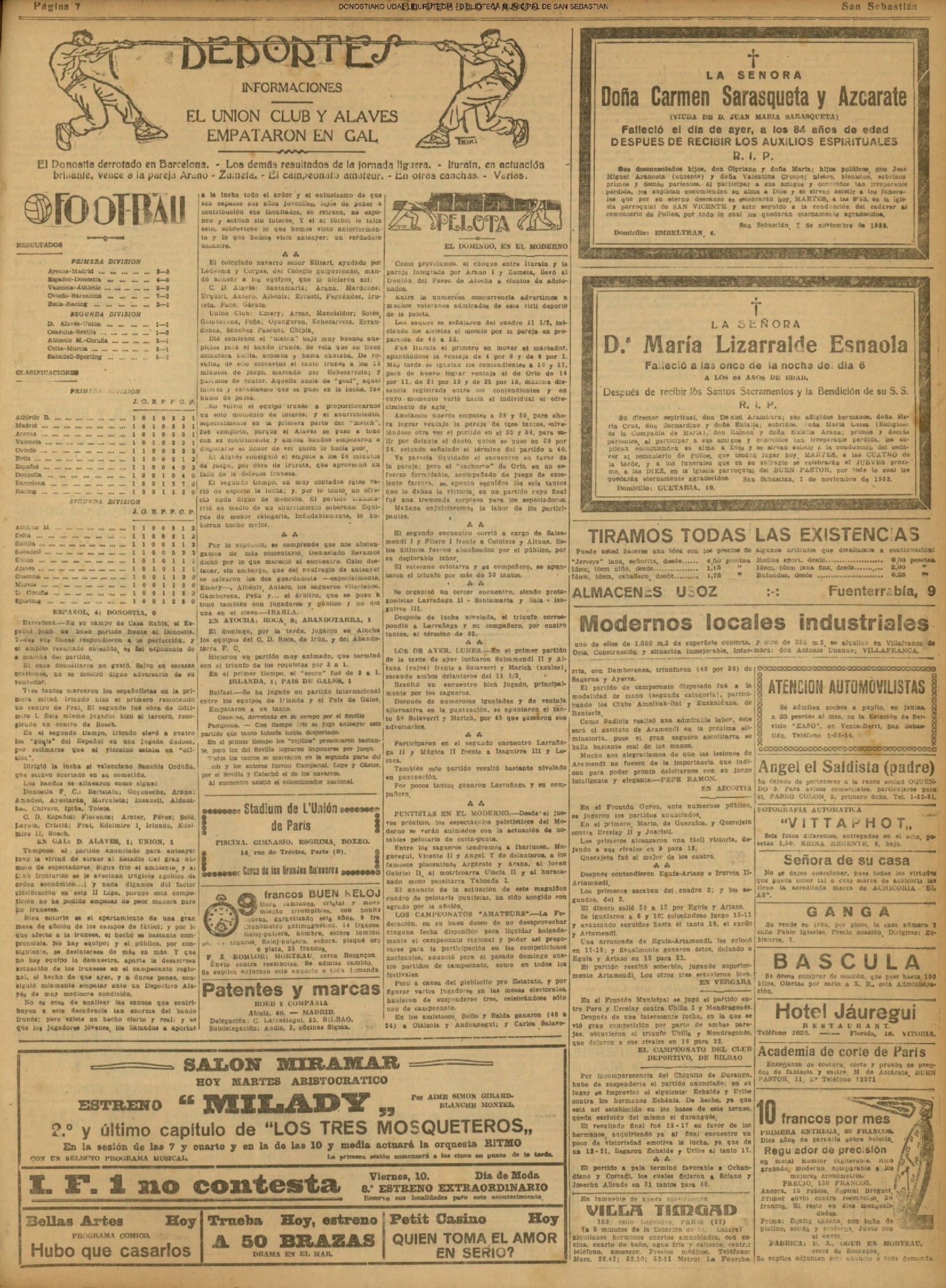 (EL DIARIO VASCO)(LA VOZ DE ESPAÑA)(UNIDAD) (1941) Toma posesión de la presidencia de la Diputación D. Fernando Arámburu Olaran. (1942) Fallece Doña Martina Berasategui Montes, viuda del ex-alca!de D. Mariano Zuaznábar. (1944) REAL SOCIEDAD (4-2) SANTANDER (HOJA DEL LUNES)(EL DIARIO VASCO)(LA VOZ DE ESPAÑA) (1945) (1953).Fallece el arquitecto D. José Martínez de Ubago y Lizarraga. (1954) Fallece D. Rafael Arcelus Beguiristáin, presidente del Consejo de Administración de la firma industrial «Tomás Altuna e Hijo, S. A.». (1955)(1965) (1967) ESPAÑOL (2-0) REAL SOCIEDAD (1972) GRANADA (2-0) REAL SOCIEDAD (1975) |