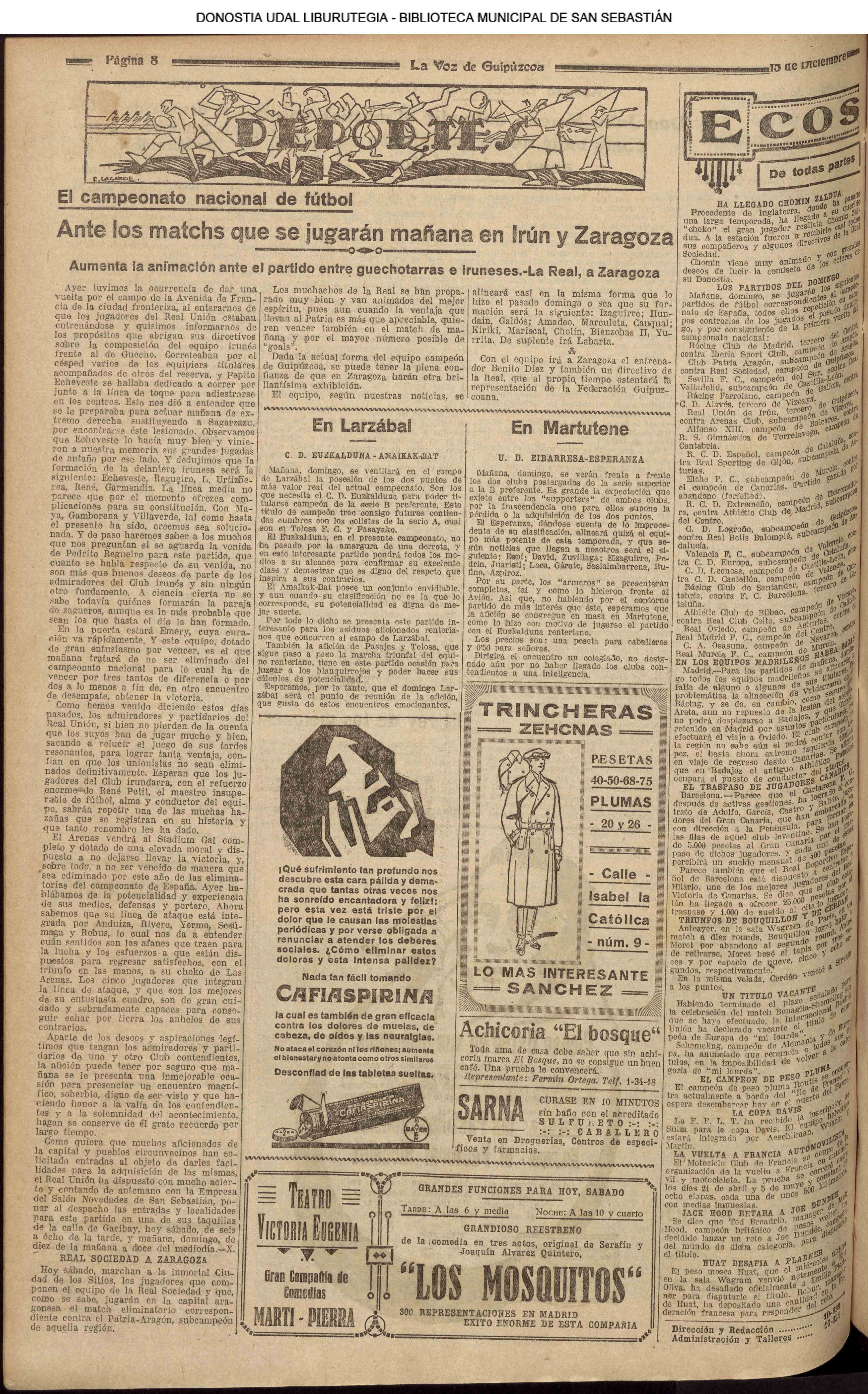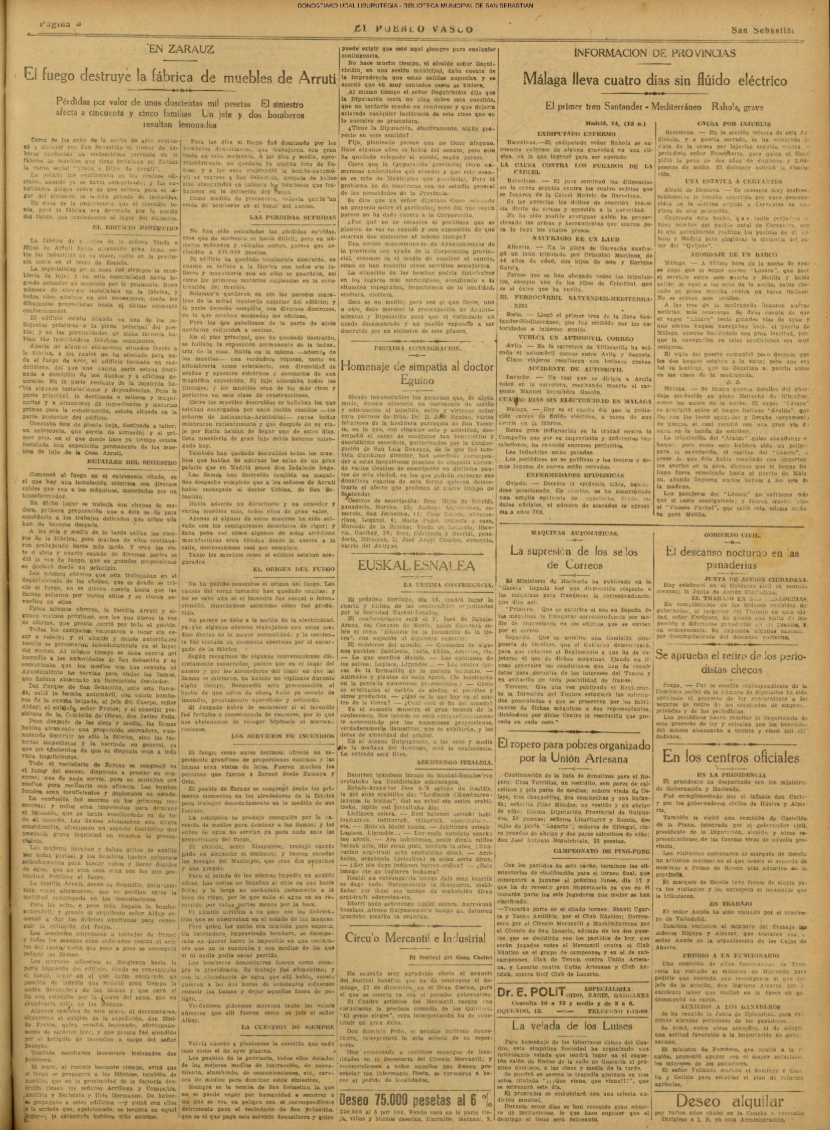 (La Voz de Guipúzcoa)(El Pueblo Vasco)(El Correo de Guipuzcoa)(La Constancia)