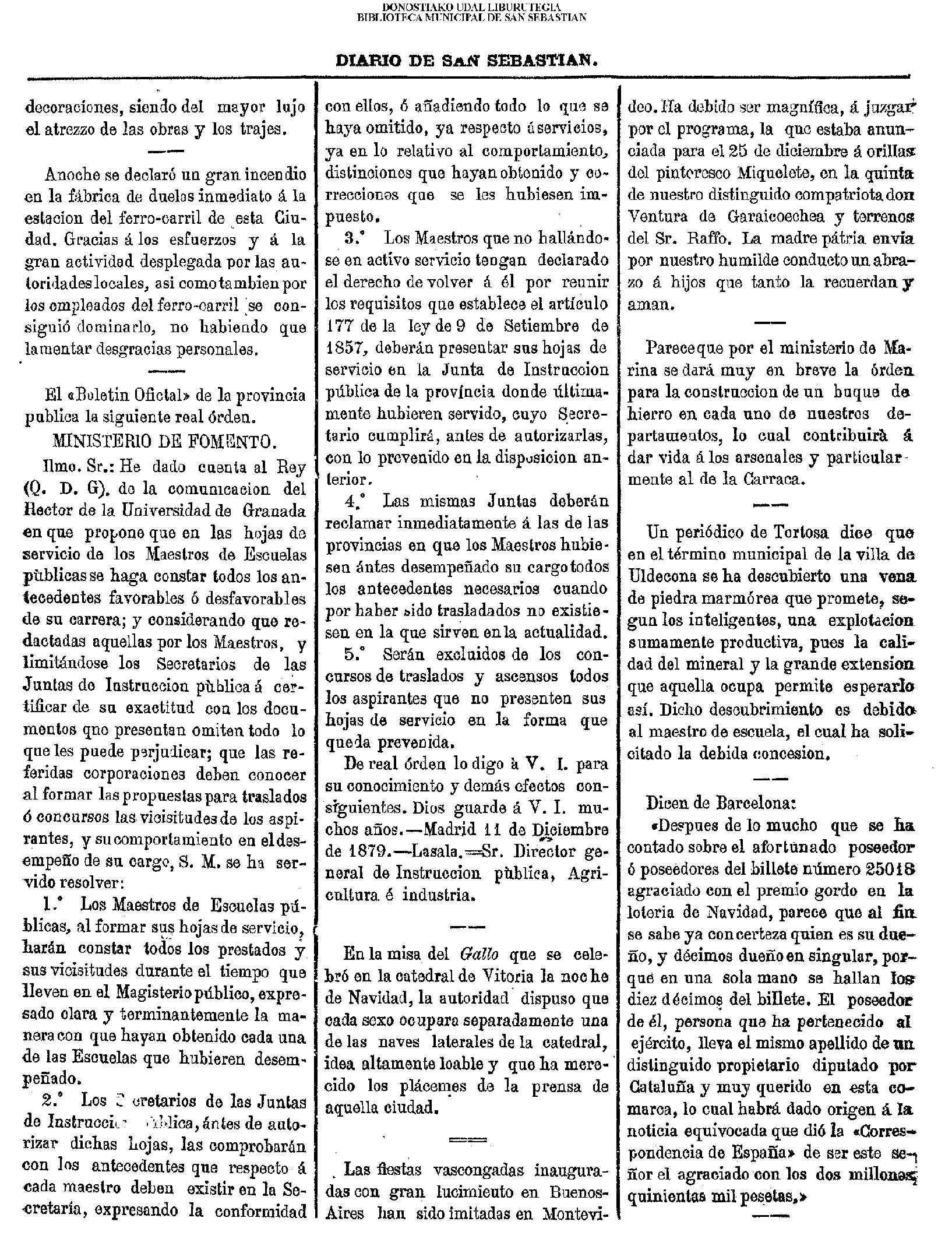 (1900) La Comisión Provincial de la Diputación acuerda solemnizar la entrada del siglo XX creando la Casa Cuna de Fraisoro.(Plausible acuerdo - La Voz de Guipúzcoa)(La Unión Vascongada) (1900) El acontecimiento del día fué la inauguración oficial del ferrocarril de la Costa, mediante la unión de las provincias de Guipúzcoa y Vizcaya en Deva.(La Voz de Guipúzcoa)(La Unión Vascongada) |