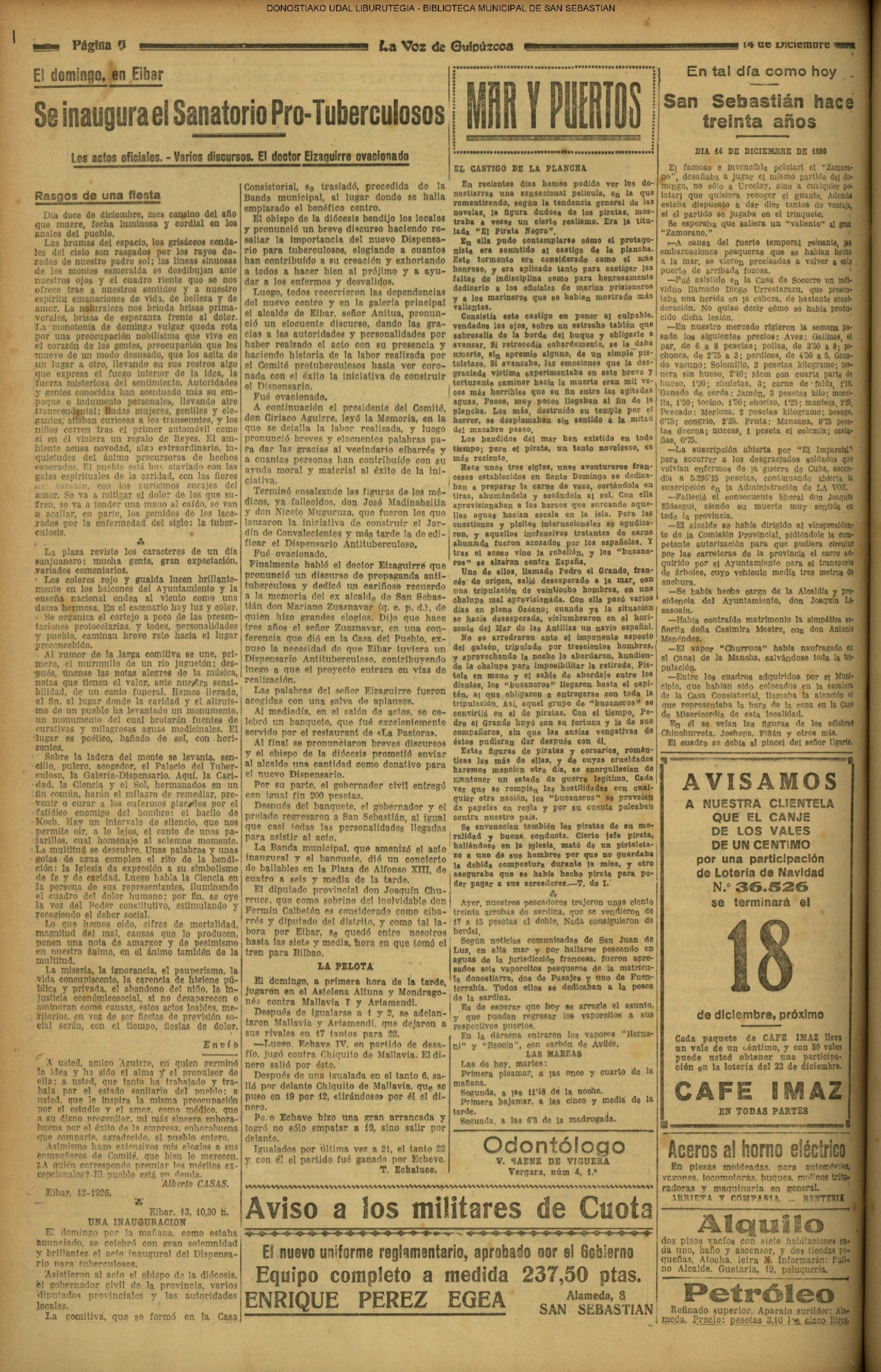 (1933).- La fracasada intentona de San Sebastián. - Se restablece la normalidad. Quedó totalmente restablecida la normalidad , después de dos días de nerviosismo y de incidentes que obligaron a las autoridades a adoptar medidas rigurosas y a paralizar la vida de la población a las diez de la noche. Se trabajó con normalidad en todas partes, y los vehículos circularon sin que fuesen vigilados ni protegidos por la fuerza. (.......)