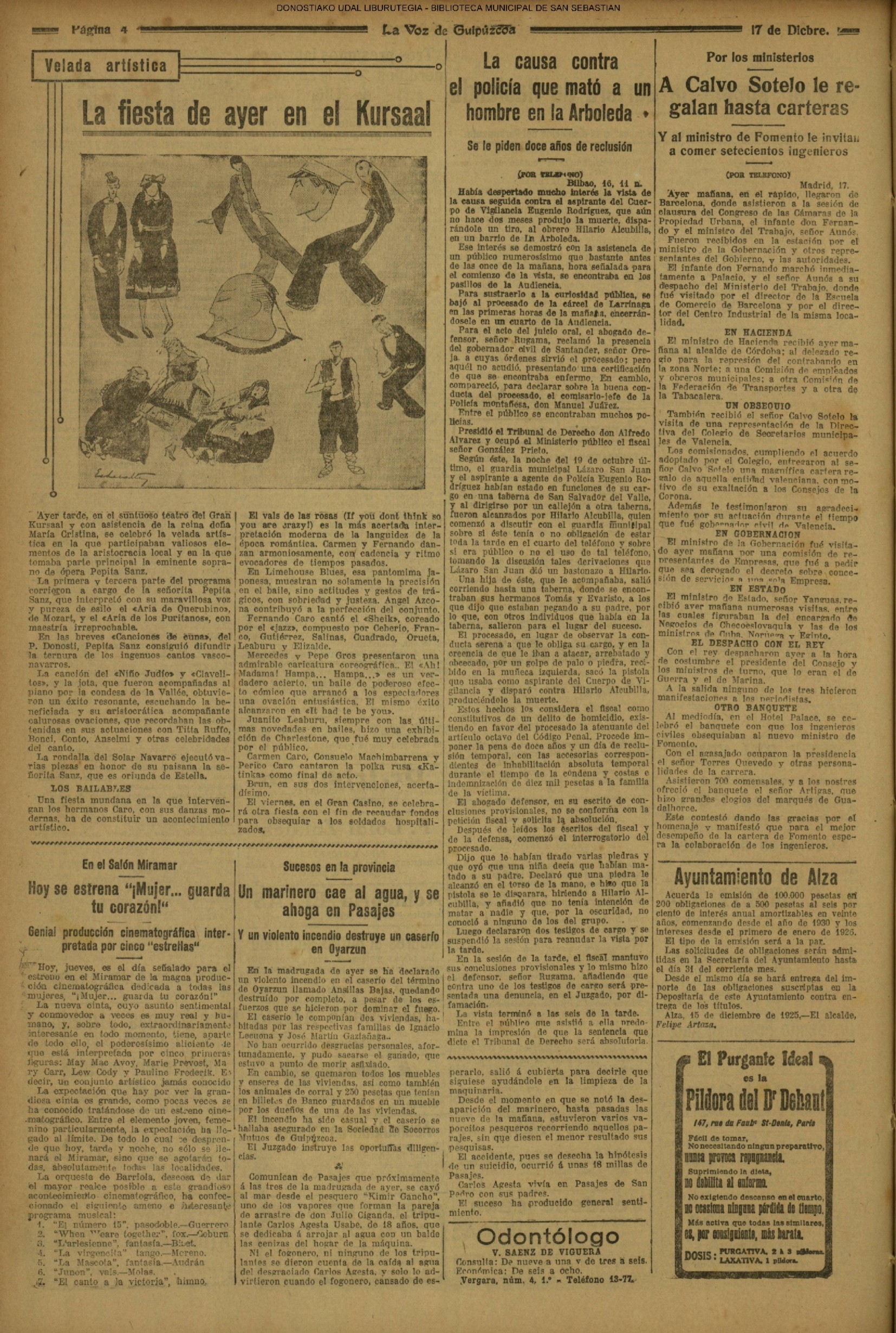 (1925) VELADA ARTÍSTICA EN EL KURSAAL