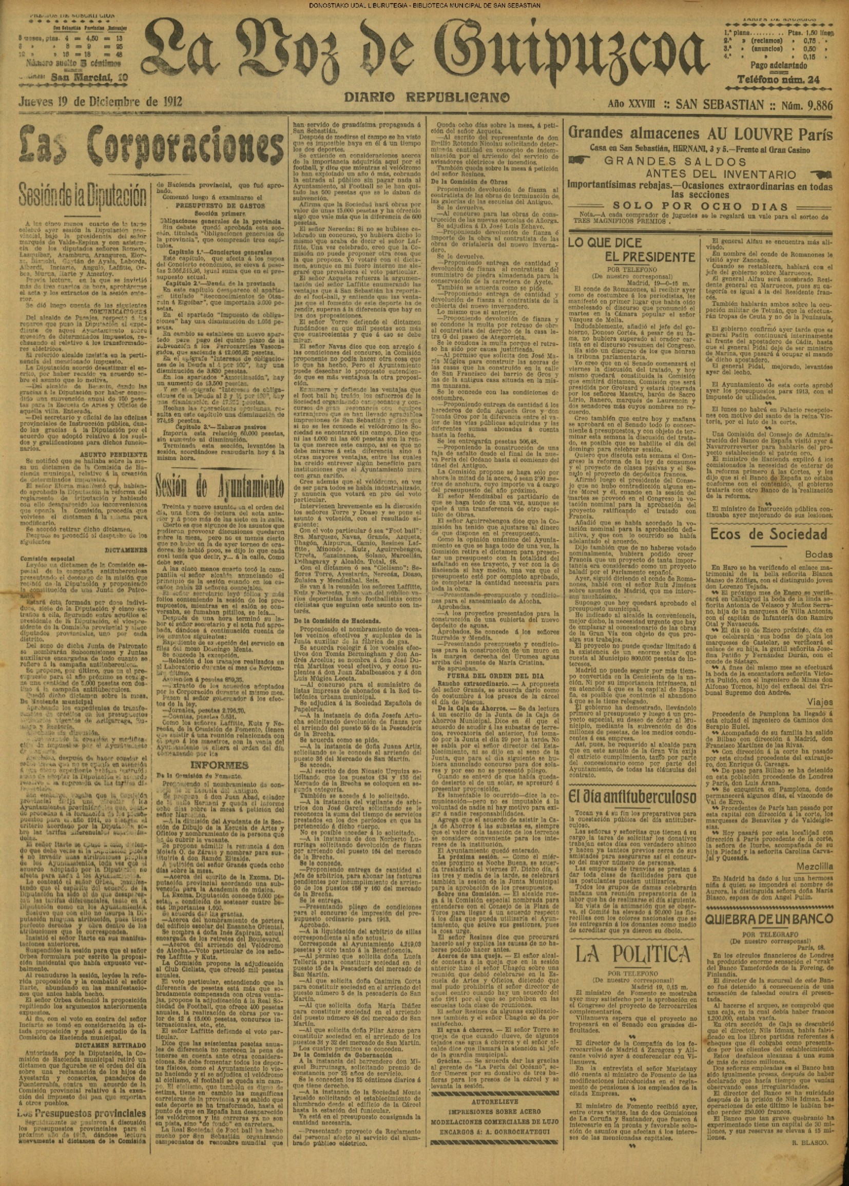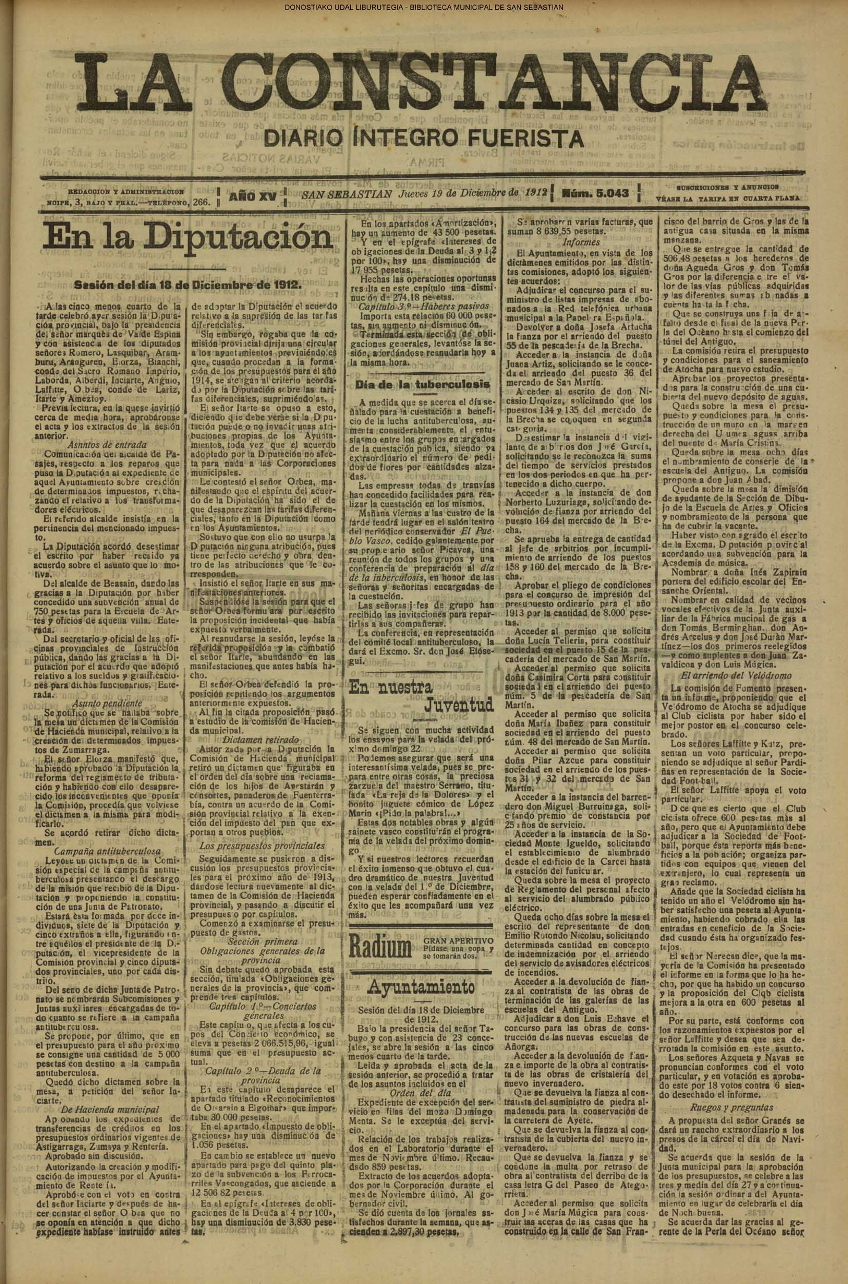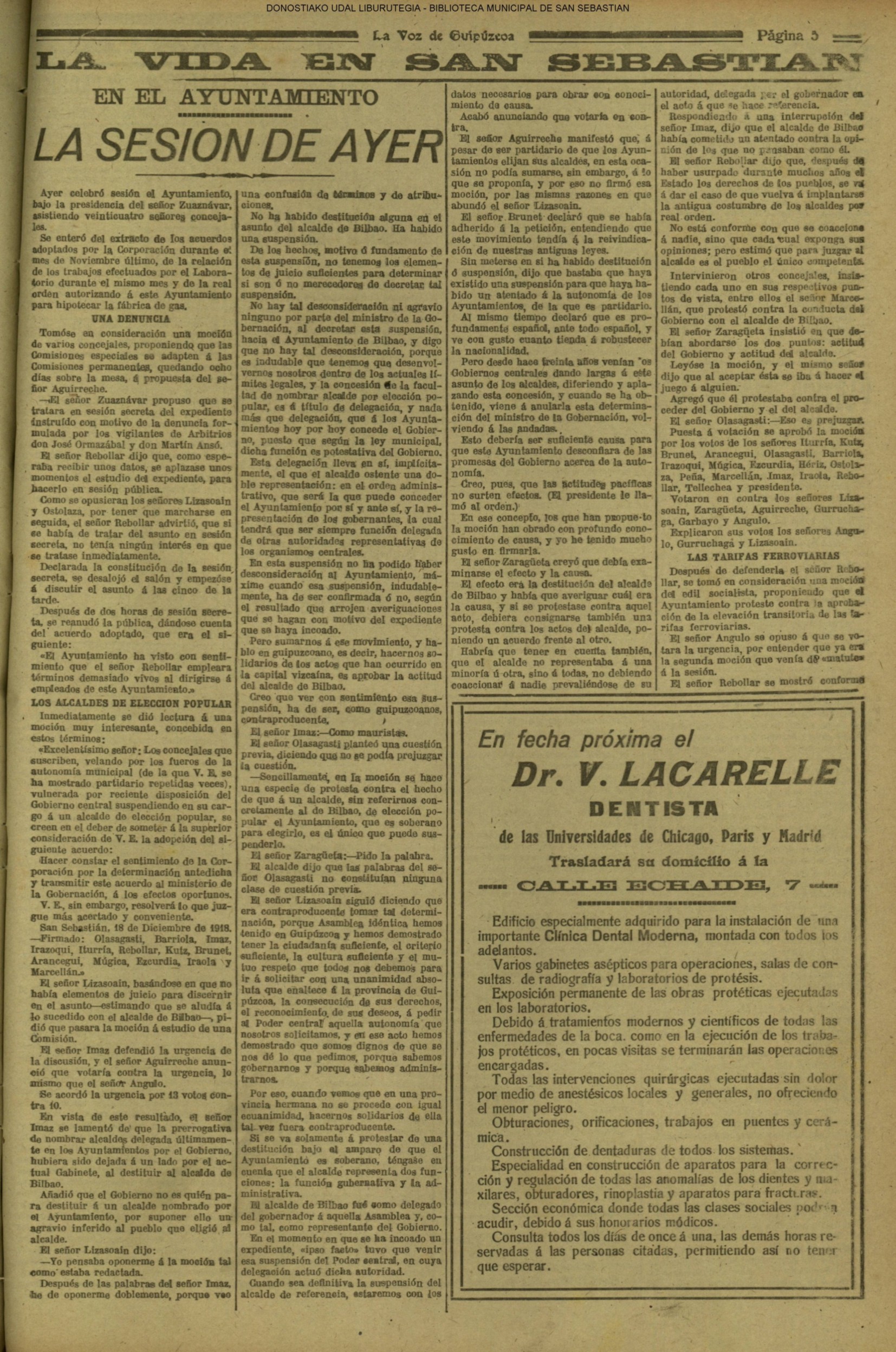 (La Voz de Guipúzcoa)(El Pueblo Vasco)(El Correo del Norte)(La Constancia)(AYUNTAMIENTO PLENO.- ACTA nº.12)