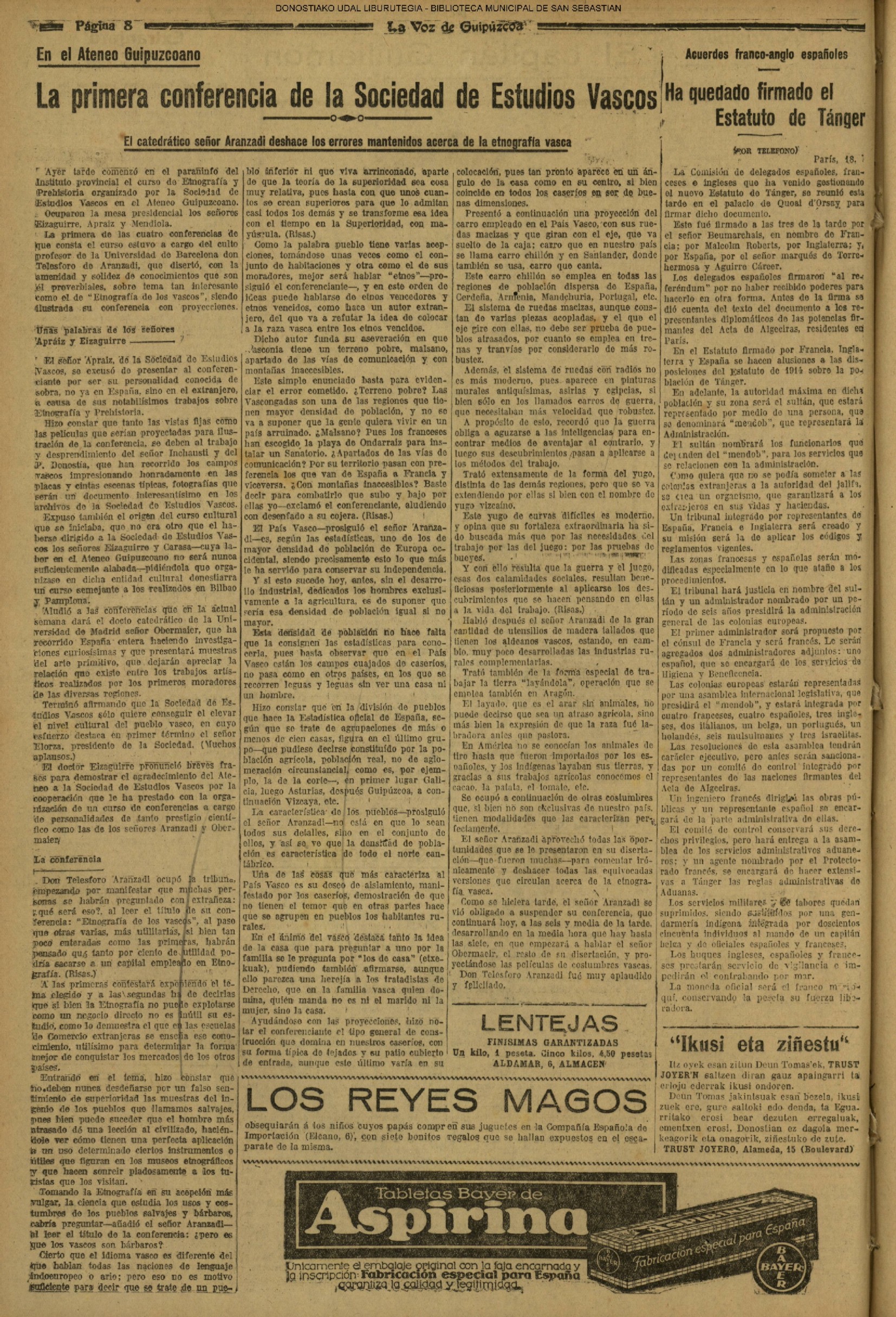 # ATENEO GUIPUZCOANO - La primera conferencia de la Sociedad de Estudios Vascos