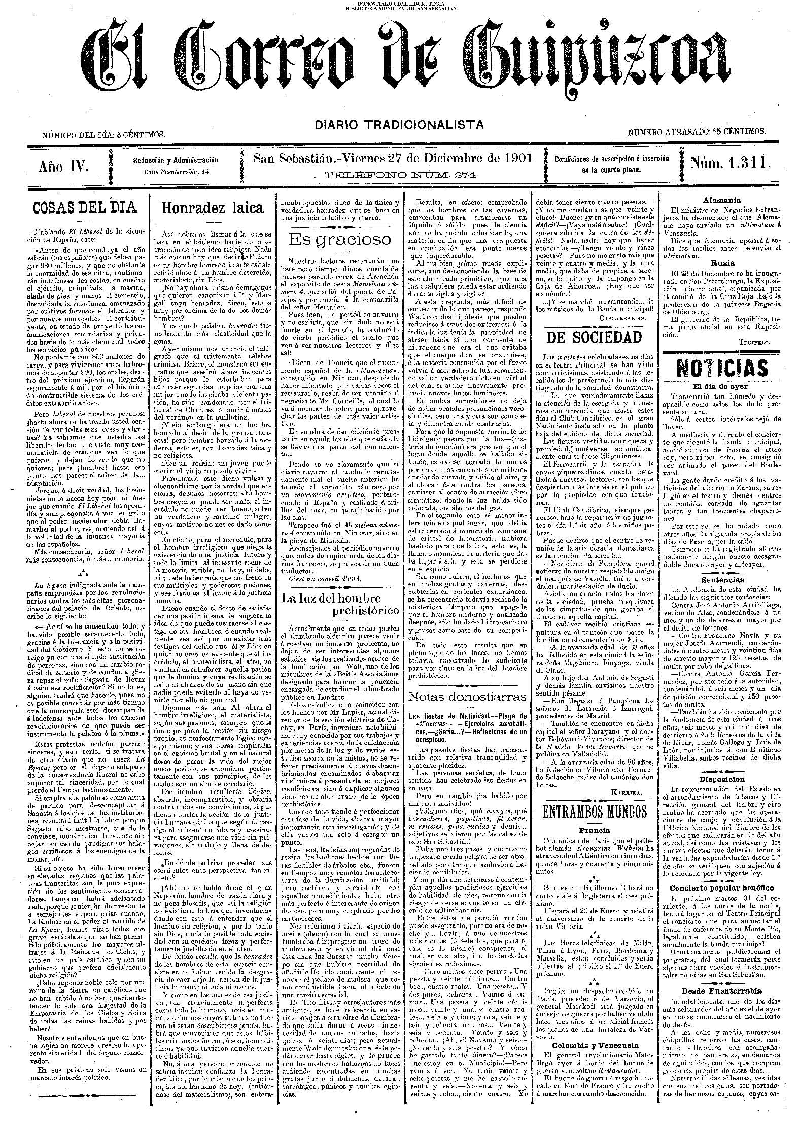 4.000 duros.(El Correo de Guipuzcoa)(La Unión Vascongada)(La Voz de Guipúzcoa)