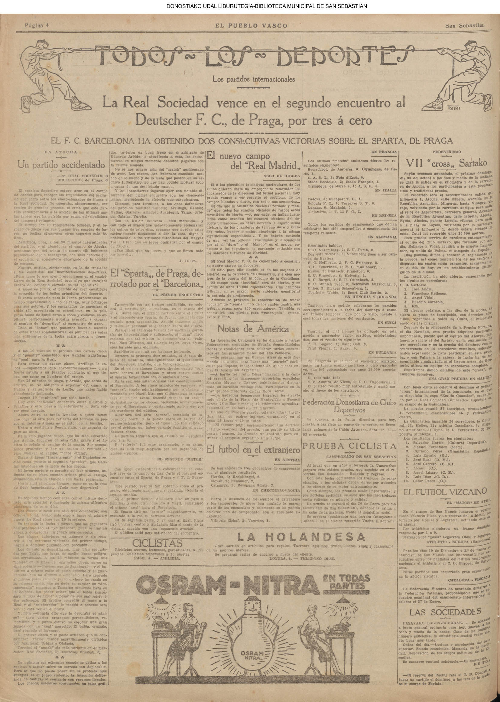 (La Voz de Guipúzcoa)(El Pueblo Vasco)(1923) REAL SOCIEDAD (3-0) DEUTSCHER DE PRAGA