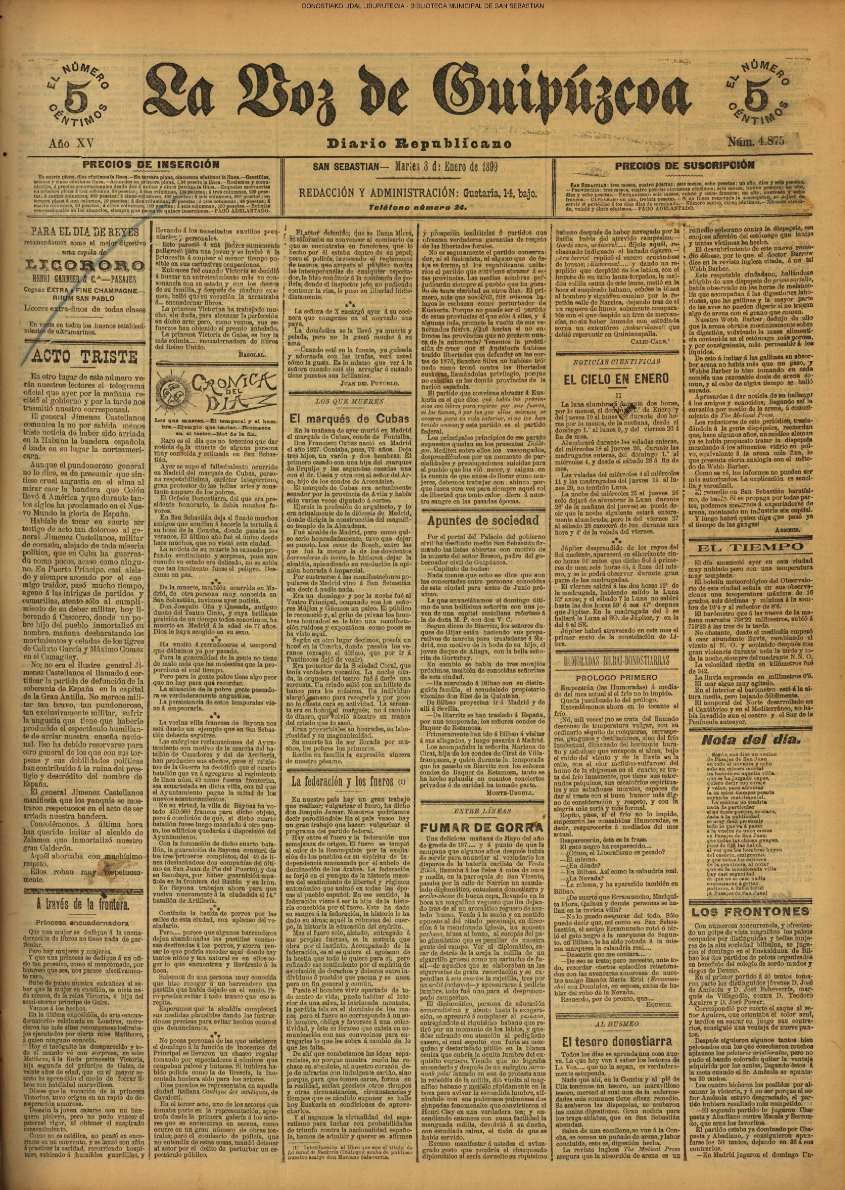 (1944) CASTELLÓN (3-0) REAL SOCIEDAD # Esta noche se cierra definitivamente el Café Viena-Kutz, que estuvo en la Avenida esquina a la calle de Vergara.(LA VOZ DE ESPAÑA) (1947) (EL DIARIO VASCO)(LA VOZ DE ESPAÑA) (UNIDAD) (1949) REAL SOCIEDAD (1-0) OSASUNA (HOJA DEL LUNES)(EL DIARIO VASCO)(LA VOZ DE ESPAÑA)(1952) el Director general de Puertos visita San Sebastián y Fuenterrabia (EL DIARIO VASCO)(LA VOZ DE ESPAÑA) (1955) REAL MADRIS (1-1) REAL SOCIEDAD (HOJA DEL LUNES)(LA VOZ DE ESPAÑA)(1956) En Fermín Calbetón, 30, se abre al público la sastrería Lobera. (LA VOZ DE ESPAÑA) (1957) (LA VOZ DE ESPAÑA) (1962) (LA VOZ DE ESPAÑA) (1966) REAL SOCIEDAD (3-1) BADALONA (HOJA DEL LUNES)(LA VOZ DE ESPAÑA)(1967) (LA VOZ DE ESPAÑA) (1972) REAL SOCIEDAD (2-0) SABADELL (HOJA DEL LUNES)(LA VOZ DE ESPAÑA) |