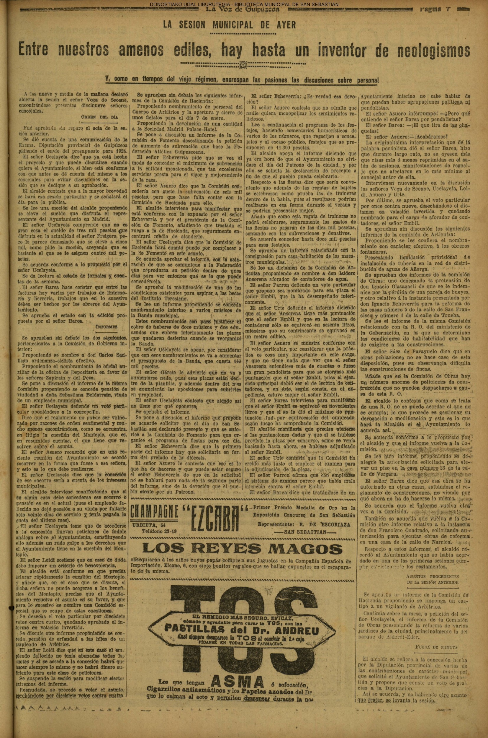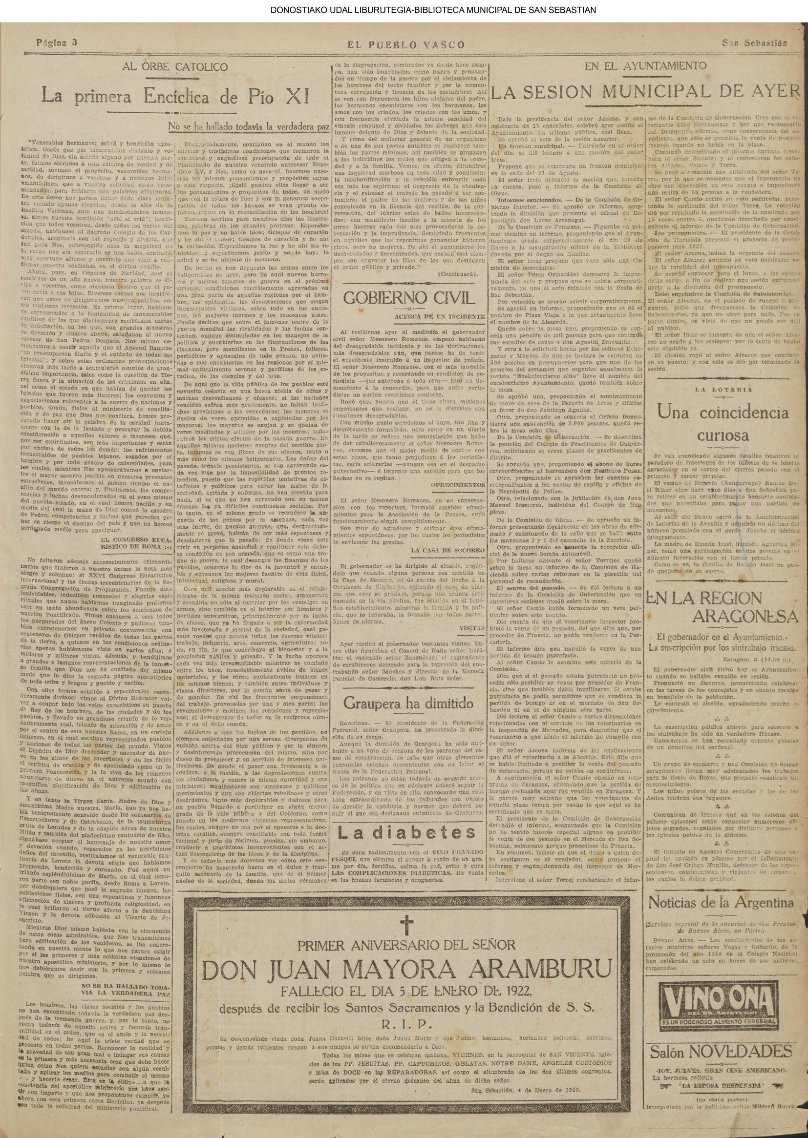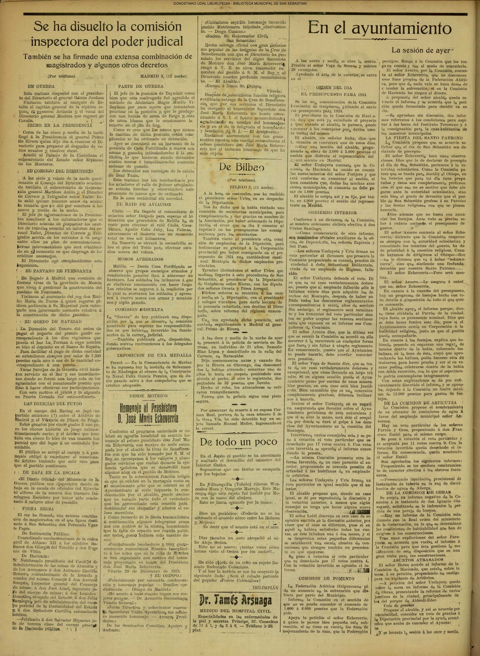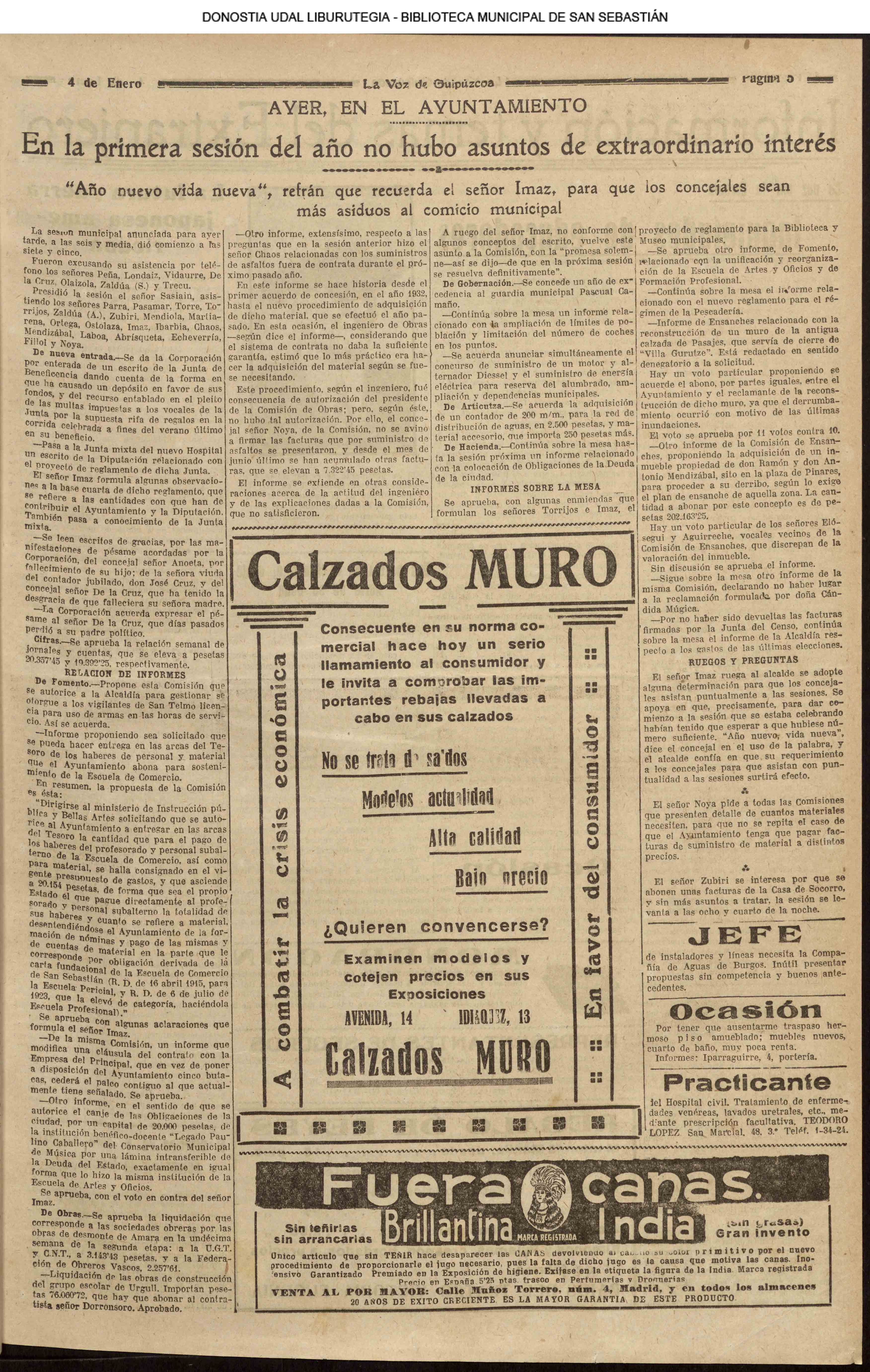 (La Voz de Guipúzcoa) (El Pueblo Vasco)(El Día)(La Constancia)(1934) PLENO MUNICIPAL