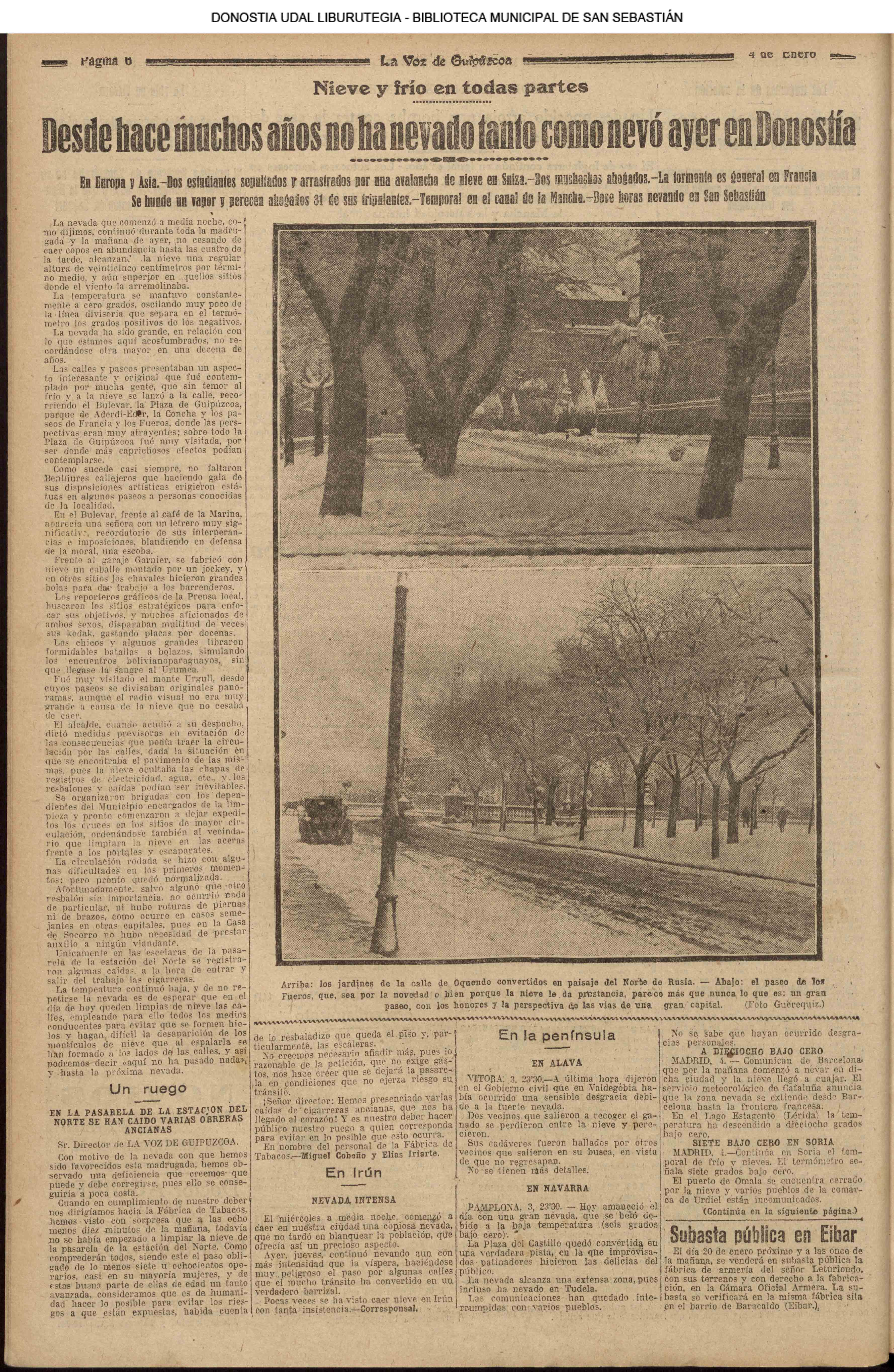 (La Voz de Guipúzcoa)(El Pueblo Vasco)(El Pais Vasco)(La Constancia)(1929) GRAN NEVADA - Nieve y frío en todas partes.