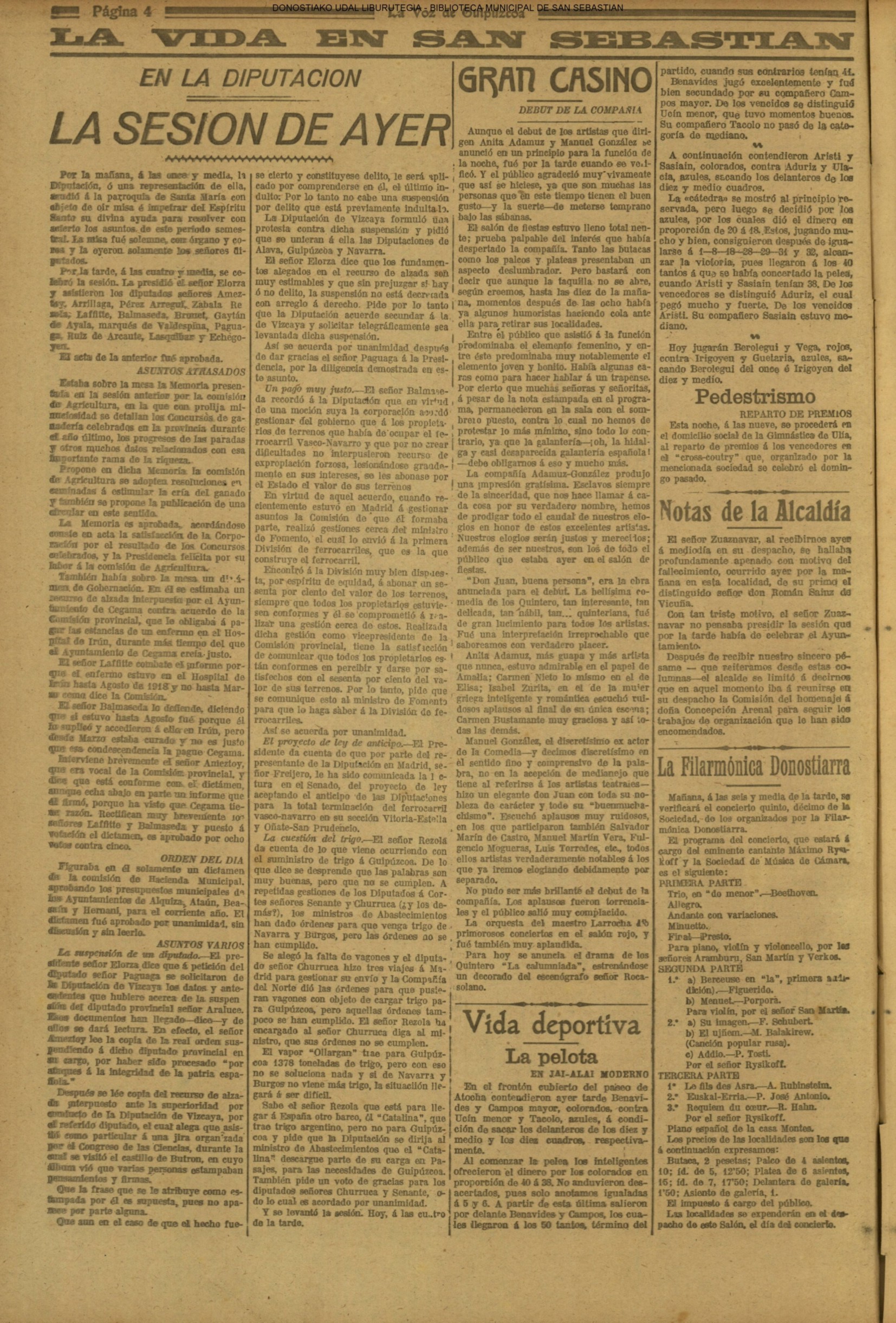 (1920) La Diputación se ocupaba de la escasez de trigo en la provincia.(La Voz de Guipúzcoa)